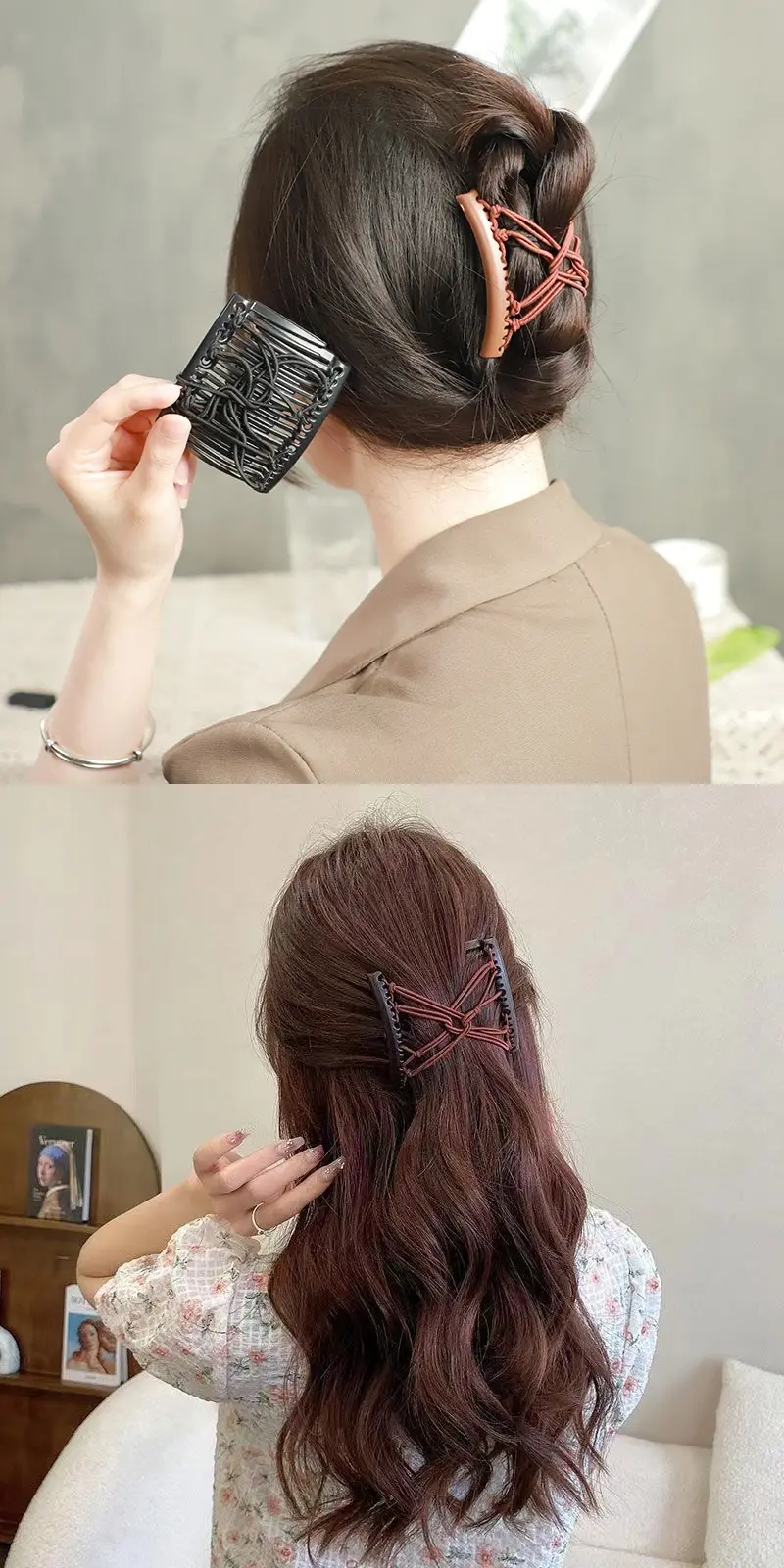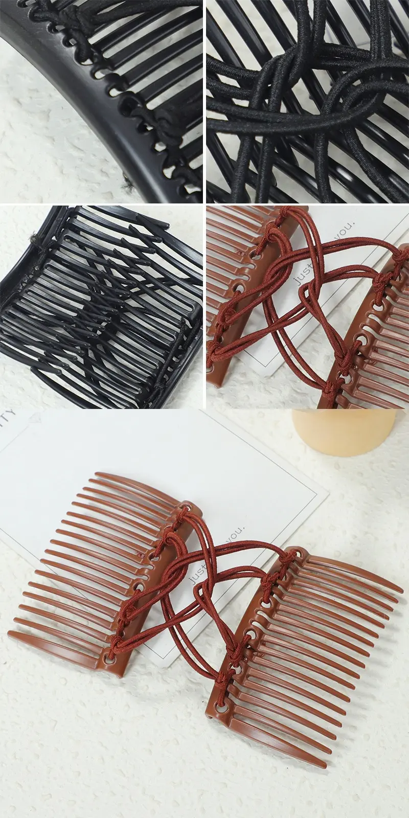 Korean Style New Double-Row Elastic Hair Comb, Insert Comb for Updo, Fashionable Styling, Lazy Person's Back-Of-Head Hair Styling Tool, Hair Accessory