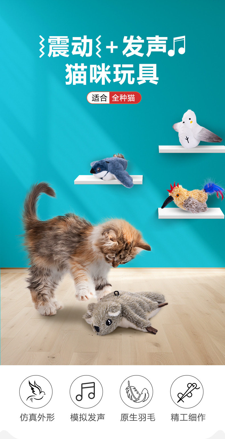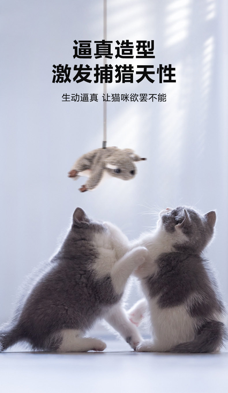 Little Flying Squirrel New Cat Toy, Cat Sound-Emitting Electric Toy with Three Levels of Wing Flapping, Intelligent Cat Teaser and Boredom Reliever