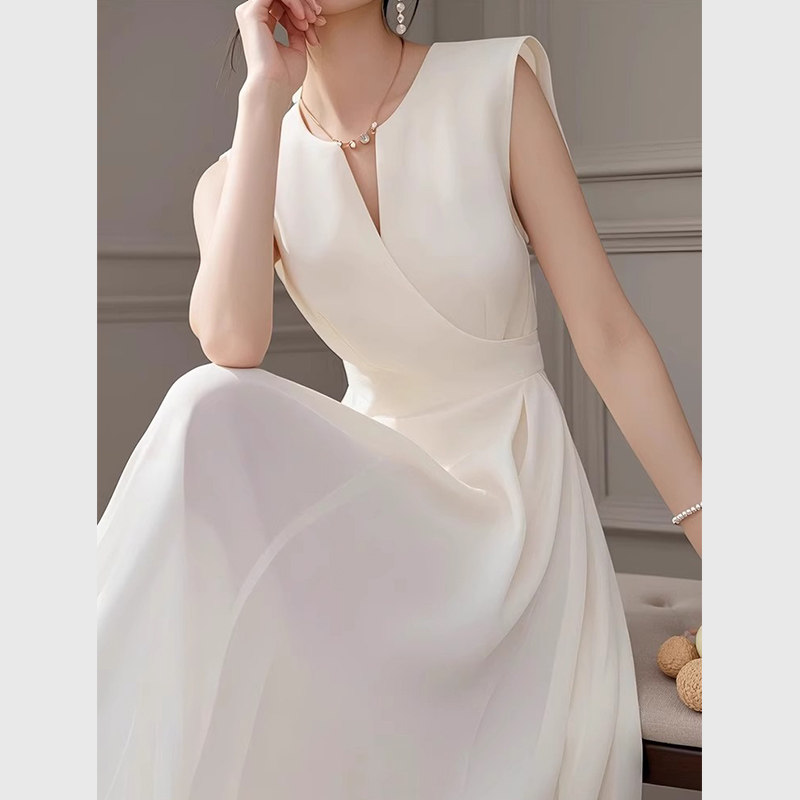 Elegant socialite rich daughter style sleeveless vest dress for summer formal occasions fashionable age-reducing white dress for women