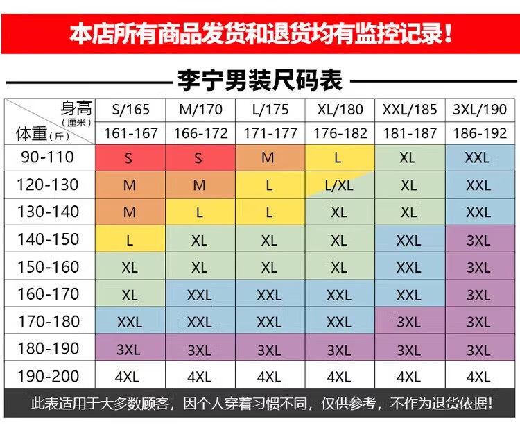 China (cm) 165 / 88-90 170 / 96-98 175 / 108-110 180 / 118-122 185 / 126-130