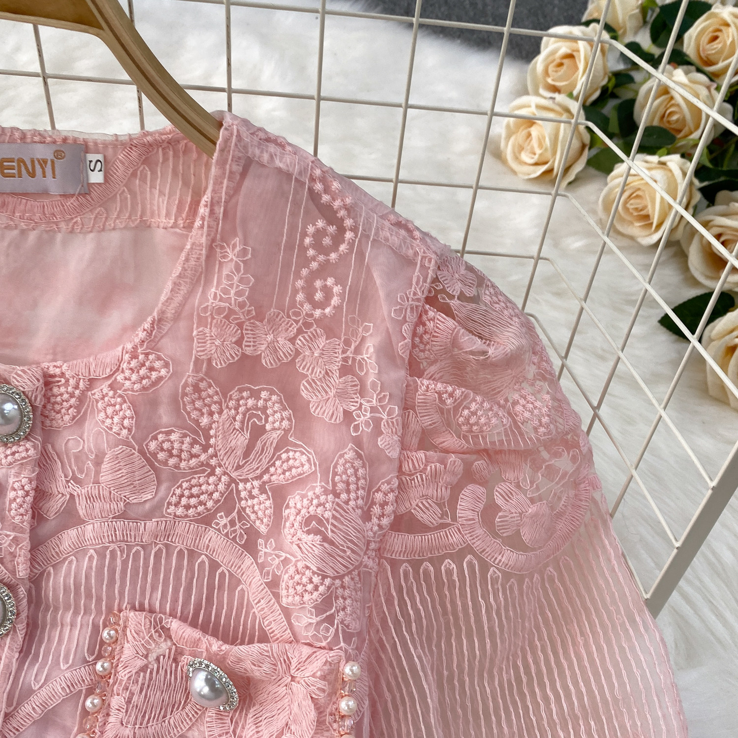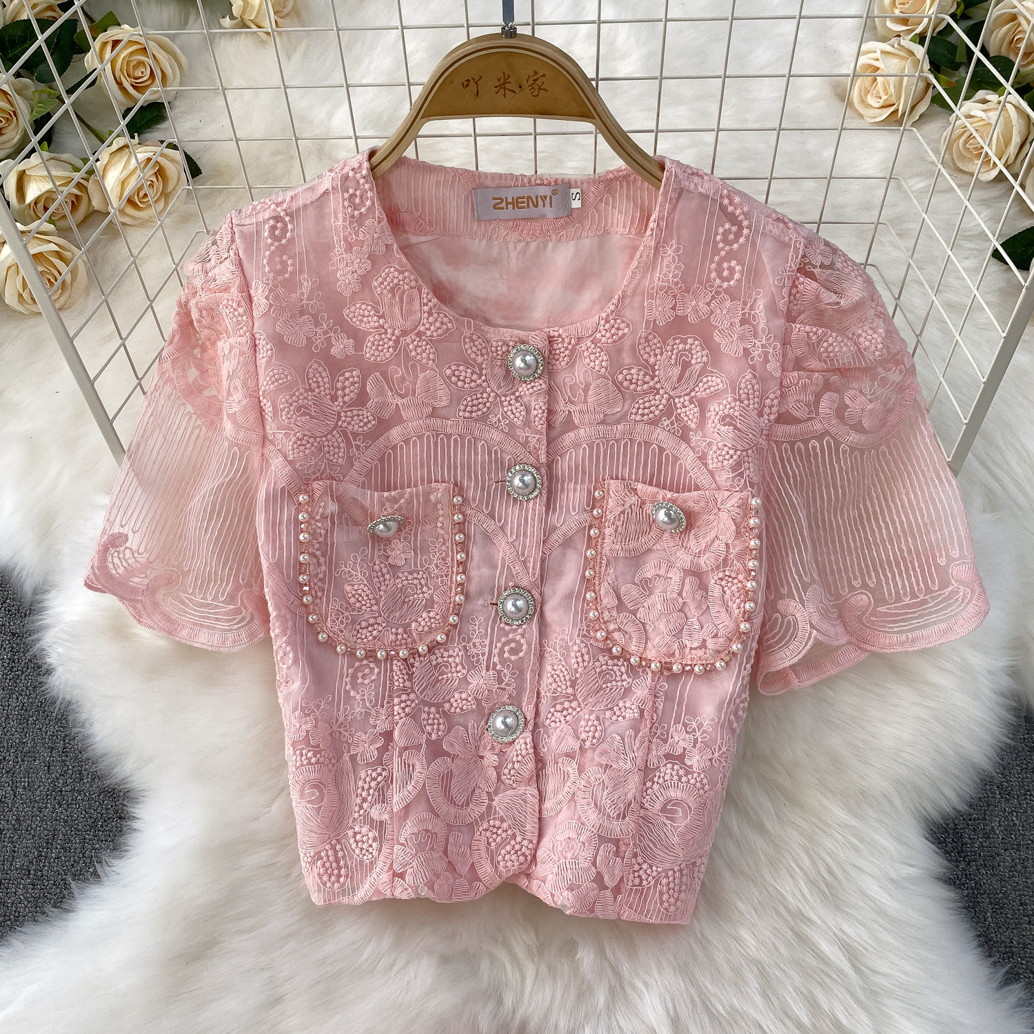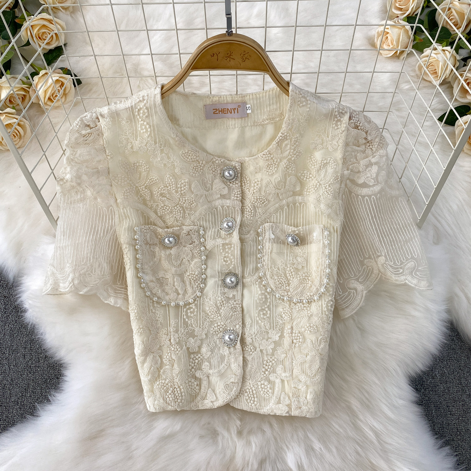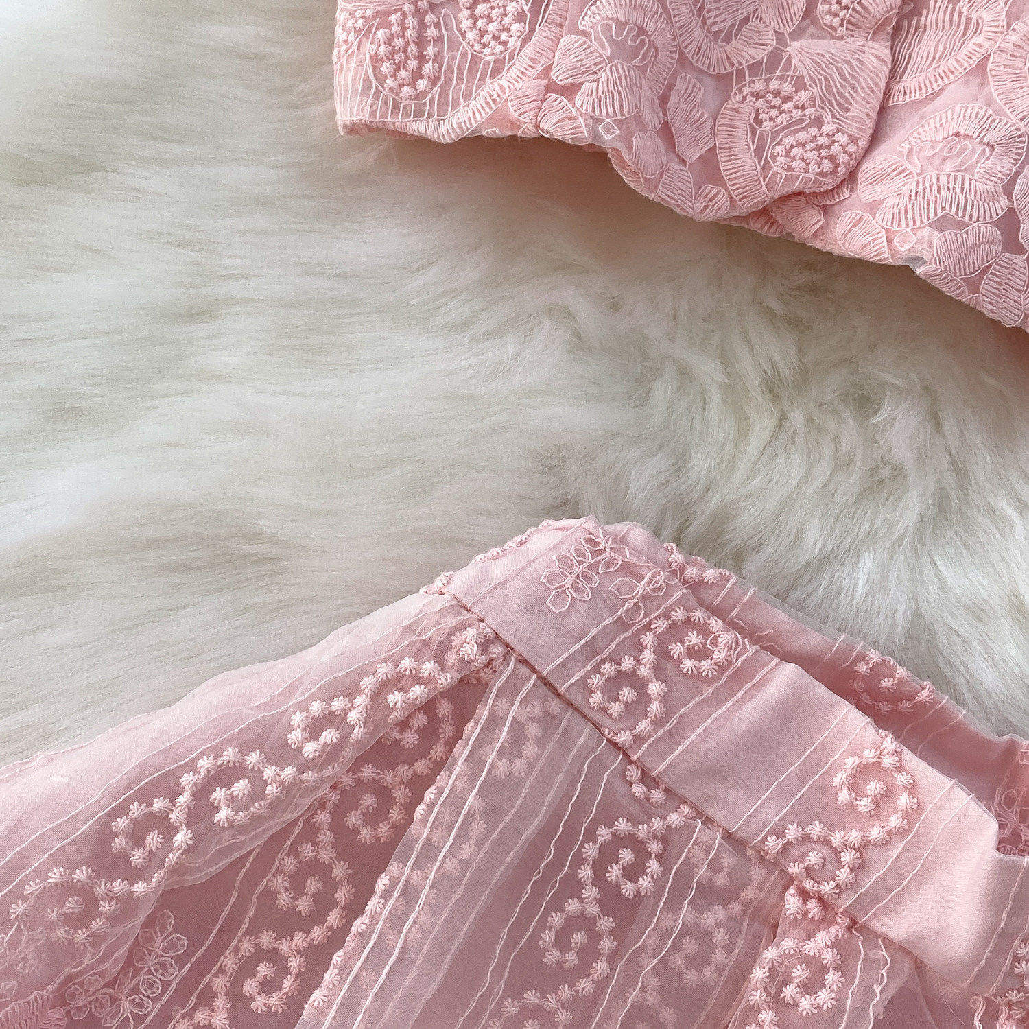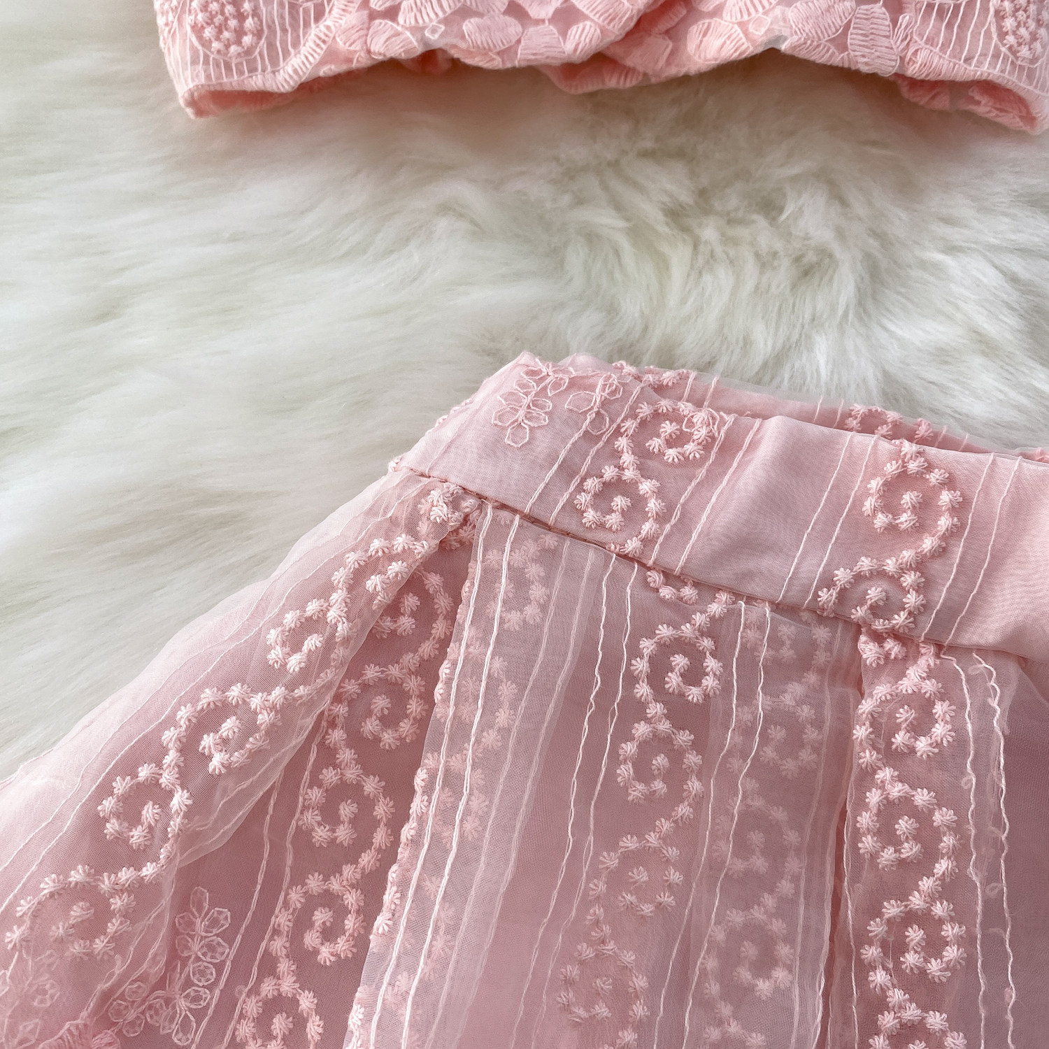 Ladylike temperament lace embroidery two-piece set for women 2025 new summer petite high-end top + skirt