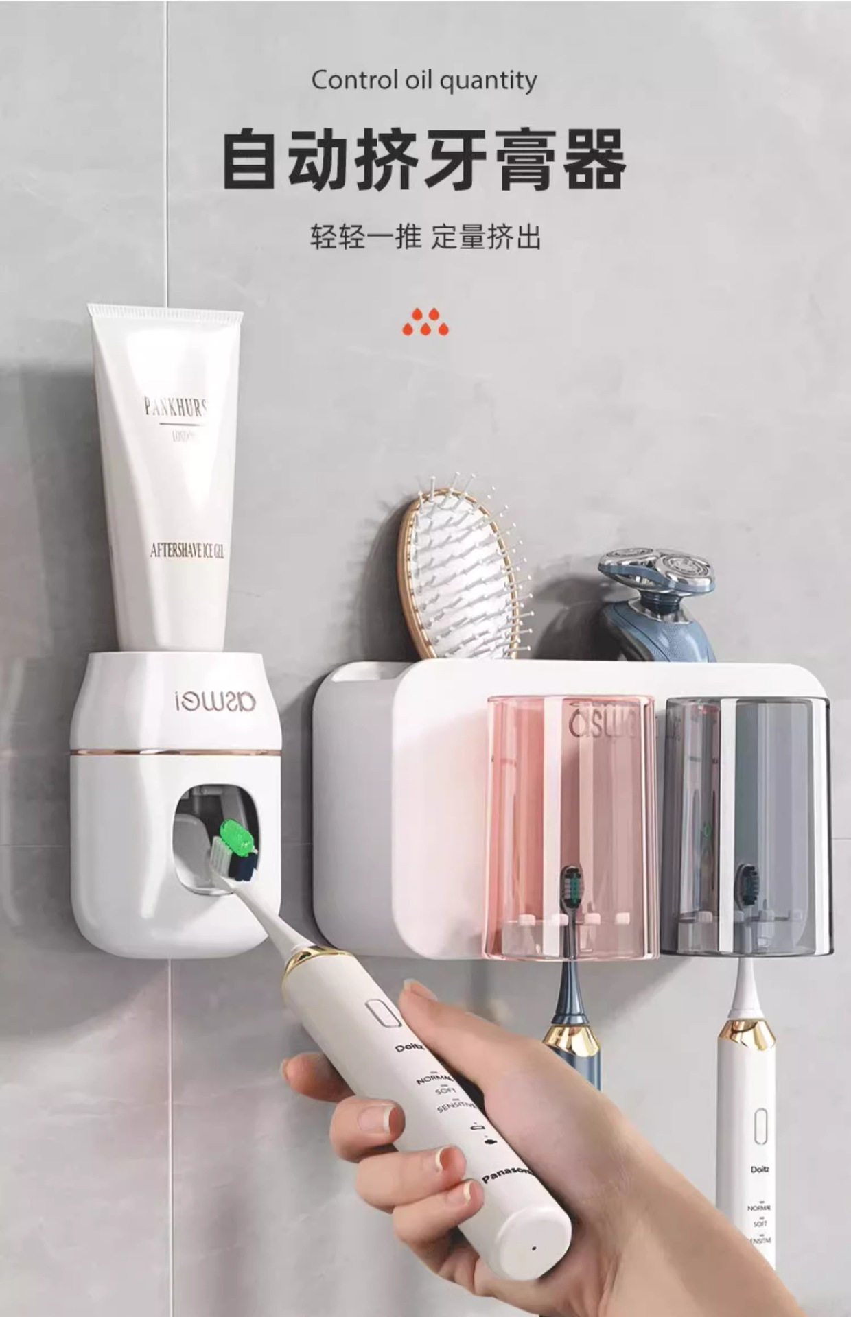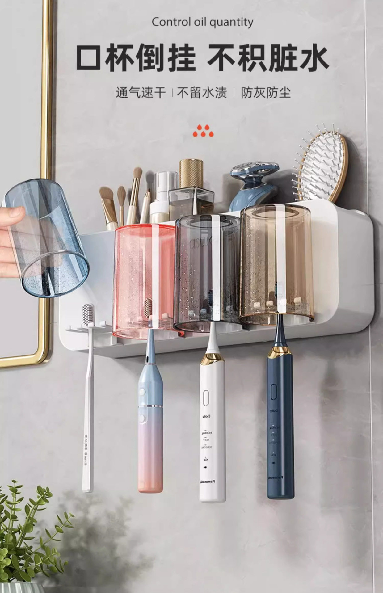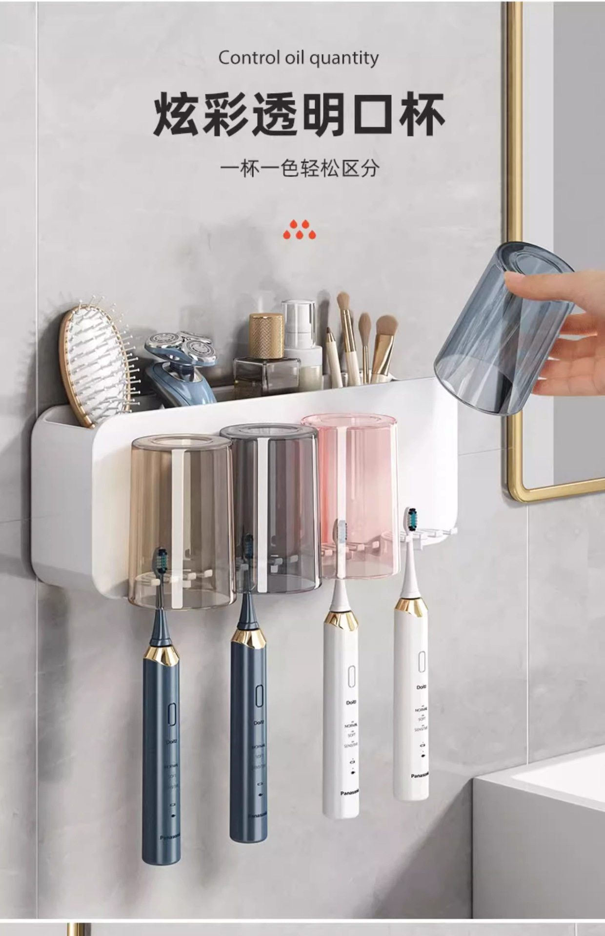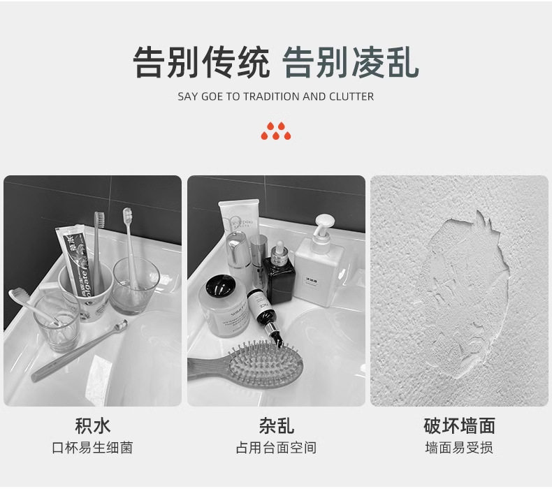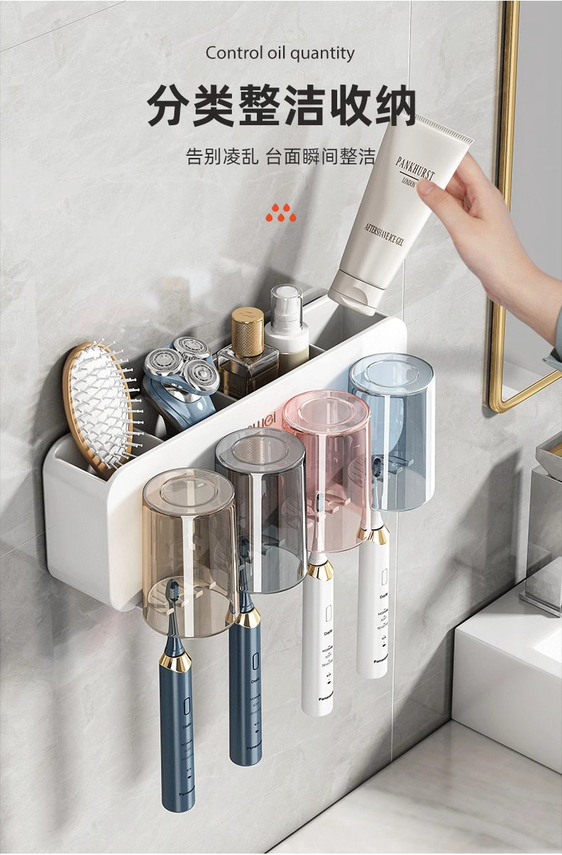Toothbrush rack punch-free brushing cup mouthwash cup wall-mounted rack wall-mounted bathroom electric home set
