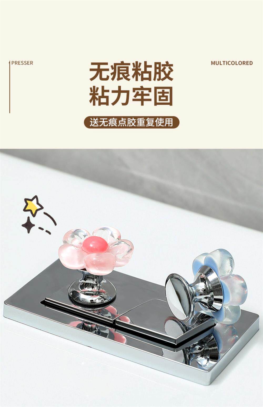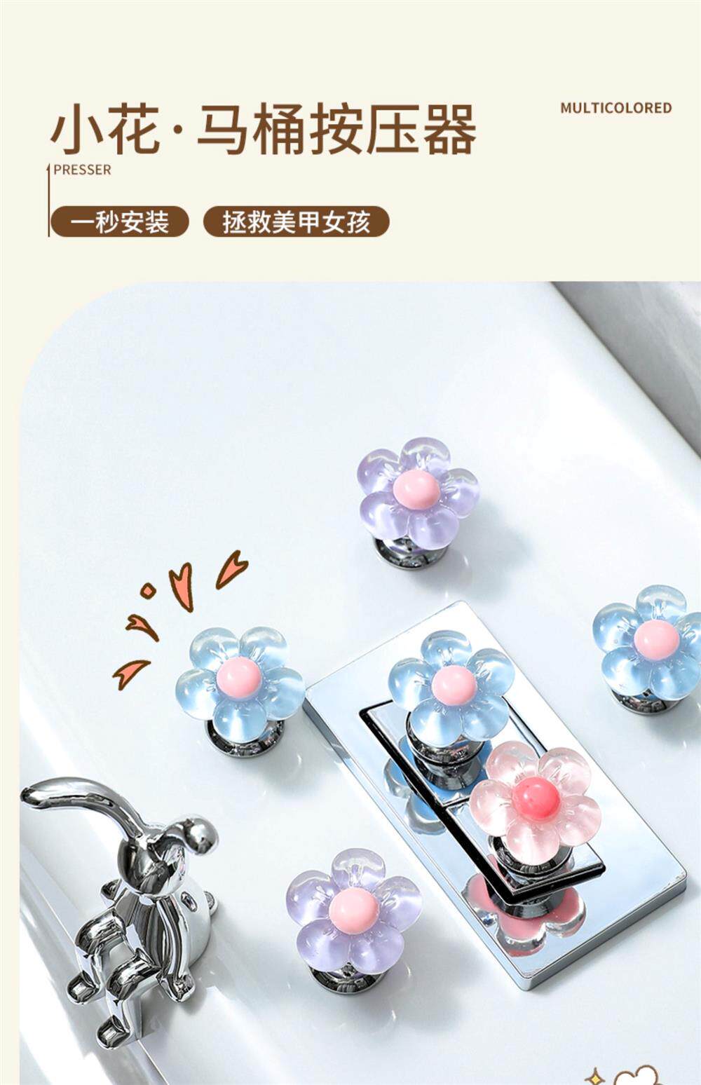 Flower-Shaped Creative Toilet Flush Button Presser, Household Essential, Nail Art Special Flush Button Sticker, Toilet Lid Lifter