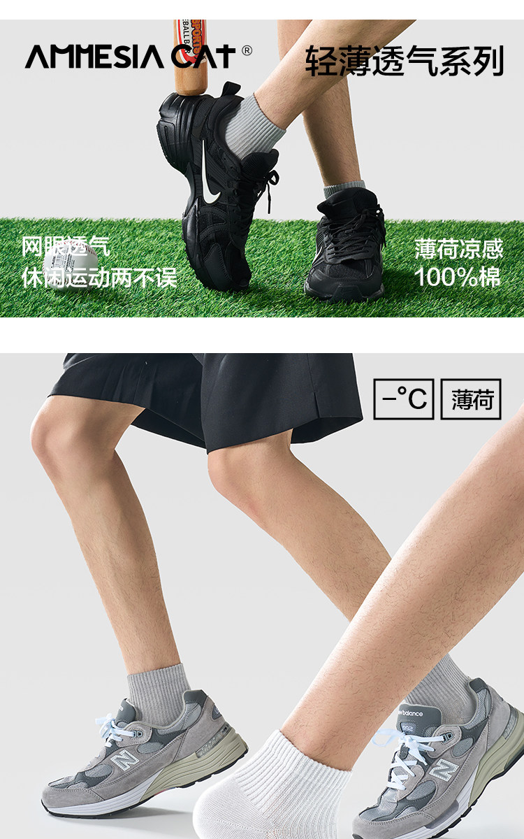 Mesh Breathable Socks Men's Mid-Calf Socks 100% Pure Cotton Sweat-Absorbent Anti-Athlete's Foot Anti-Odor Sports Socks Summer Thin Style