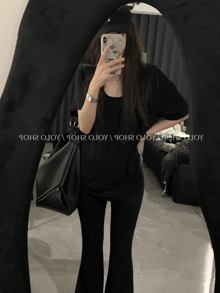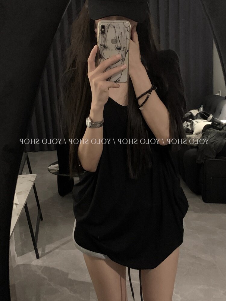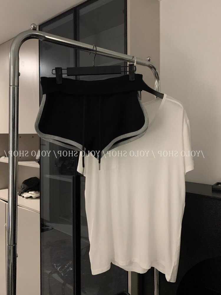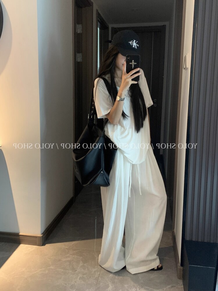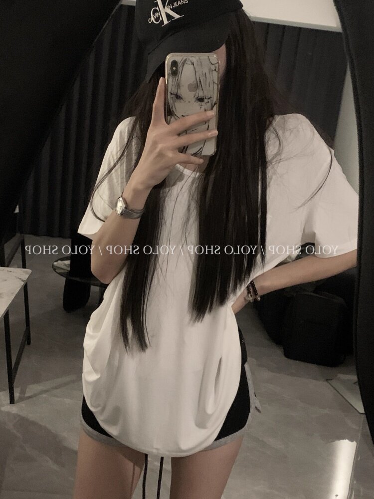 Loose and lazy style white big u-neck short-sleeved T-shirt for women summer pure desire half-sleeved right shoulder T-shirt loose feeling thin top