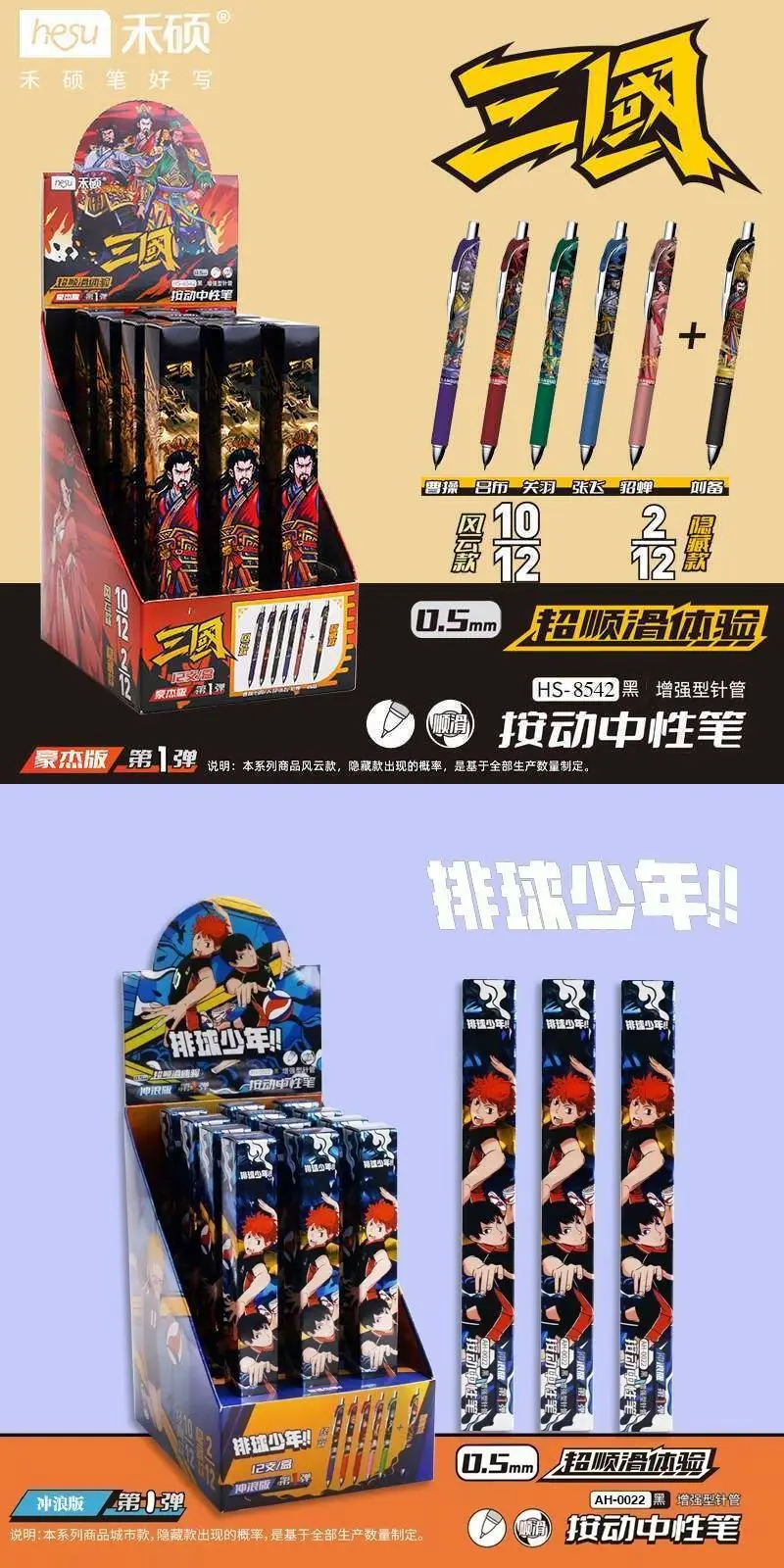 Heshuo Three Kingdoms Cartoon Anime Student Office 0.5 Retractable Black Pen Premium Blind Box
