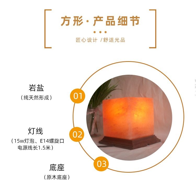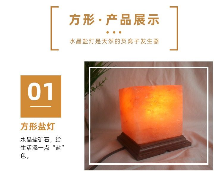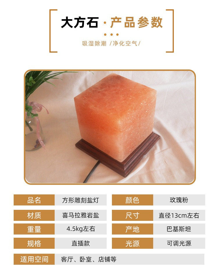 Square Salt Lamp Himalayan Natural Crystal Table Lamp Bathroom Feng Shui Fortune Everlasting Lamp Bedroom Night Light
