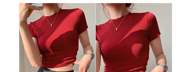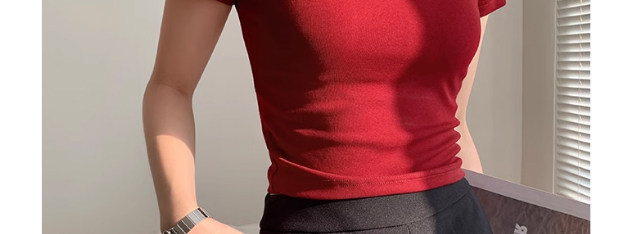 Red Short-Sleeved T-Shirt for Women 2025 Summer New Slim-Fit Hot Girl Chic Korean Style Top with Regular Shoulders