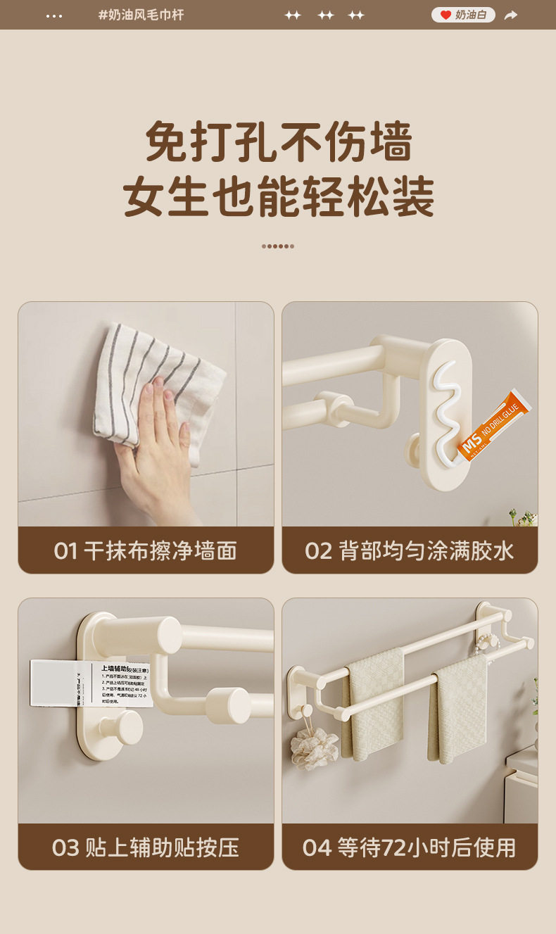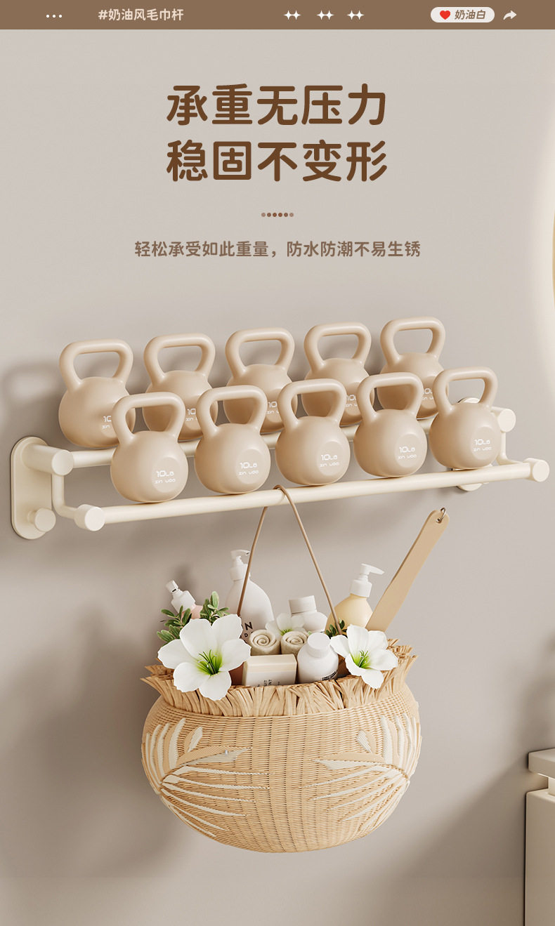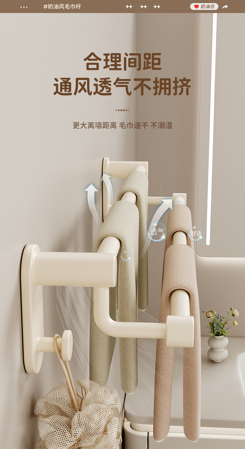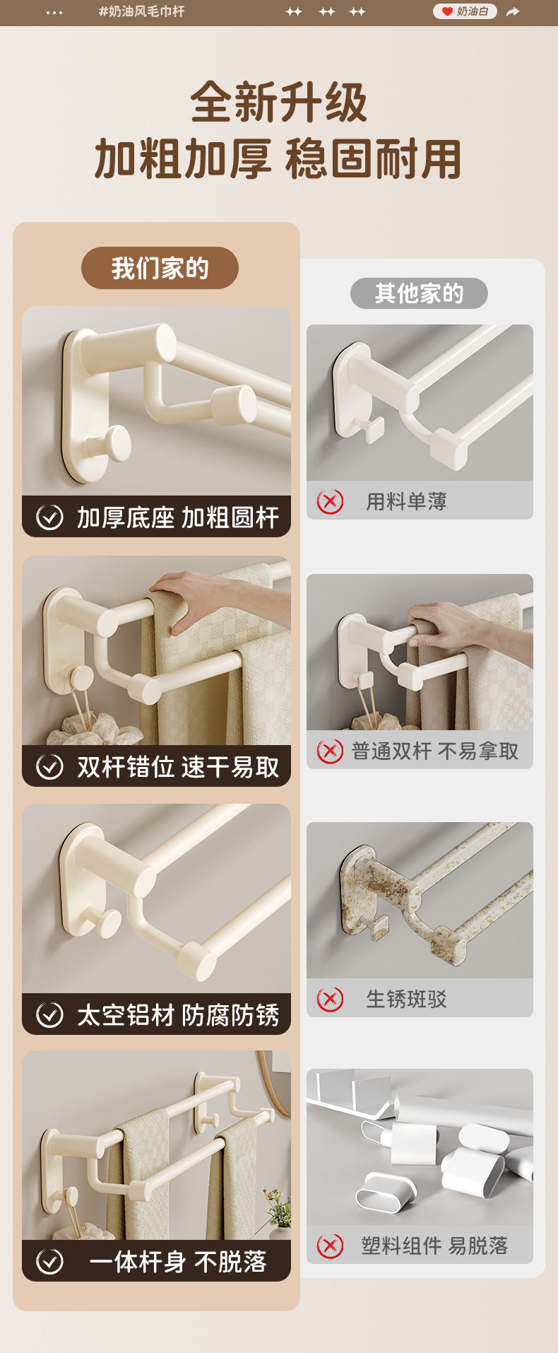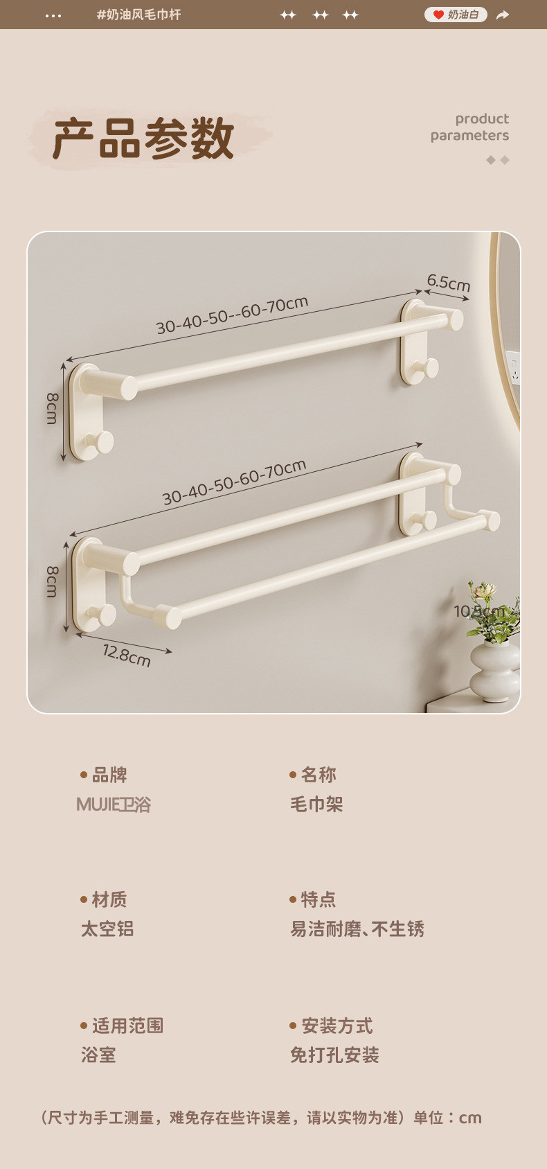 French imported ZIWOO milk white towel rack without punching bathroom space aluminum towel bar bath towel storage rack integrated