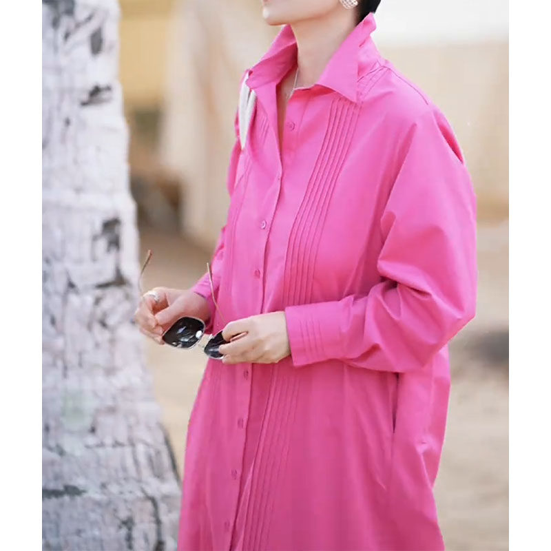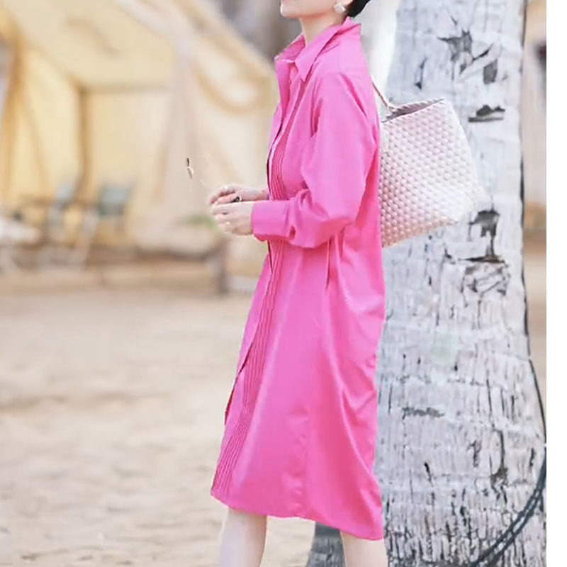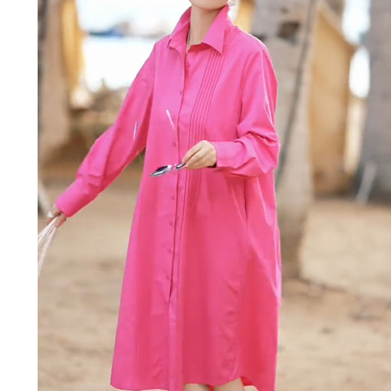 2026 spring new rose red long loose single-breasted lapel fashionable large size fat girl long-sleeved dress for women
