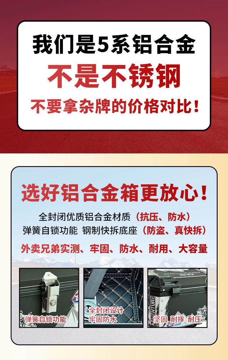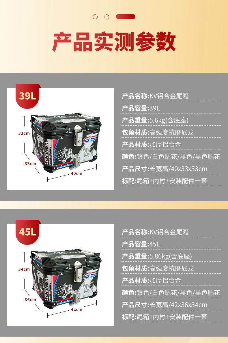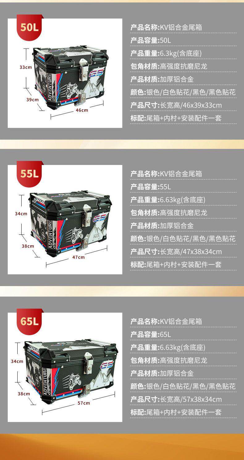 Color Classification Pure Aluminum Alloy Box (High-End Carbon Steel Quick-Release Bottom Plate) 45 Liters Black, Free Quick-Release Base + Backrest + Tool Bag,Pure Aluminum Alloy Box (High-End Carbon Steel Quick-Release Bottom Plate) 45 Liters Silver Free Quick-Release Base + Backrest + Tool Bag,Pure Aluminum Alloy Box (High-End Carbon Steel Quick-Release Bottom Plate) 45 Liters of White Flowers Comes with a Quick-Release Base + Backrest + Tool Bag,Pure Aluminum Alloy Box (High-End Carbon Steel Quick-Release Bottom Plate) 45 Liters Black Flower Comes with Quick-Release Base + Backrest + Tool Bag,Pure Aluminum Alloy Box (High-End Carbon Steel Quick-Release Bottom Plate) 50 Liters Black Comes with Quick-Release Base + Backrest + Tool Bag,Pure Aluminum Alloy Box (High-End Carbon Steel Quick-Release Bottom Plate) 50 Liters Silver Free Quick-Release Base + Backrest + Tool Bag,Pure Aluminum Alloy Box (High-End Carbon Steel Quick-Release Bottom Plate) 50 Liters of White Flowers, Free Quick-Release Base + Backrest + Tool Bag,Pure Aluminum Alloy Box (High-End Carbon Steel Quick-Release Bottom Plate) 50 Liters Black Flower Comes with Quick-Release Base + Backrest + Tool Bag,Pure Aluminum Alloy Box (High-End Carbon Steel Quick-Release Bottom Plate) 55 Liters Black Comes with Quick-Release Base + Backrest + Tool Bag,Pure Aluminum Alloy Box (High-End Carbon Steel Quick-Release Bottom Plate) 55 Liters Silver Free Quick-Release Base + Backrest + Tool Bag,Pure Aluminum Alloy Box (High-End Carbon Steel Quick-Release Bottom Plate) 55 Liters of White Flowers Comes with a Quick-Release Base + Backrest + Tool Bag,Pure Aluminum Alloy Box (High-End Carbon Steel Quick-Release Bottom Plate) 55 Liters Black Flower Comes with Quick-Release Base + Backrest + Tool Bag,Pure Aluminum Alloy Box (High-End Carbon Steel Quick-Release Bottom Plate) 65 Liters Black Comes with Quick-Release Base + Backrest + Tool Bag,Pure Aluminum Alloy Box (High-End Carbon Steel Quick-Release Bottom Plate) 65 Liters Silver Free Quick-Release Base + Backrest + Tool Bag,Pure Aluminum Alloy Box (High-End Carbon Steel Quick-Release Bottom Plate) 65 Liters of White Flowers Comes with a Quick-Release Base + Backrest + Tool Bag,Pure Aluminum Alloy Box (High-End Carbon Steel Quick-Release Bottom Plate) 65 Liters Black Flower Comes with Quick-Release Base + Backrest + Tool Bag,Pure Aluminum Alloy Box (High-End Carbon Steel Quick-Release Bottom Plate) 39 Liters Black, Free Quick-Release + No Backrest,Pure Aluminum Alloy Box (Top with Stainless Steel Quick-Release Bottom Plate) 45 Liters Black, Free Quick-Release Base + Backrest + Tool Bag,Pure Aluminum Alloy Box (Top with Stainless Steel Quick-Release Bottom Plate) 45 Liters Silver Free Quick-Release Base + Backrest + Tool Bag,Pure Aluminum Alloy Box (Top with Stainless Steel Quick-Release Bottom Plate) 45 Liters of White Flowers Comes with Quick-Release Base + Backrest + Tool Bag,Pure Aluminum Alloy Box (Top with Stainless Steel Quick-Release Bottom Plate) 45 Liters Black Flower Comes with Quick-Release Base + Backrest + Tool Bag,Pure Aluminum Alloy Box (Top with Stainless Steel Quick-Release Bottom Plate) 50 Liters Black Comes with Quick-Release Base + Backrest + Tool Bag,Pure Aluminum Alloy Box (Top with Stainless Steel Quick-Release Bottom Plate) 50 Liters Silver Comes with Quick-Release Base + Backrest + Tool Bag,Pure Aluminum Alloy Box (Top with Stainless Steel Quick-Release Bottom Plate) 50 Liters of White Flowers Comes with Quick-Release Base + Backrest + Tool Bag,Pure Aluminum Alloy Box (Top with Stainless Steel Quick-Release Bottom Plate) 50 Liters Black Flower Comes with Quick-Release Base + Backrest + Tool Bag,Pure Aluminum Alloy Box (Top with Stainless Steel Quick-Release Bottom Plate) 55 Liters Black Comes with Quick-Release Base + Backrest + Tool Bag,Pure Aluminum Alloy Box (Top with Stainless Steel Quick-Release Bottom Plate) 55 Liters Silver Comes with Quick-Release Base + Backrest + Tool Bag,Pure Aluminum Alloy Box (Top with Stainless Steel Quick-Release Bottom Plate) 55 Liters of White Flowers Comes with Quick-Release Base + Backrest + Tool Bag,Pure Aluminum Alloy Box (Top with Stainless Steel Quick-Release Bottom Plate) 55 Liters Black Flower Comes with Quick-Release Base + Backrest + Tool Bag,Pure Aluminum Alloy Box (Top with Stainless Steel Quick-Release Bottom Plate) 65 Liters Black, Free Quick-Release Base + Backrest + Tool Bag,Pure Aluminum Alloy Box (Top with Stainless Steel Quick-Release Bottom Plate) 65 Liters Silver Comes with Quick-Release Base + Backrest + Tool Bag,Pure Aluminum Alloy Box (Top with Stainless Steel Quick-Release Bottom Plate) 65 Liters of White Flowers Comes with Quick-Release Base + Backrest + Tool Bag,Pure Aluminum Alloy Box (Top with Stainless Steel Quick-Release Bottom Plate) 65 Liters Black Flower Comes with Quick-Release Base + Backrest + Tool Bag,Pure Aluminum Alloy Box (Top with Stainless Steel Quick-Release Bottom Plate) 39 Liters Black, Free Quick-Release + No Backrest