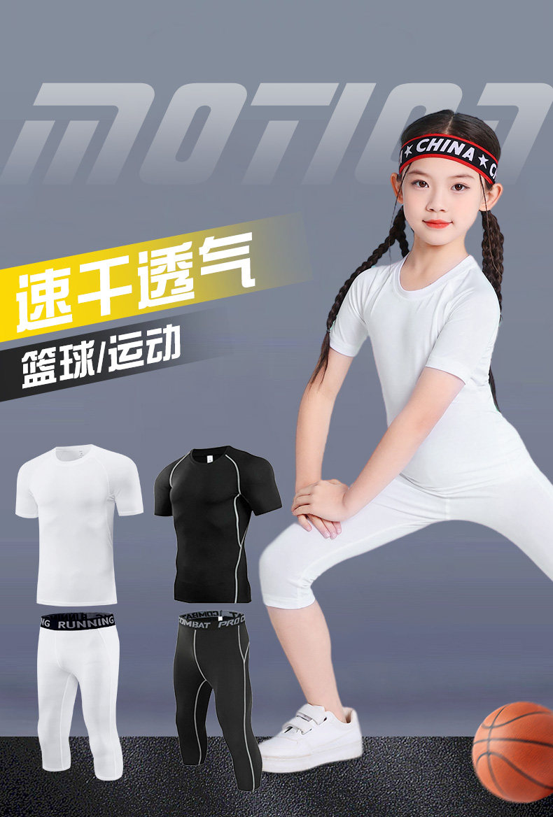 Children's tights, training clothes, short-sleeved suits, basketball suits, quick-drying clothes, men's and women's football sports suits, spring and summer