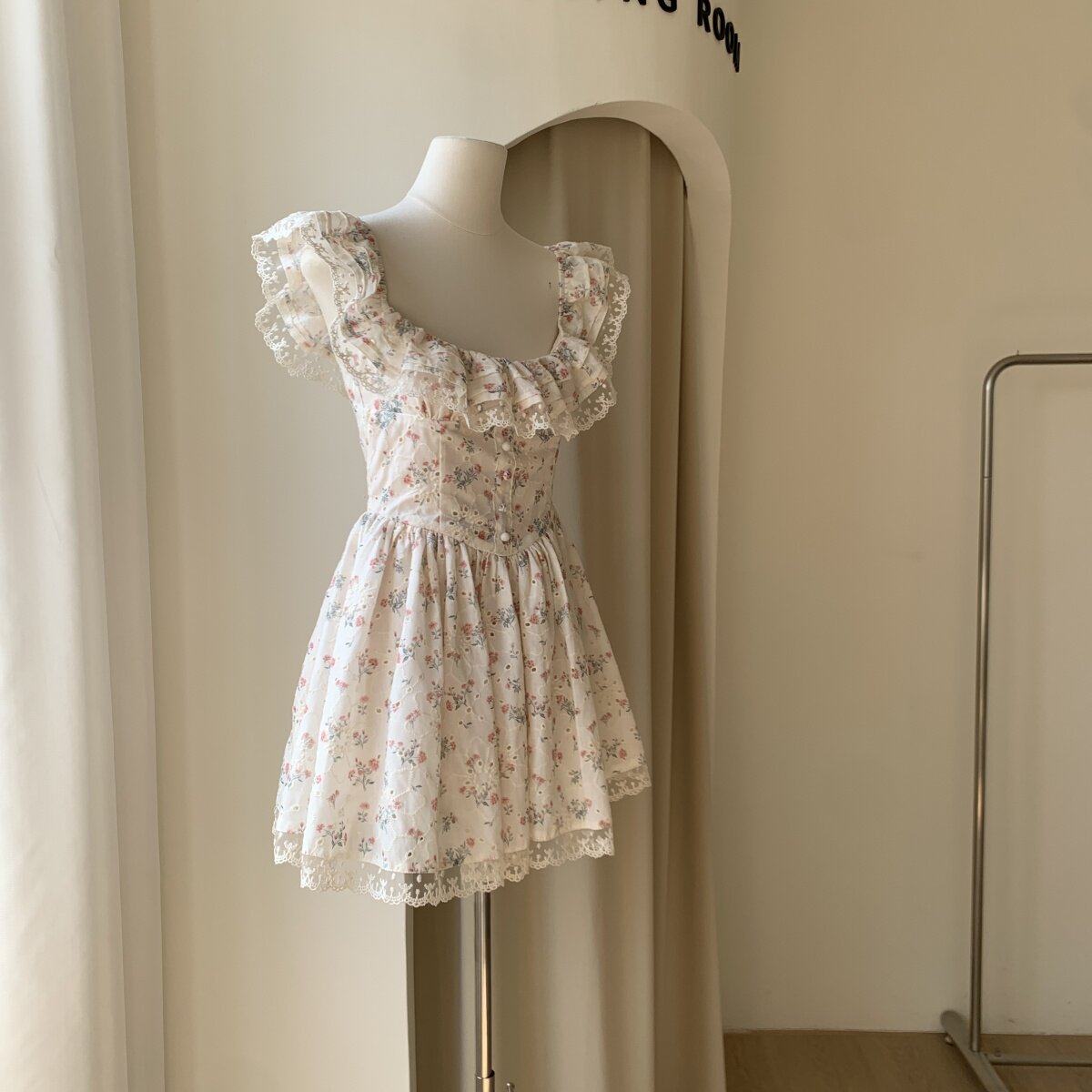 Lin Xiasha Square-Neck Floral Dress for Women 2025 Spring New Style Pure Desire A-Line Dress with Gentle Temperament