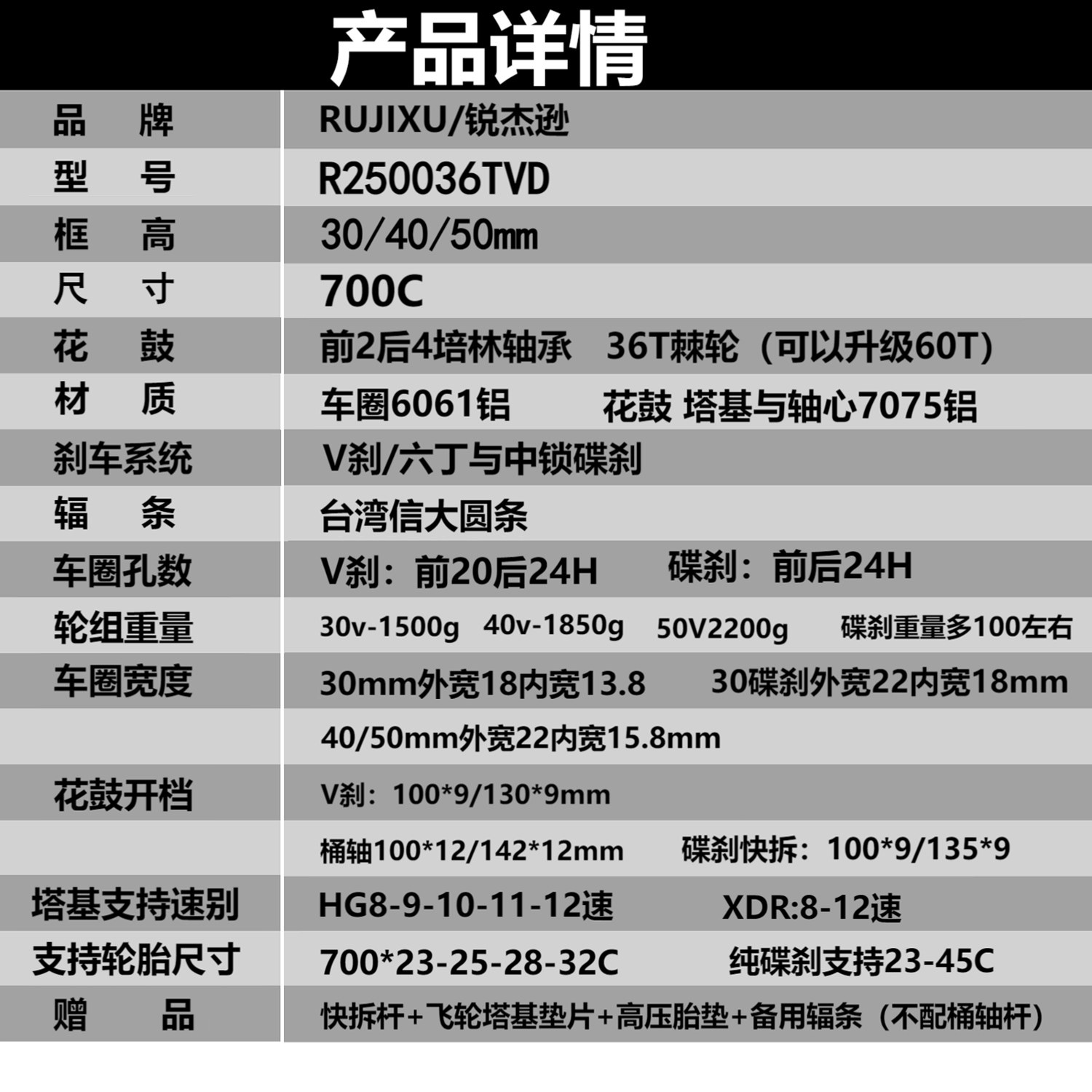 Rujixu 700C Aluminum Alloy High-Profile Road Wheels 50mm Rims 36t Planetary Gear V/C Brake Disc Brake Wheelset
