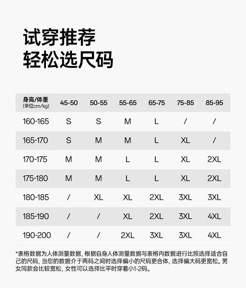 China (cm) 160-165/84-86 165-170 / 88-90 167-172 / 92-96 168-173 / 98-102 170-176 / 106-110
