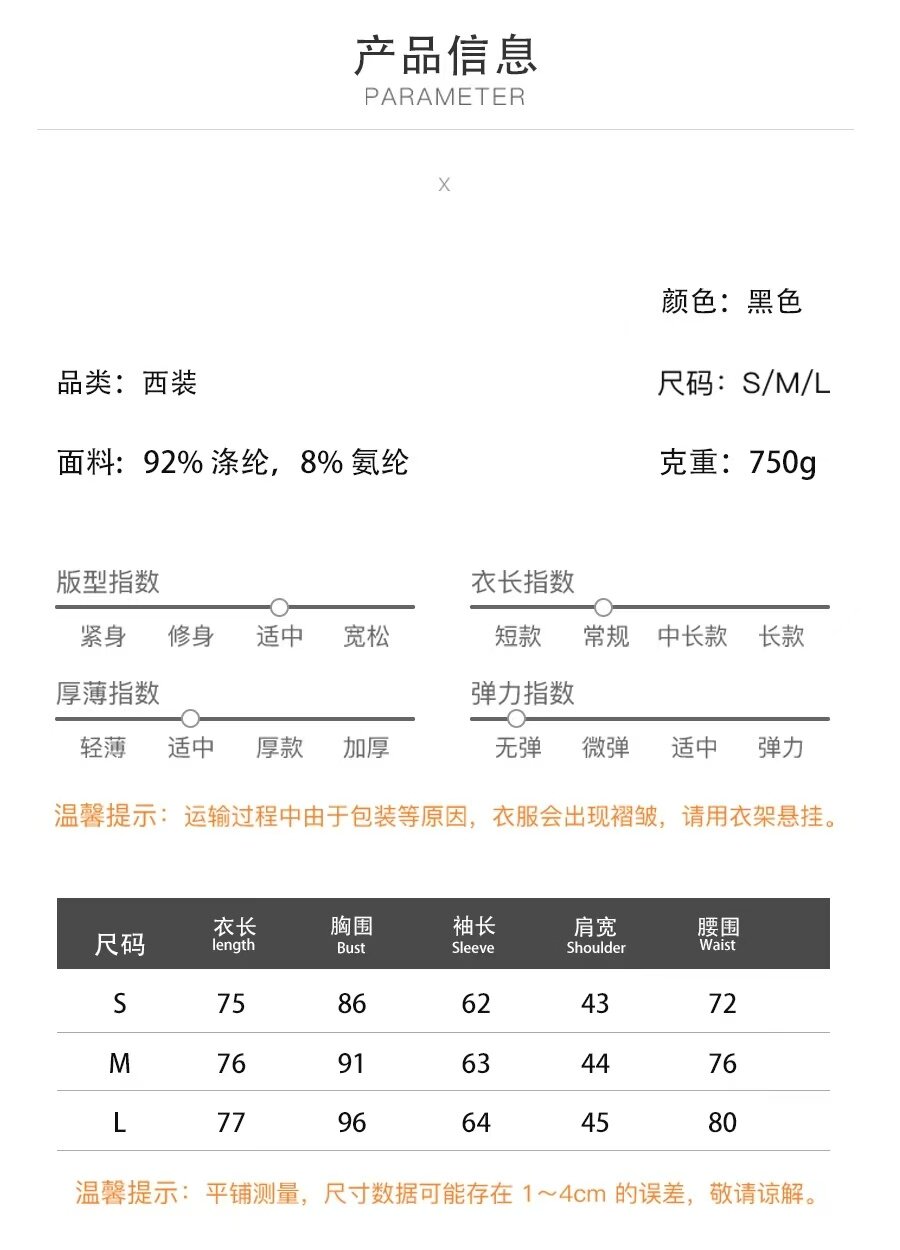European and American Style New Fashion Elegant Waist-Slimming Blazer Advanced Style Suit Jacket