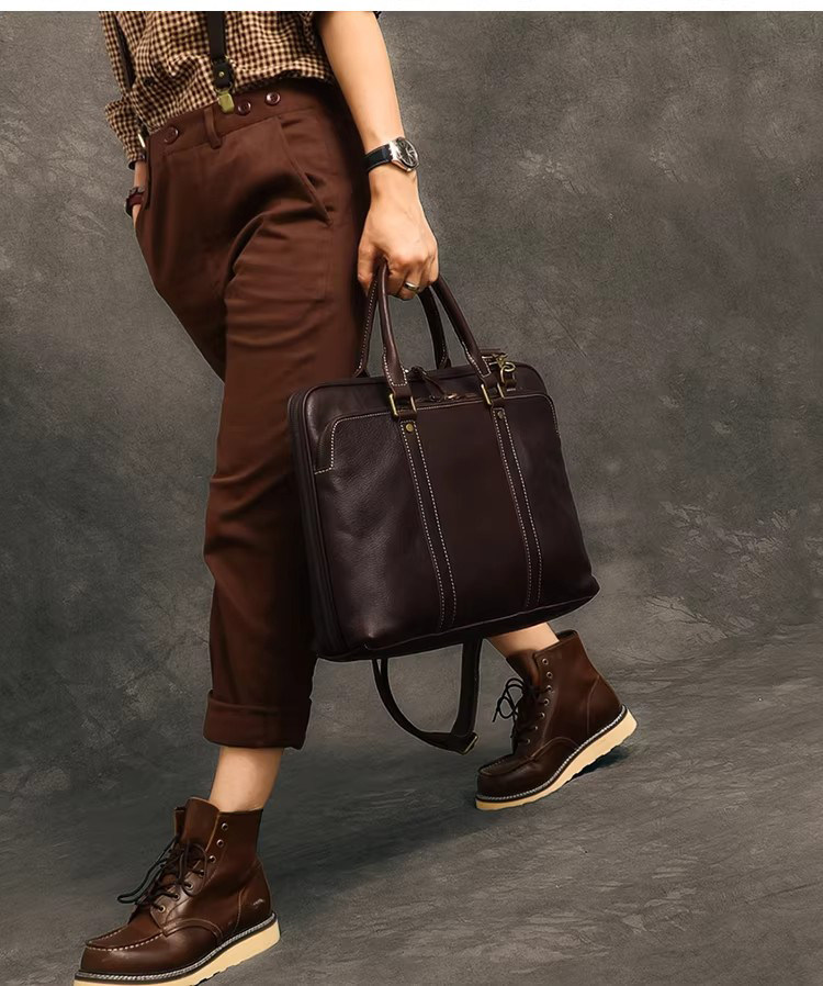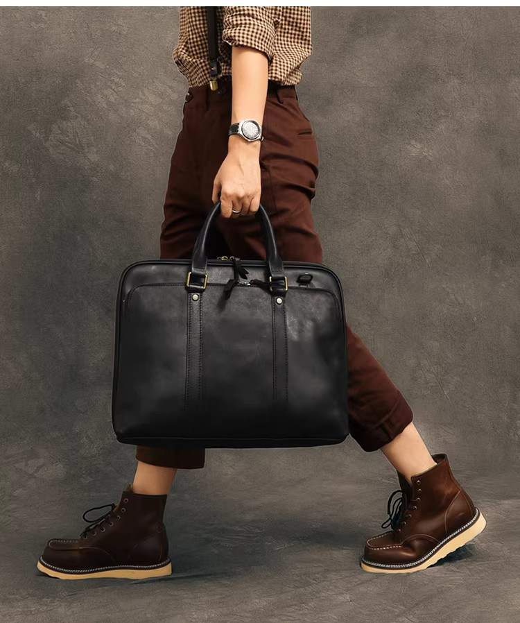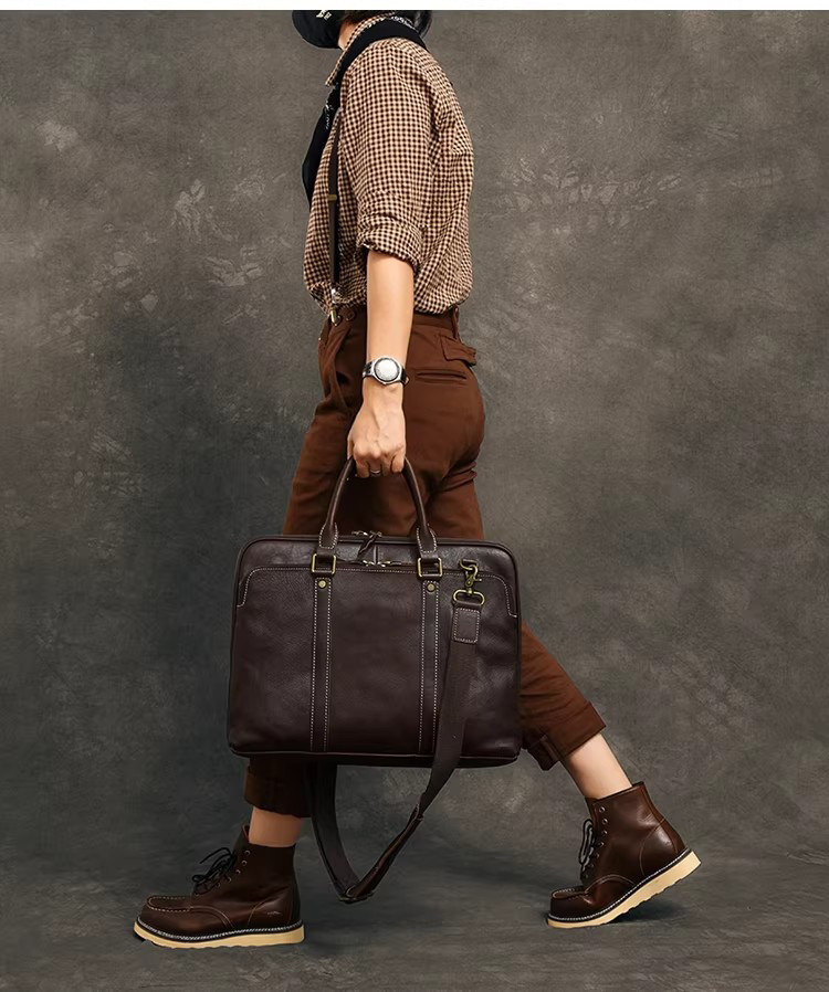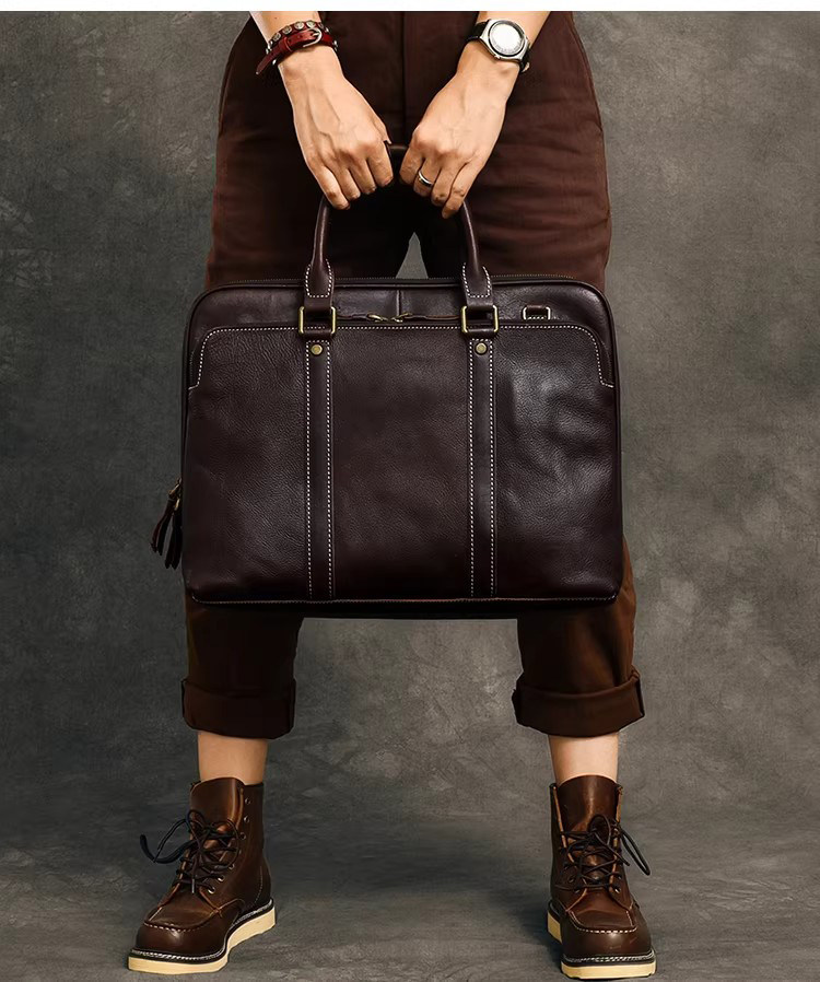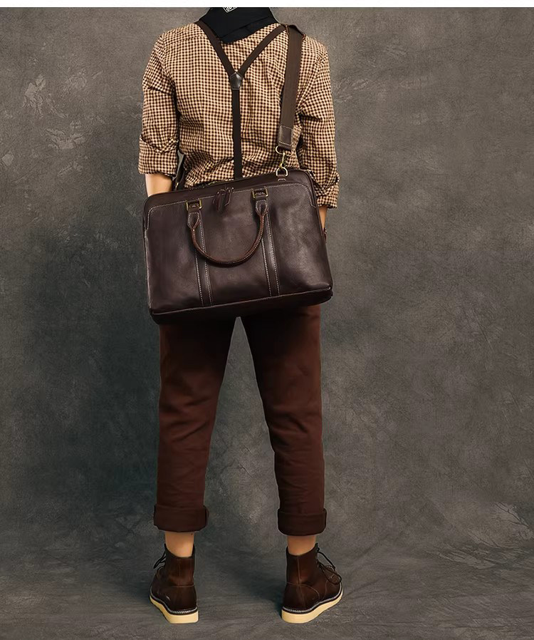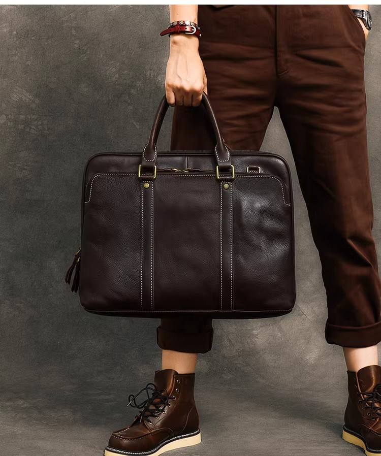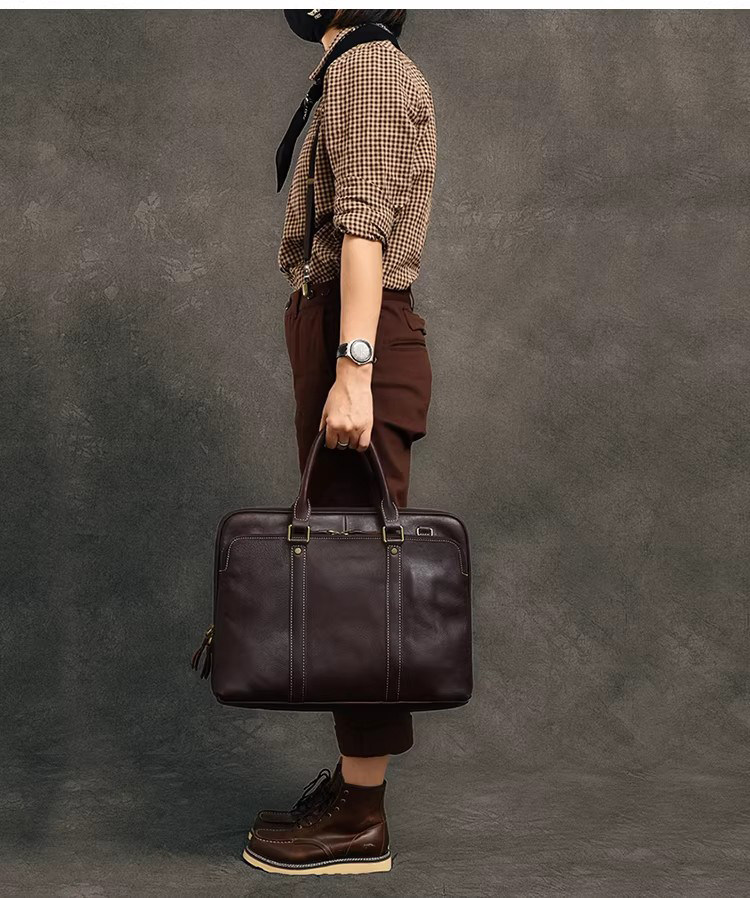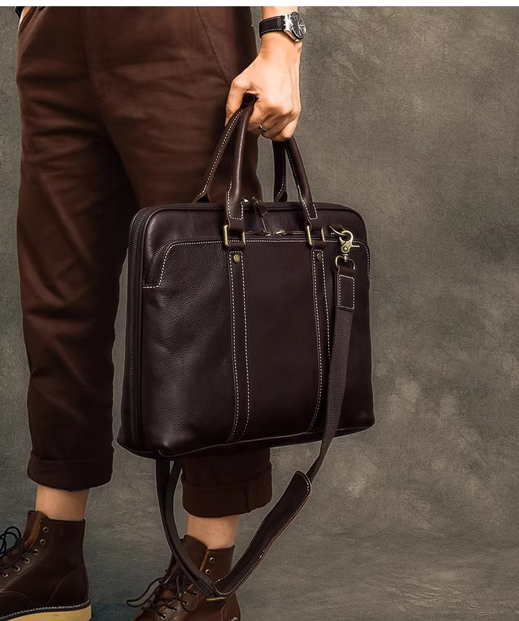 Lendaryer Retro Handmade Men's 15inch Horizontal Leather Laptop Bag Business Fashion Briefcase for Men