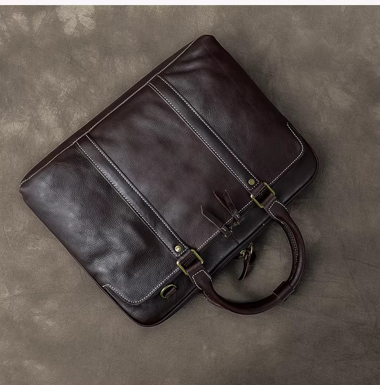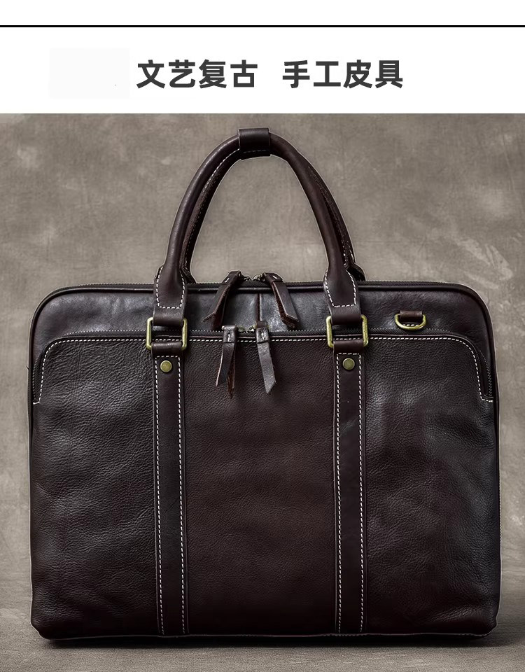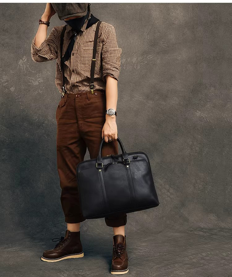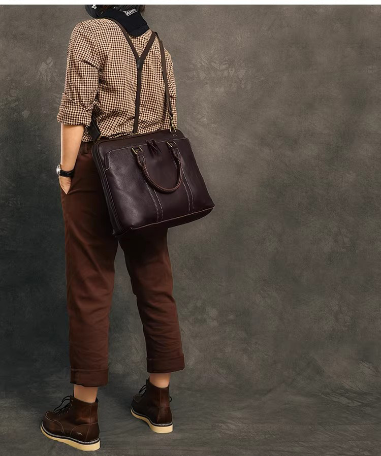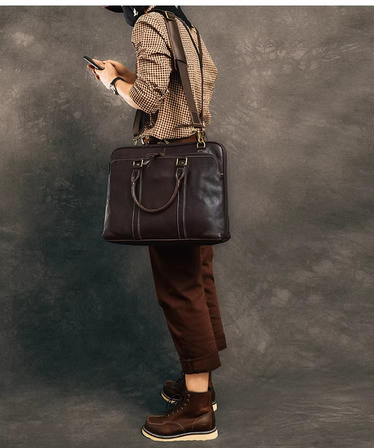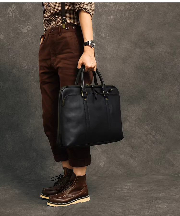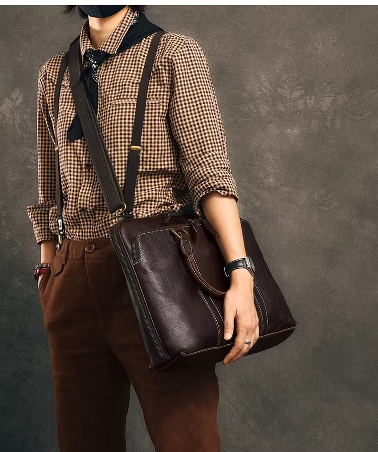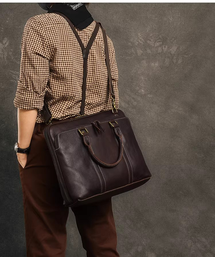 Lendaryer Retro Handmade Men's 15inch Horizontal Leather Laptop Bag Business Fashion Briefcase for Men