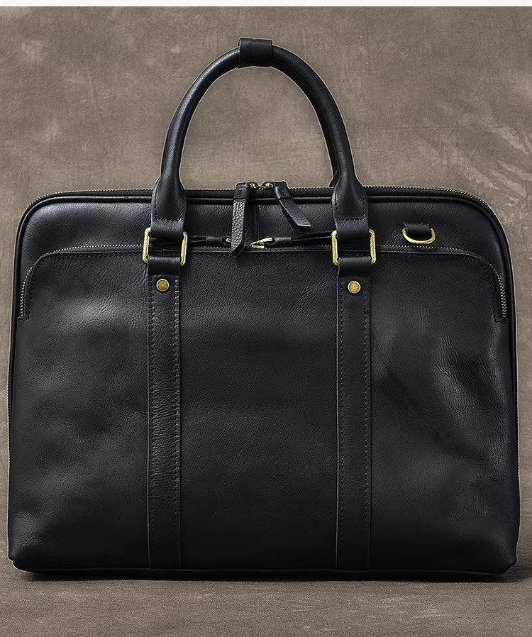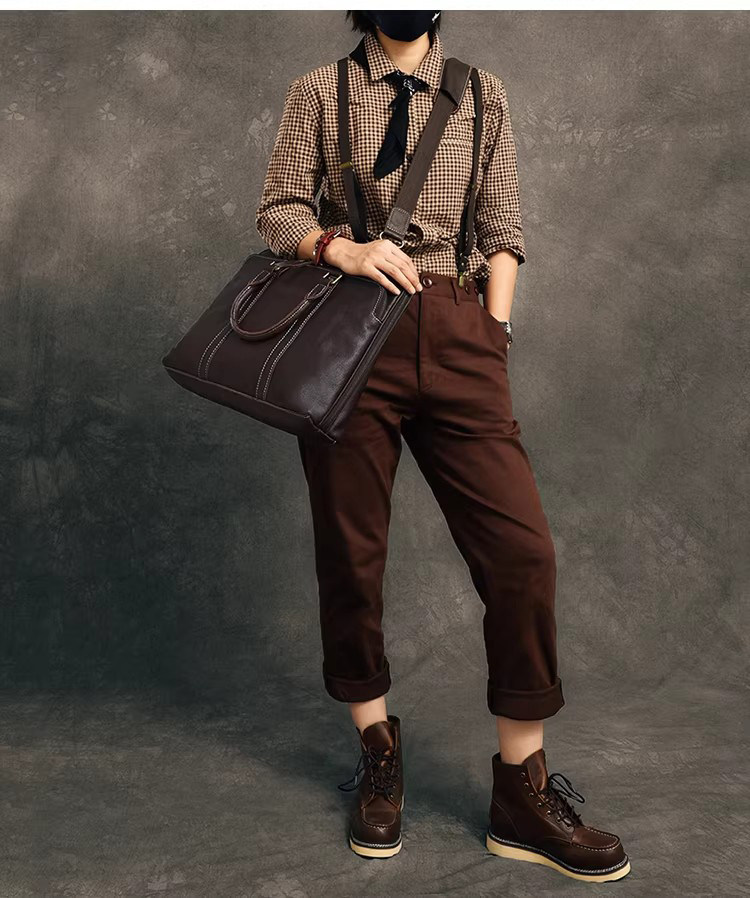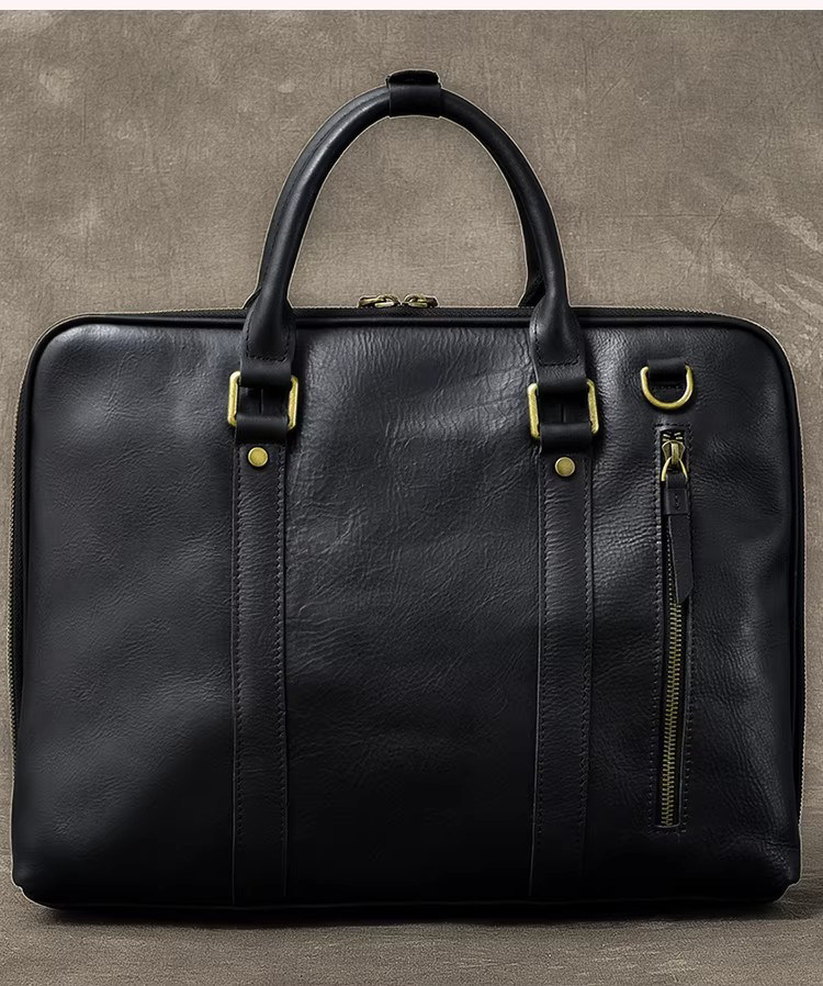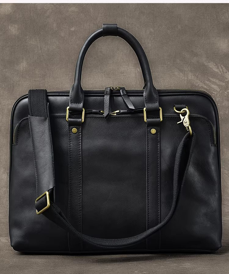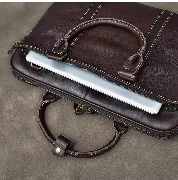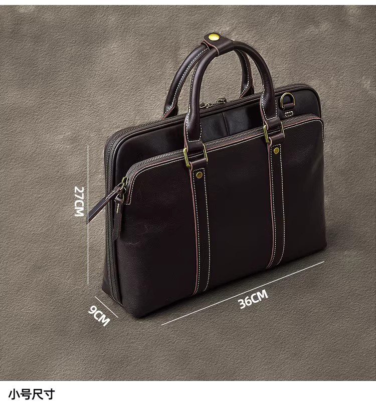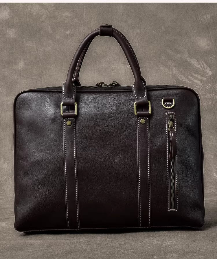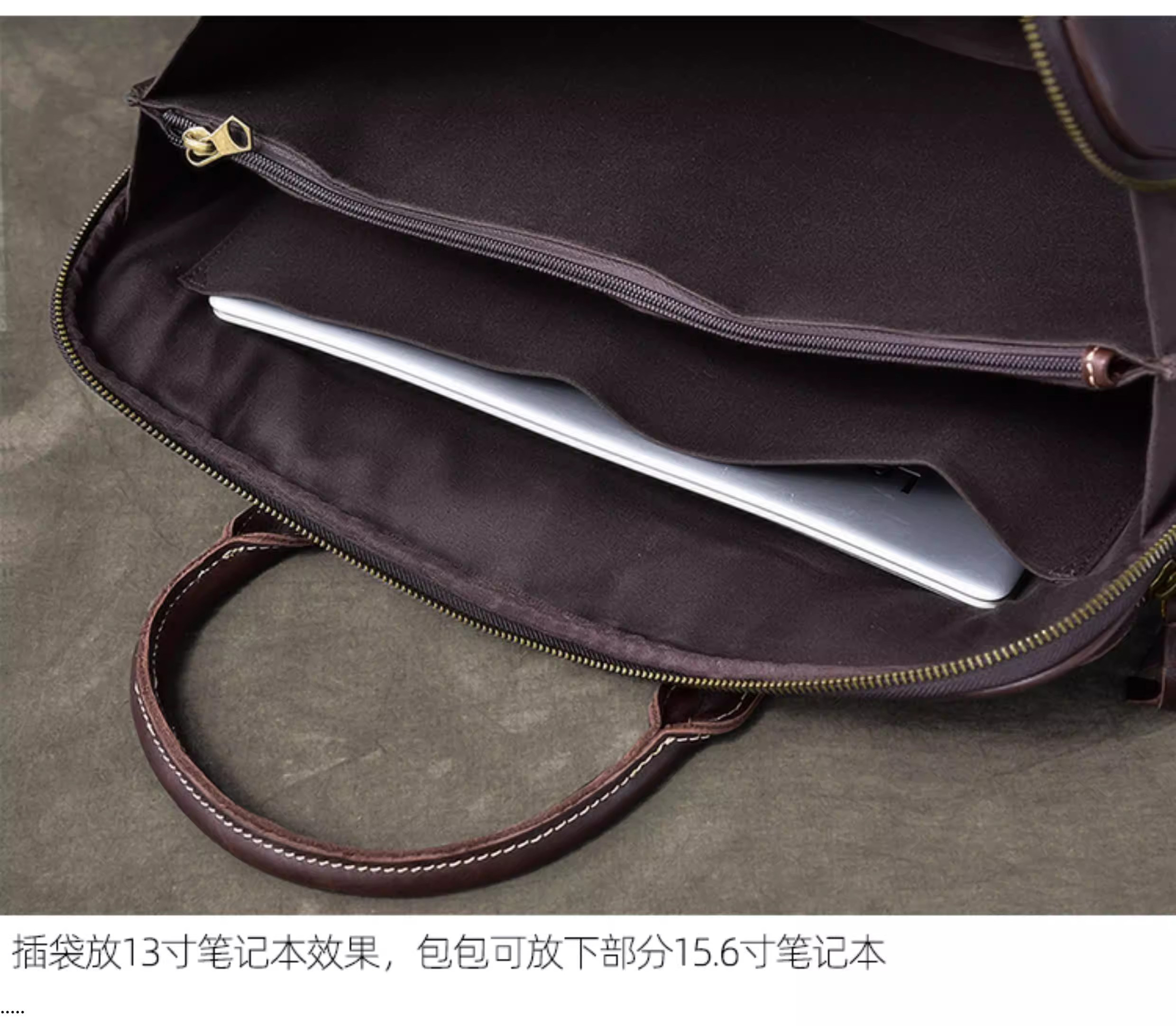 Lendaryer Retro Handmade Men's 15inch Horizontal Leather Laptop Bag Business Fashion Briefcase for Men