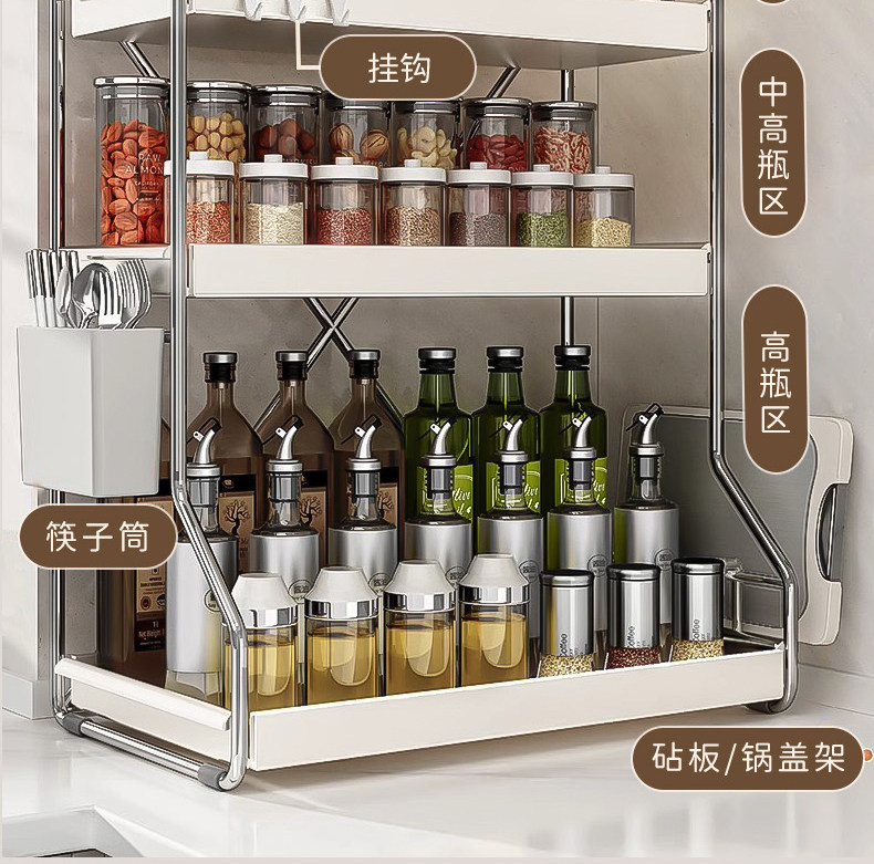 Finechi Kitchen Storage Rack Countertop Spice Rack Condiment Multi-Functional Household Storage Rack Multi-Layer Rack