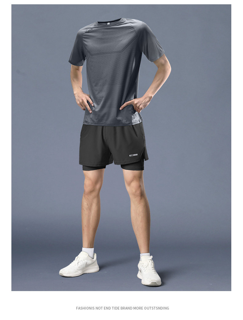 Sports suit men's marathon professional running shorts summer fitness clothes ice silk quick-drying short-sleeved T-shirt equipment