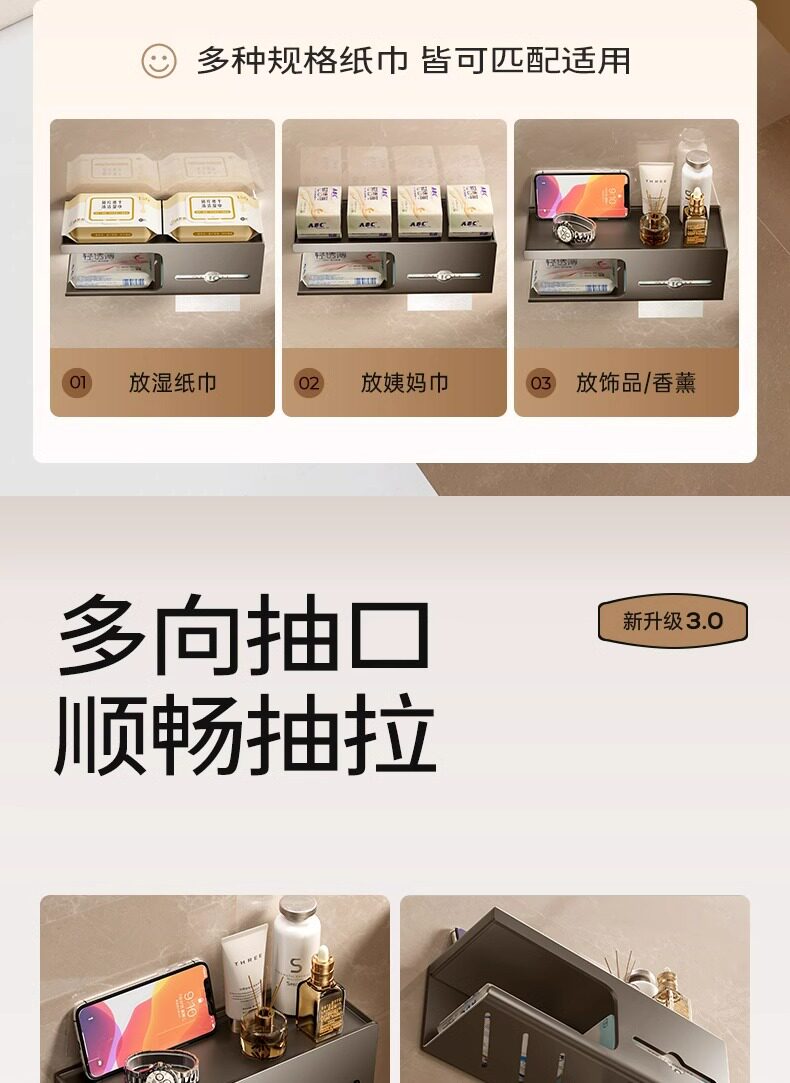 French imported ZIWOO cream style bathroom tissue box wall-mounted punch-free toilet paper tissue box