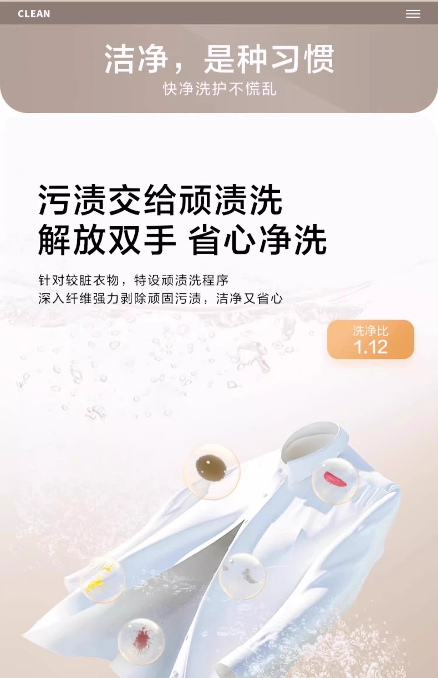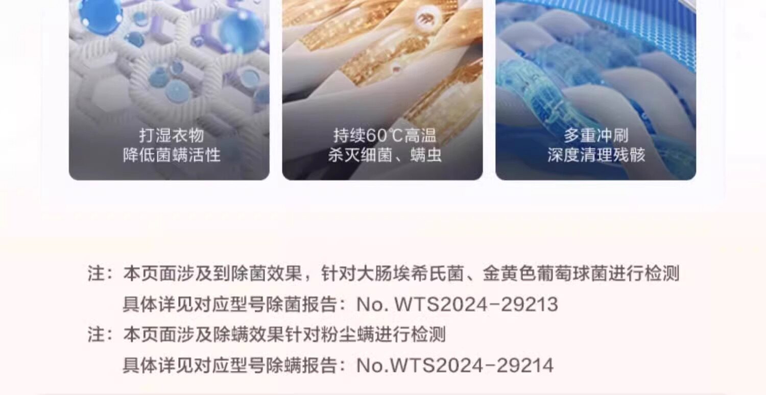 Laundry Program Self-Cleaning Tube,Super Soft Wash,Drifting Away,Stubborn Stain Wash,Mite Removal Wash,Mixed Wash,Single Dehydration,Quick Wash,Big Thing,Down Wash,Wool Wash