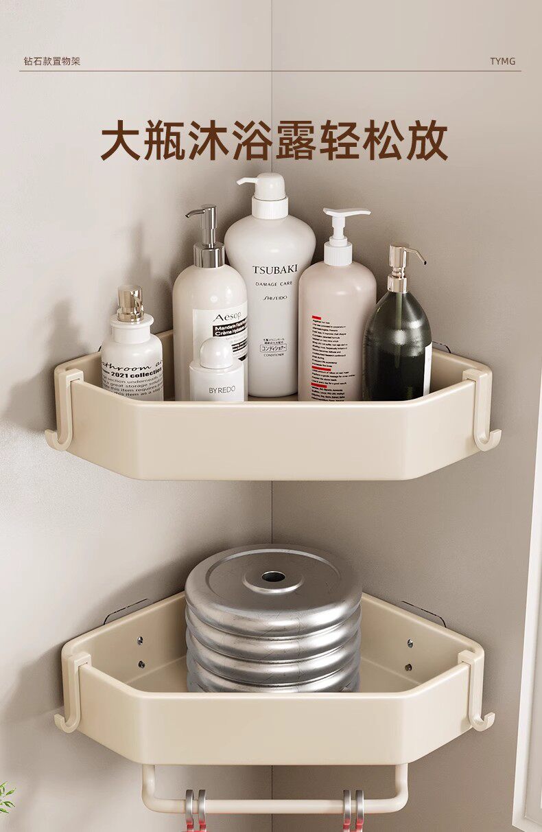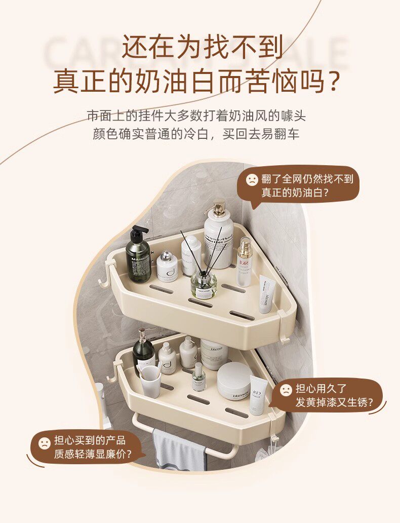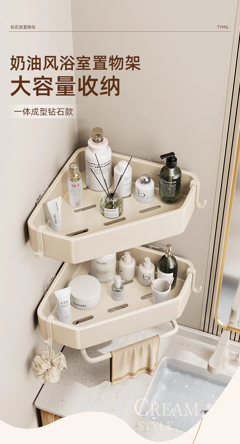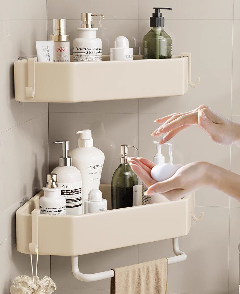 French Imported Ziwoo Cream-Colored Bathroom Shelf, No-Drill Wall-Mounted Integrated Shelf for the Bathroom