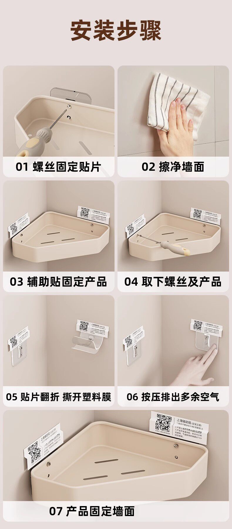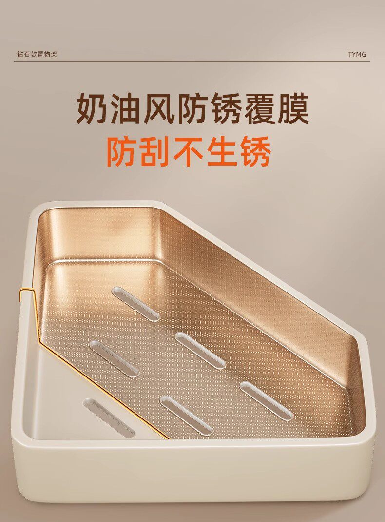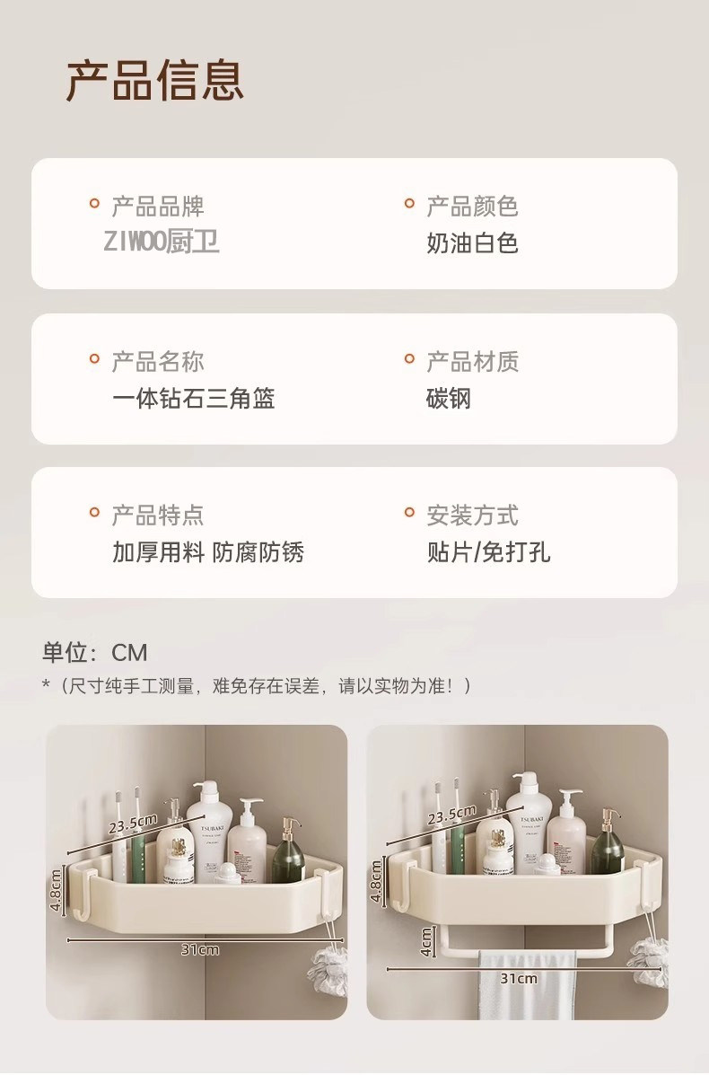 French Imported Ziwoo Cream-Colored Bathroom Shelf, No-Drill Wall-Mounted Integrated Shelf for the Bathroom