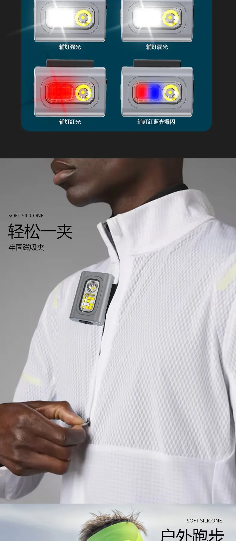 Night Running Magnetic Clip-On Light, Outdoor Chest Light, Running Belt Light, Wrist Waterproof Portable Lighting, Fishing Light, Flashlight