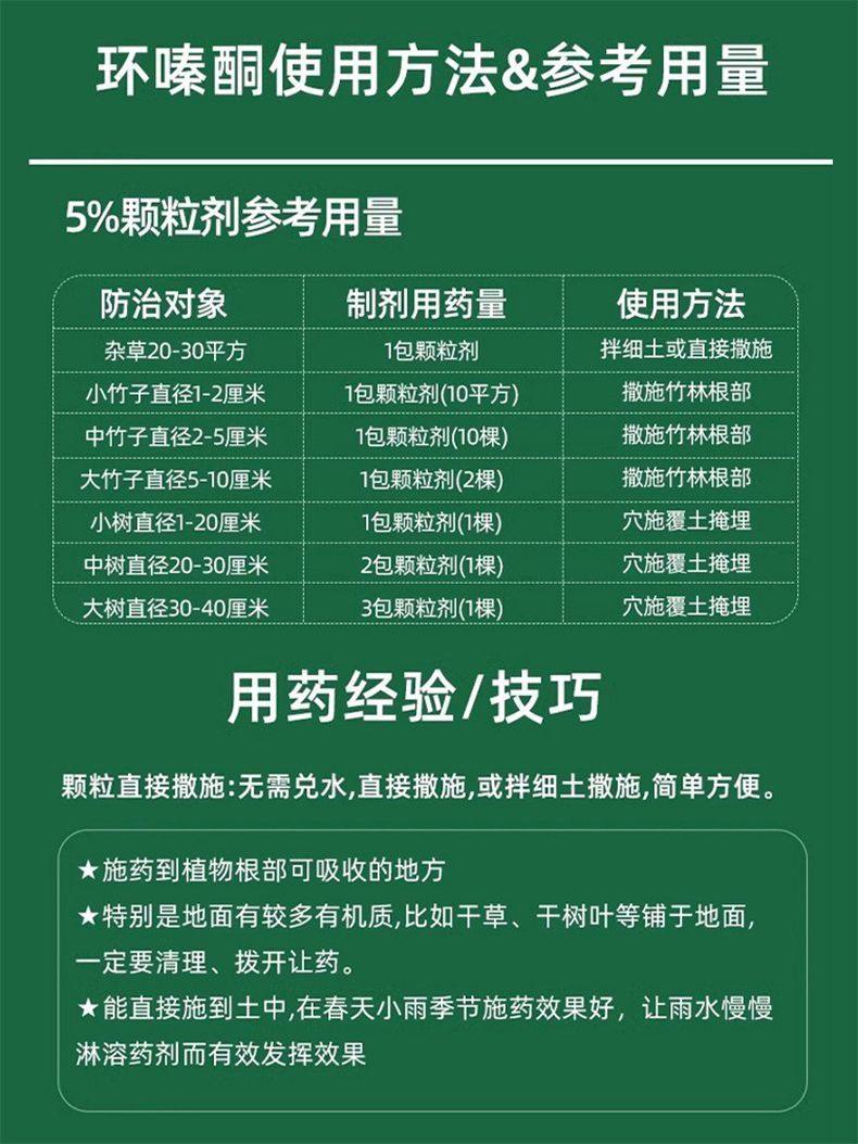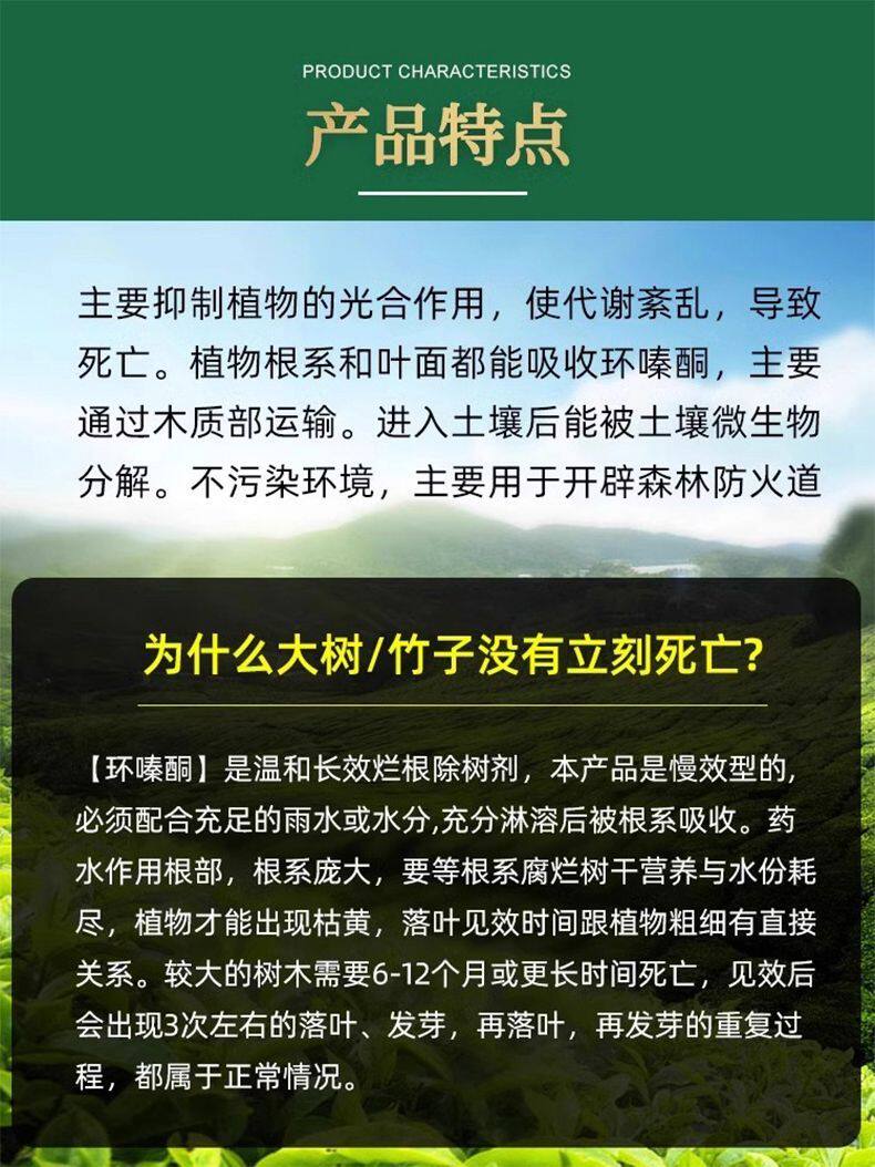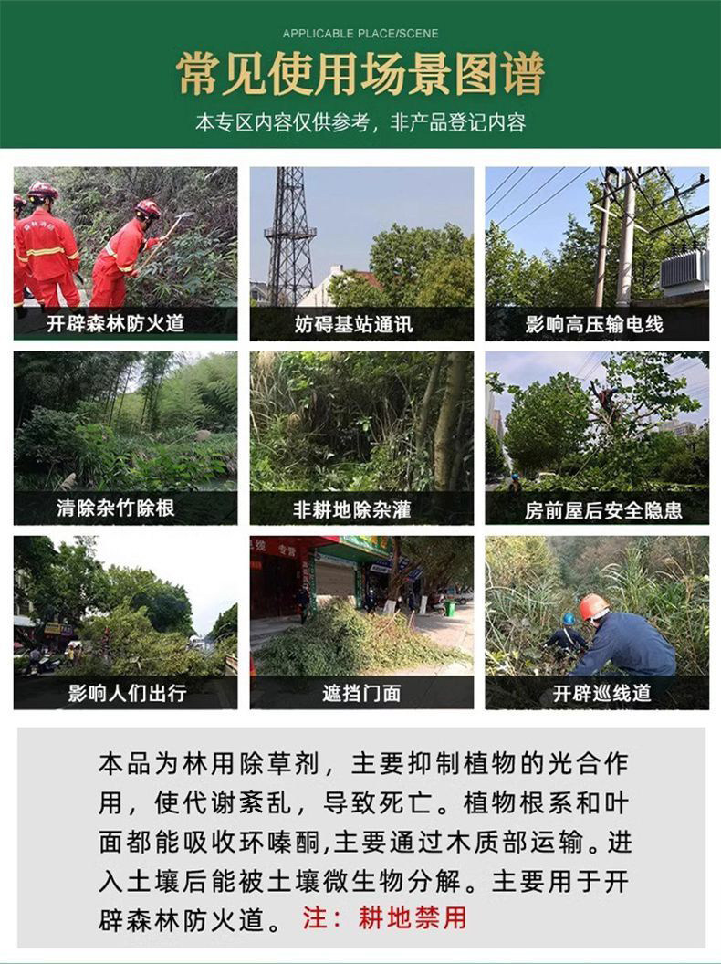 Cyclazine is specially used to remove weeds and rotten roots of large bamboo trees to clear up wasteland.