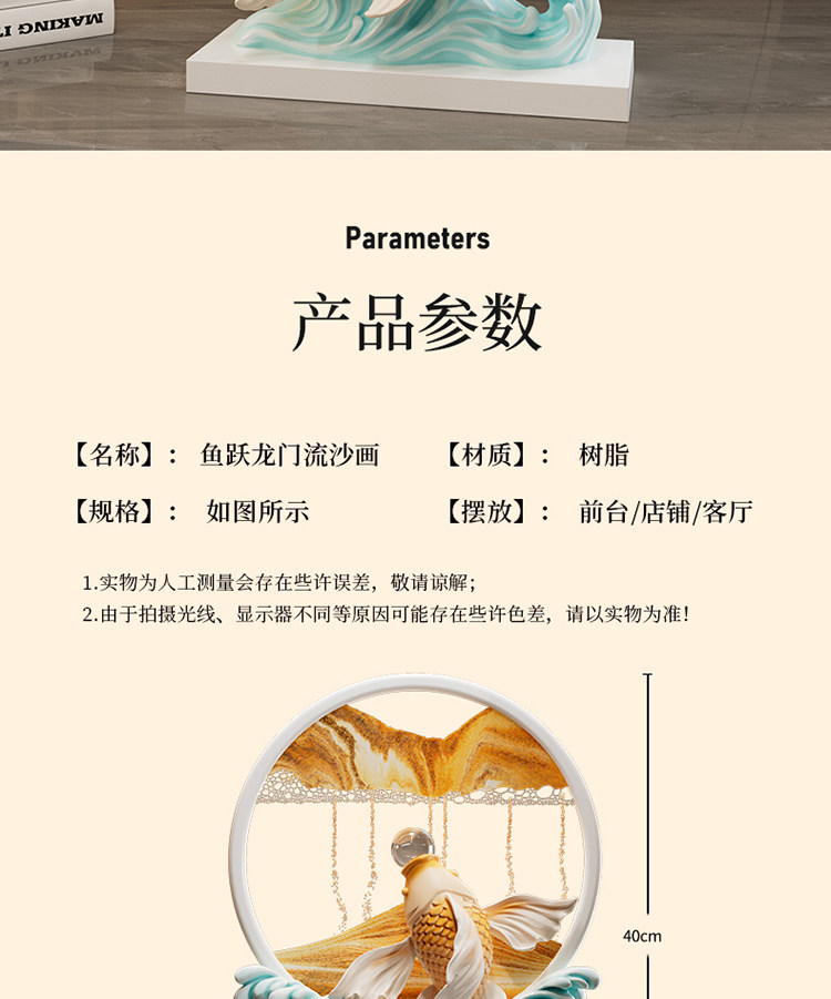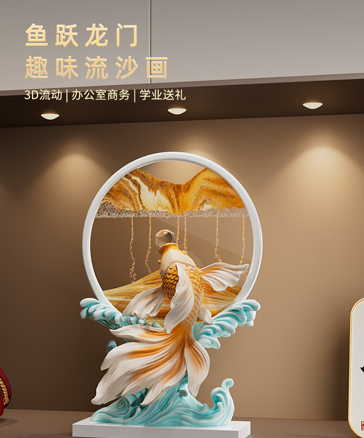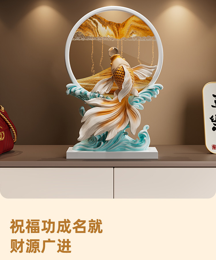 Light Luxury Ornaments, Fish Leaping over the Dragon Gate, Quicksand Painting Decorative Ornaments, Office Decompression Gifts, Business Gifts