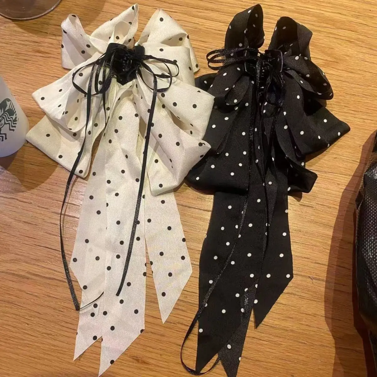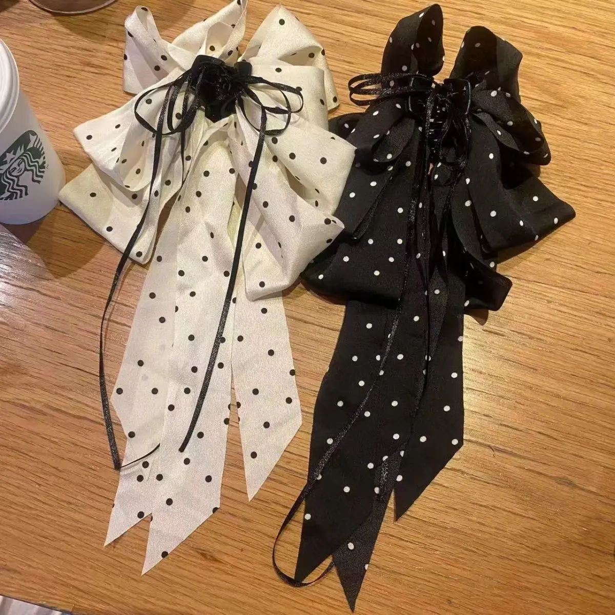 New Polka Dot Knot Hair Clip for Women 2025 New Style High-End Ribbon Ponytail Clip Hair Accessory