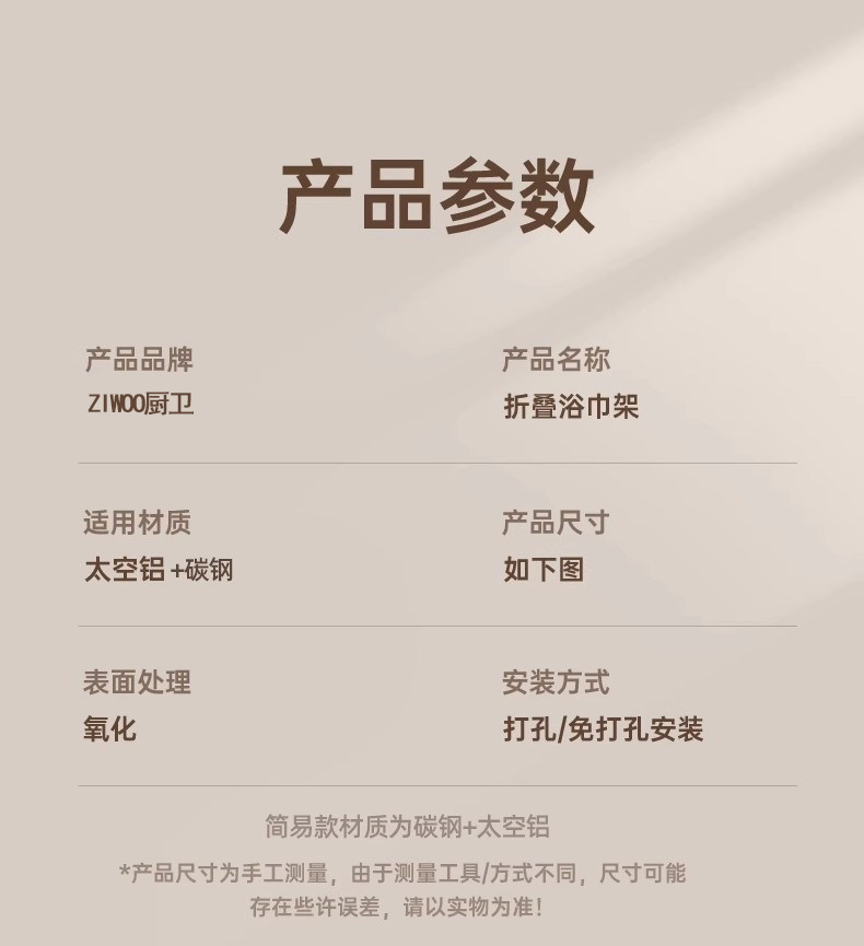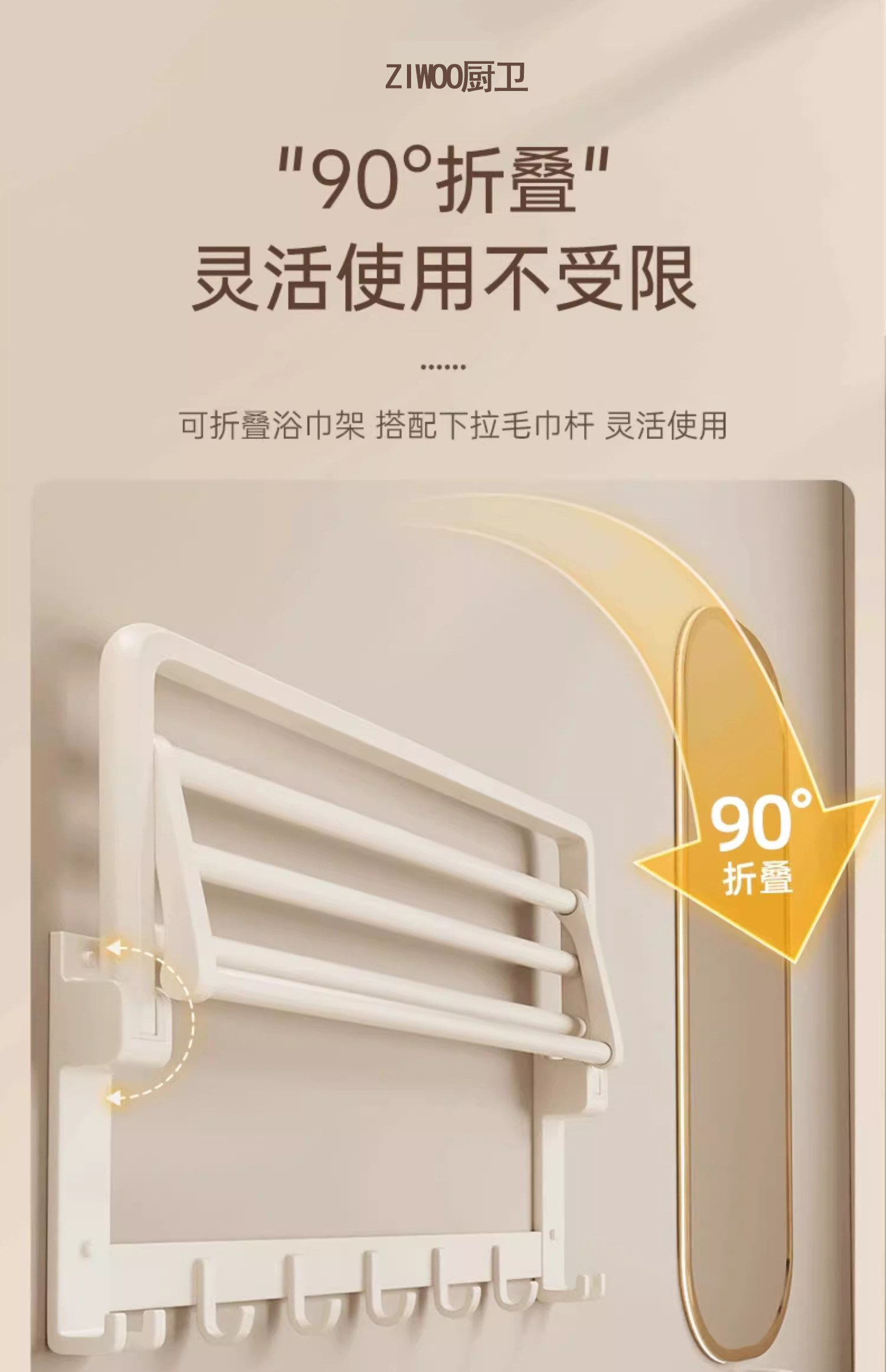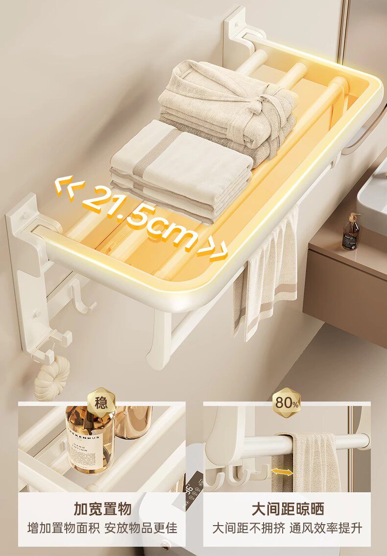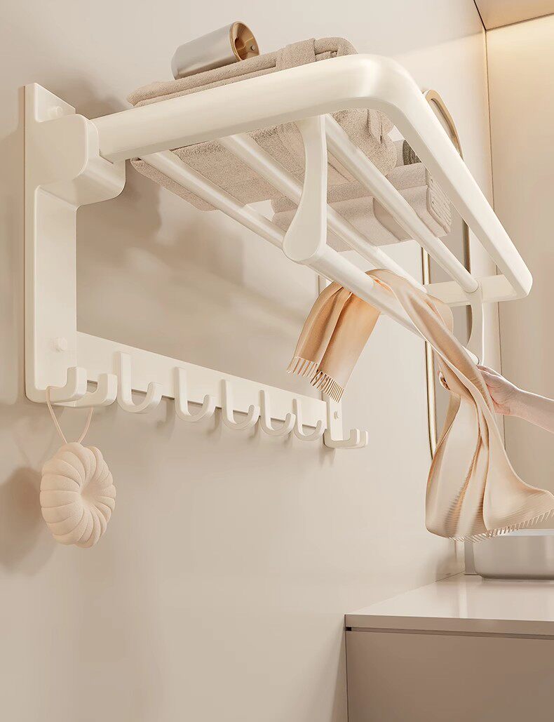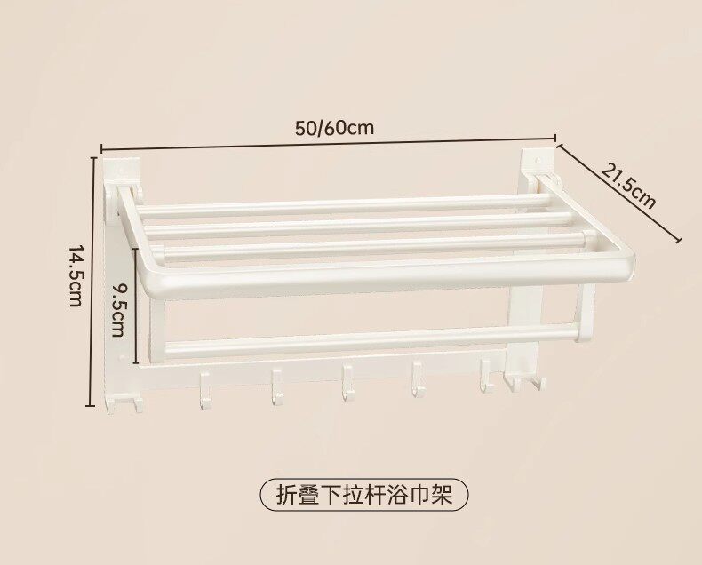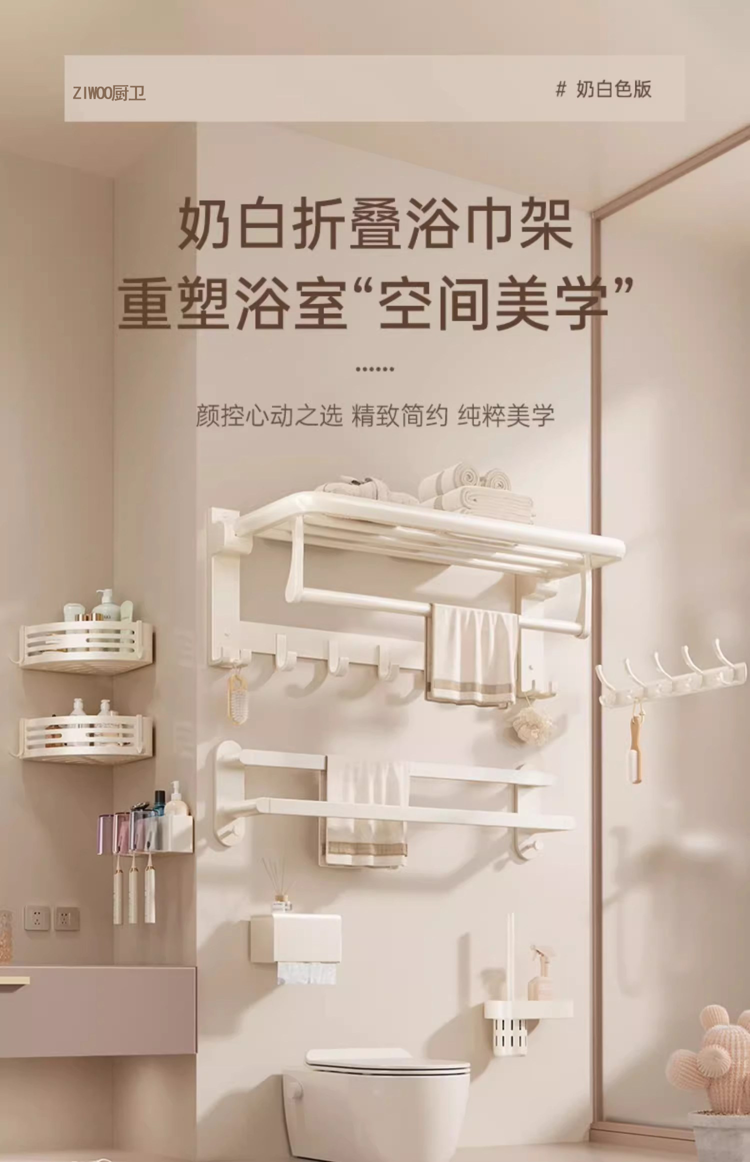 French Imported Ziwoo Cream-Colored Towel Rack, Bathroom No-Drill Storage Rack, Washroom Towel Rack