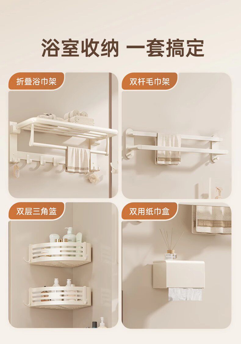 Color Classification [Thickened Upgraded Version]40cm,[Thickened Upgraded Version]50cm,Hot Selling Recommendations[Thickened Upgraded Version]60cm,[Thickened Upgraded Version]70cm,[2 Piece Set a]Bath Towel Rack + Long Tissue Box,[2 Piece Set B]Towel Rack + Triangular Basket*2,[2 Piece Set C]Bath Towel Rack + Towel Bar,[3 Piece Set a]Towel Rack + Tissue Box + Toilet Brush,[3 Piece Set B] Towel Rack + Triangular Basket + Tissue Box,[3 Piece Set C]Towel Rack + Triangular Basket + Toilet Brush,[3 Piece Set D] Bath Towel Rack + Towel Bar + Tissue Box,[3 Piece Set E] Bath Towel Rack + Towel Bar + Toilet Brush,Hot Selling Recommendations[3 Piece Set F]Towel Rack + Triangular Basket*2 + Towel Bar,[4 Piece Set a]Bath Towel Rack + Triangular Basket*2 + Tissue Box + Towel Bar,[4 Piece Set B]Bath Towel Rack + Triangular Basket*2 + Tissue Box + Toilet Brush,[4 Piece Set C] Bath Towel Rack + Triangular Basket + Towel Bar + Row of Hooks,[4 Piece Set D]Bath Towel Rack + Towel Bar + Tissue Box + Toilet Brush,[4 Piece Set E]Bath Towel Rack + Triangular Basket + Towel Bar + Toilet Brush,[5 Piece Set a] Bath Towel Rack + Triangular Basket + Towel Bar + Tissue Box + Row of Hooks,Hot Selling Recommendations[5 Piece Set B]Bath Towel Rack + Triangular Basket*2 + Towel Bar + Tissue Box + Toilet Brush,Hot Selling Recommendations[6 Piece Set a]Bath Towel Rack + Triangular Basket*2 + Tissue Box + Toilet Brush + Row Hook