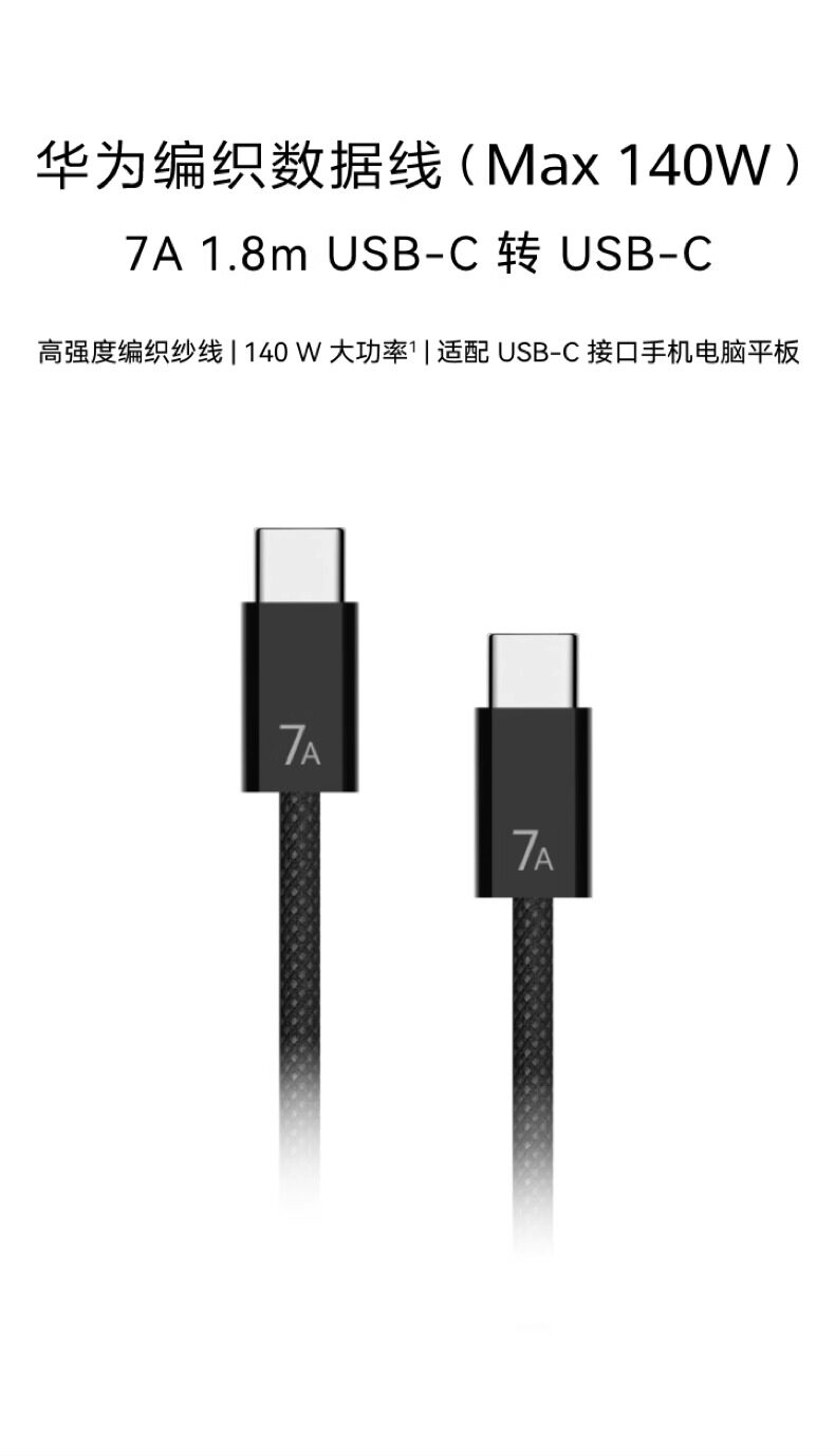 Huawei/Huawei Original 7A Braided Data Cable 140W High-Power Dual-Head Type-C High-Strength Braided Yarn Mate70Pro Mobile Phone Computer Tablet Charging Cable Official Flagship Genuine Product