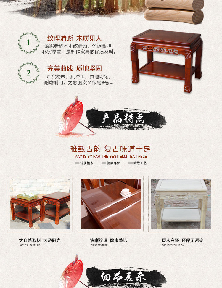 Chinese-Style Antique-Style Simple Tea Table, Living Room Old Elm Wood Rectangular Coffee Table, Tea Table Corner Table, Solid Wood Table