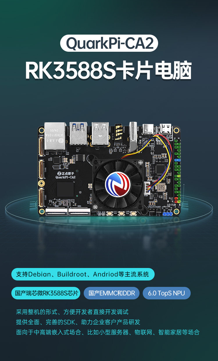 Zhengdian Atom Rk3588S Card Computer Ai Development Board Linux Embedded Quarkpi-Ca2