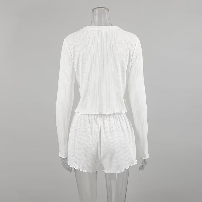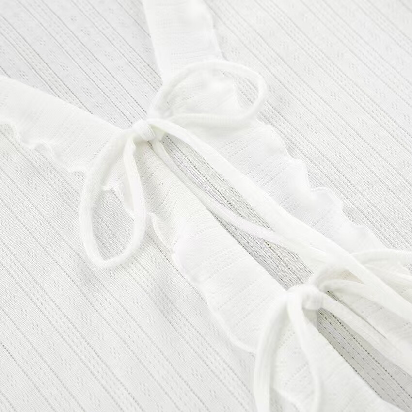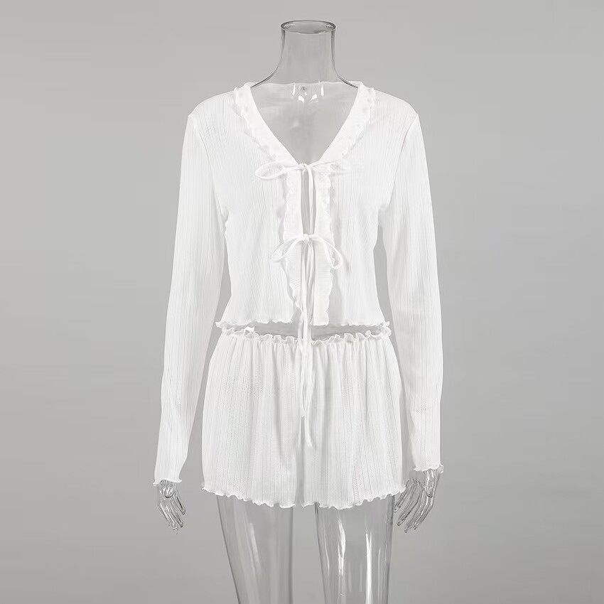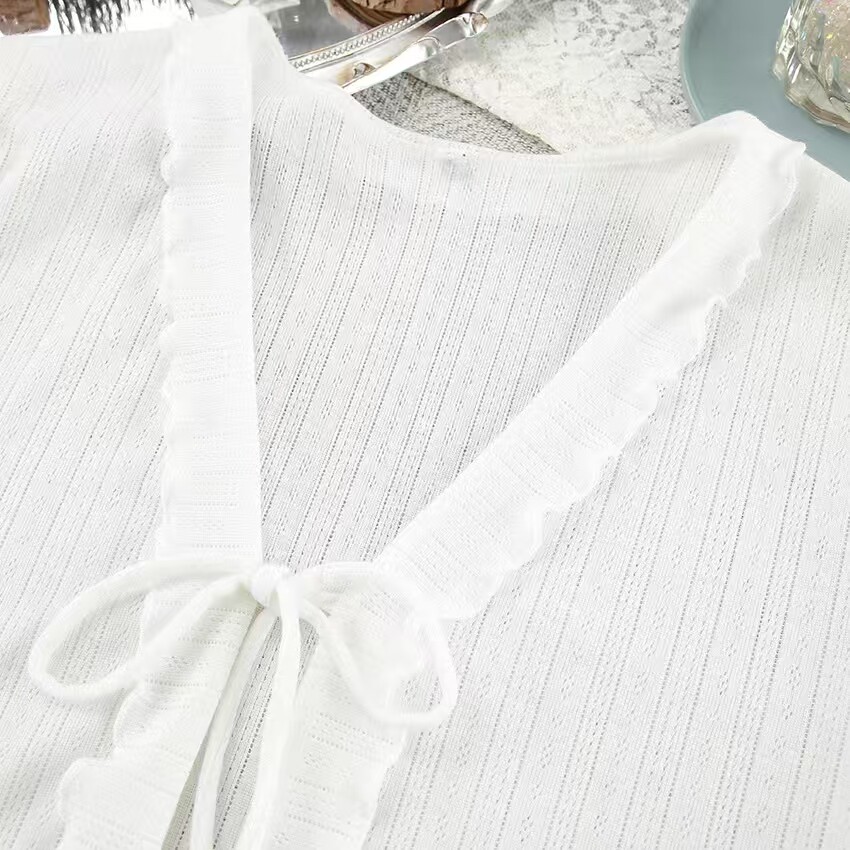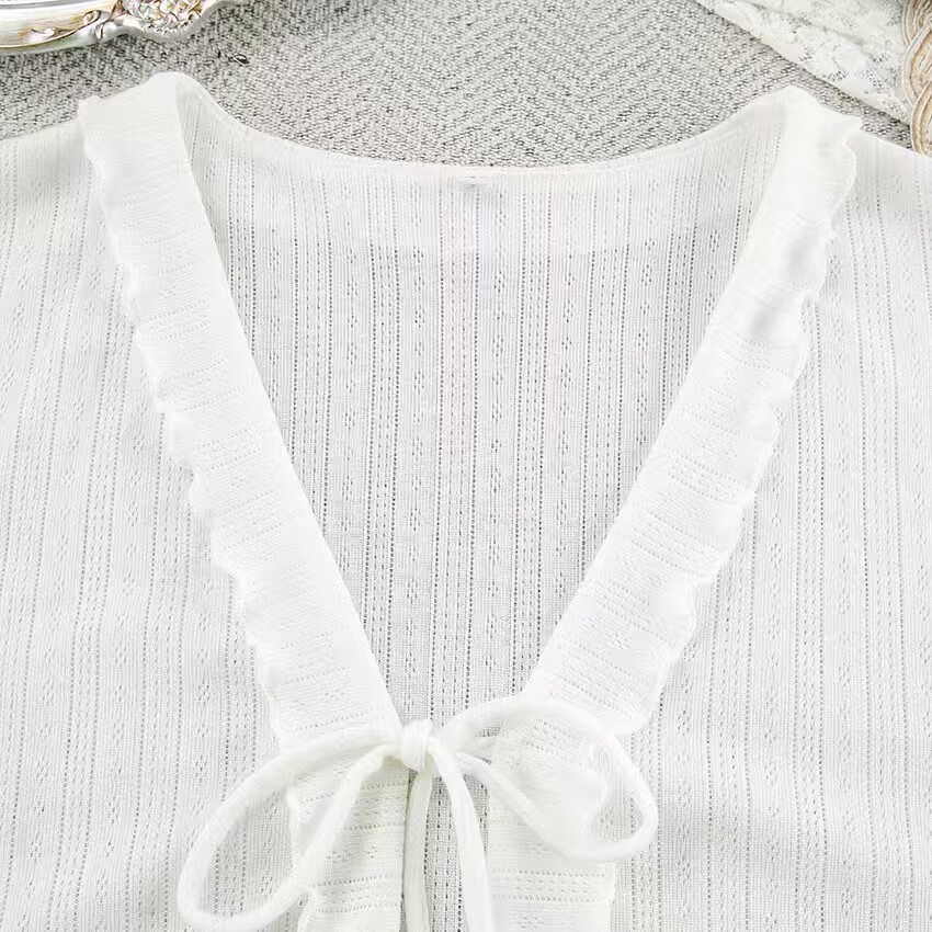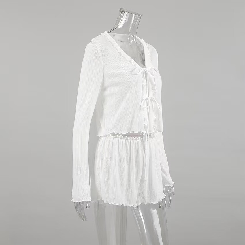 European and American Style Hollow-Out Cardigan Top and Shorts Set Loungewear Cardigan Tie Top Shorts Set