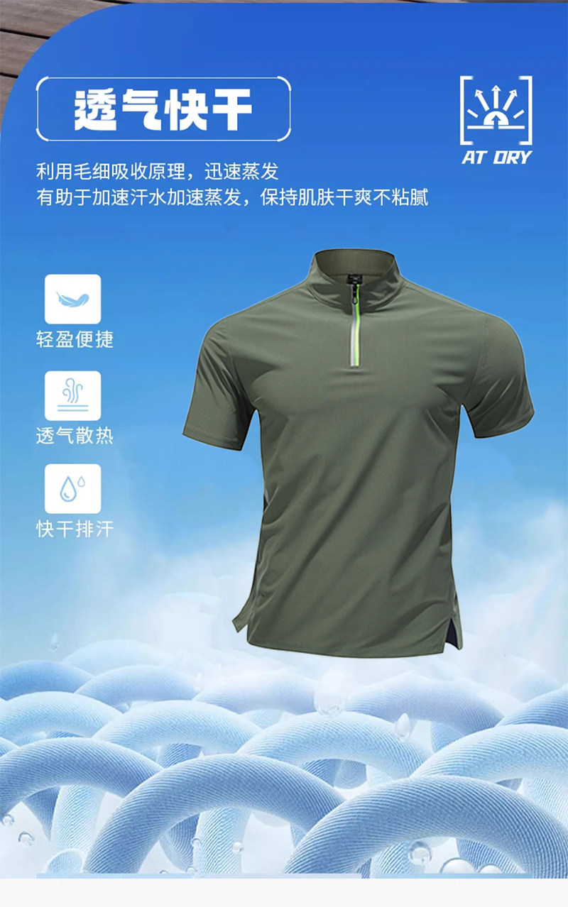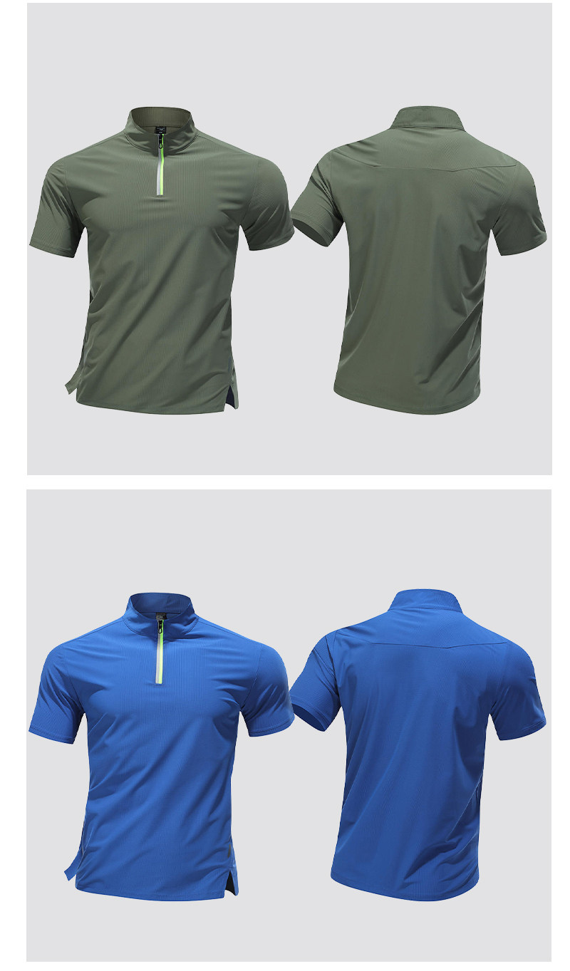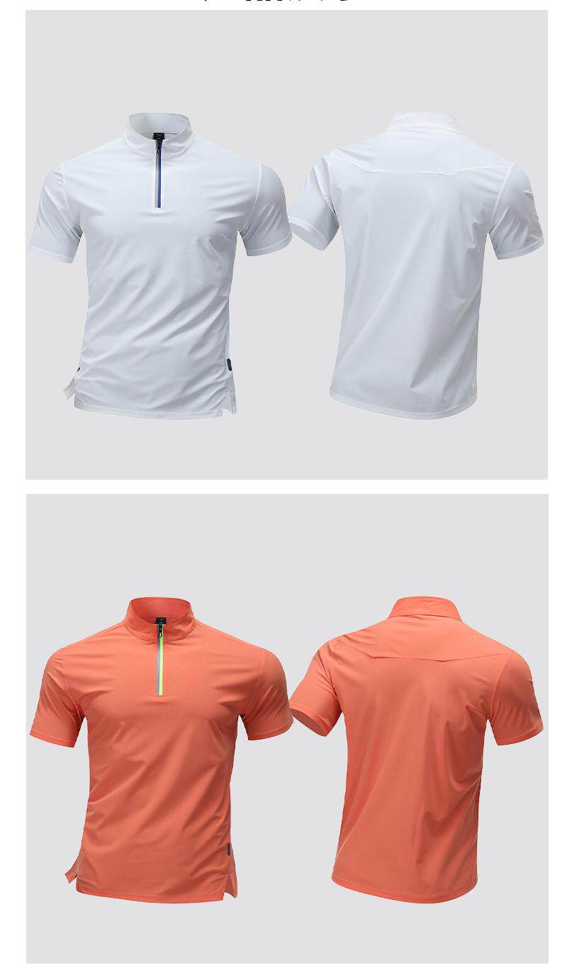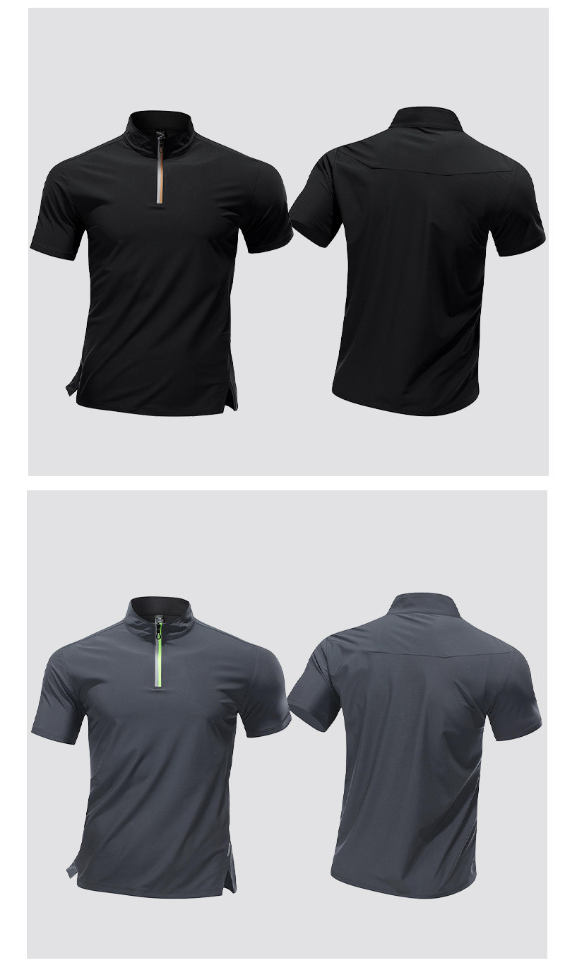 Sports T-Shirt Men's Running Top Half-Zip Stand Collar Ice Silk Quick-Drying Short-Sleeved Summer Sports Training Tennis Clothes
