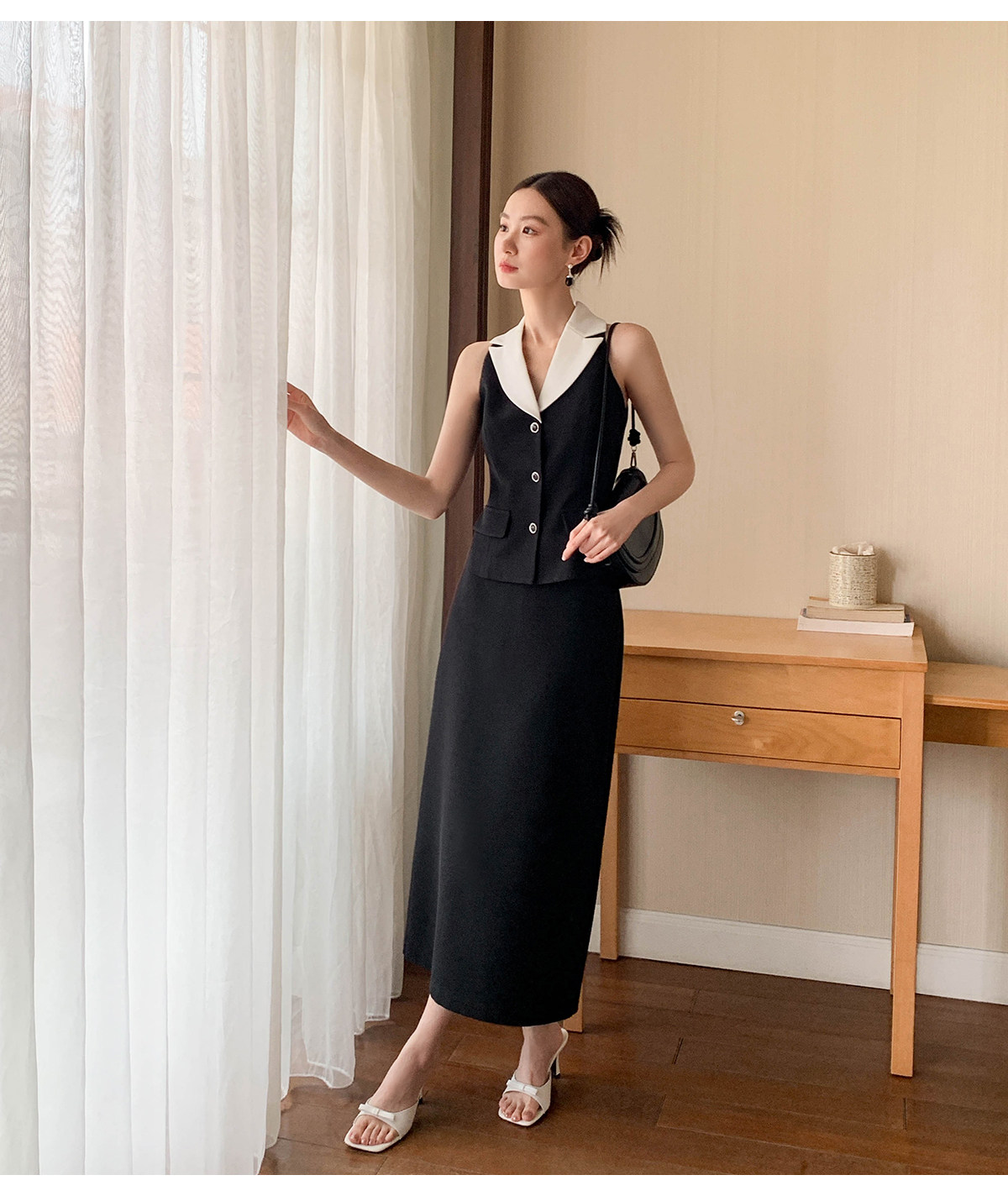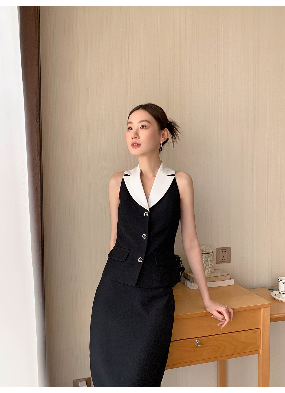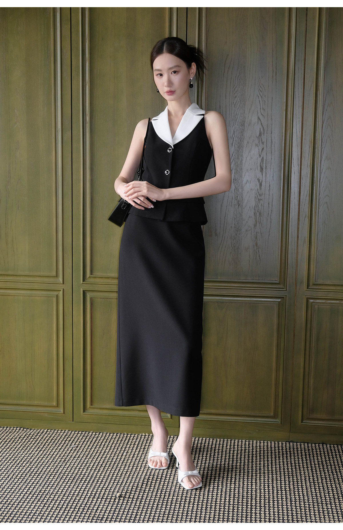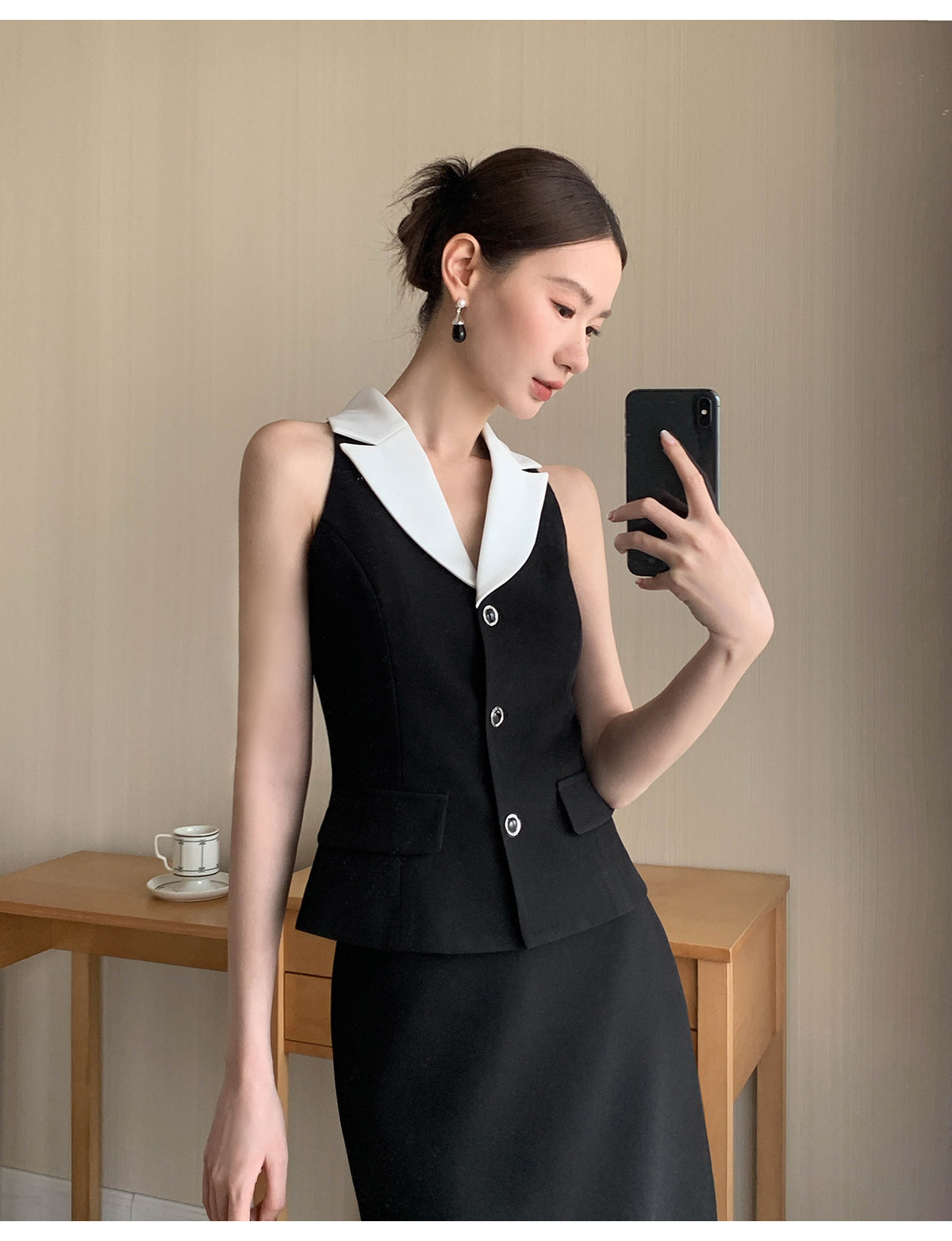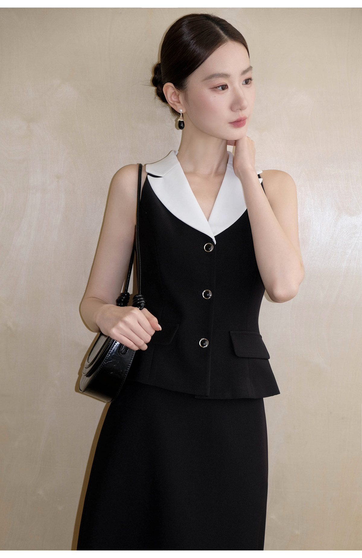 Xxning French-Style Color-Blocked Lapel Vest and Skirt Set for Women, Autumn Fashion, Commuter Style, High-End Two-Piece Set