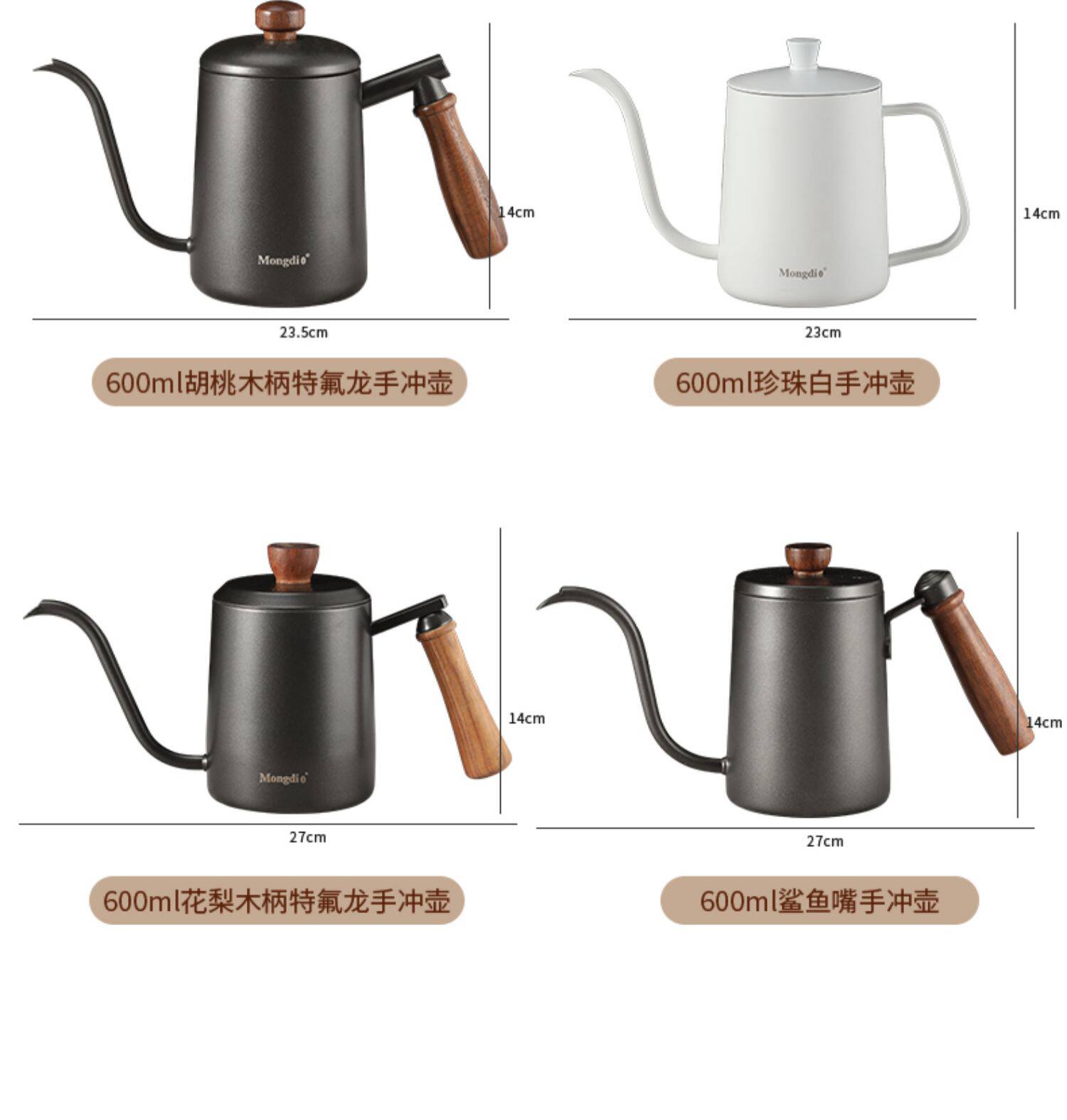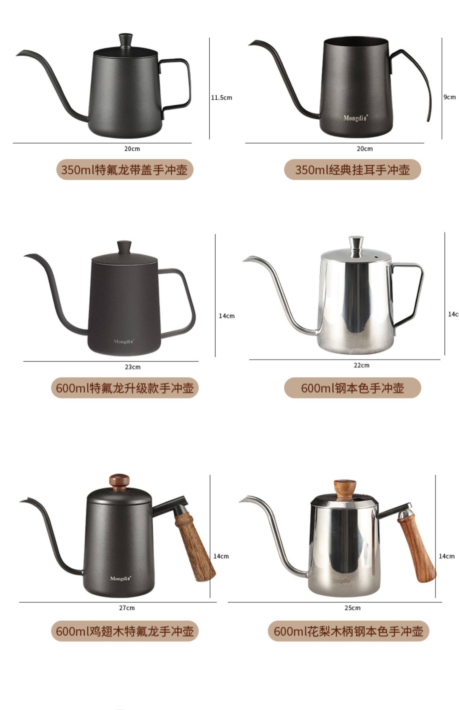 Color Classification Steel Color 250ml Hand Brewing Kettle[Without Cover],Classic Black 250ml Hand Brewing Kettle[Without Cover],Steel Color 250ml Hand Brewing Kettle[Bamboo Cover],Classic Black 250ml Hand Brewing Kettle[Bamboo Cover],Stainless Steel 350ml Pour-Over Kettle[Without Cover],Classic Black 350ml Hand Brewing Kettle[Without Cover],Stainless Steel 350ml Pour-Over Kettle[Bamboo Cover],Classic Black 350ml Hand Brewing Kettle[Bamboo Cover],Classic Black 350ml Hand Brewing Kettle[Black Cover],Stainless Steel 600ml Pour-Over Kettle[With Lid],Classic Black 600ml Hand Brewing Kettle[Black Cover],Painted Off-White 600ml Hand Brewing Kettle[White Cover],Shark Mouth Wooden Handle Black 600ml Hand Brewing Kettle[Black Cover],Shark Mouth Wooden Handle White 600ml Hand Brewing Kettle[White Cover],Walnut Handle 600ml Hand Brewing Kettle[With Lid],300ml Large Belly Style[Without Cover],300ml Big Belly Upgraded Version[Without Cover],400ml White Hand Brewing Kettle with Wooden Handle