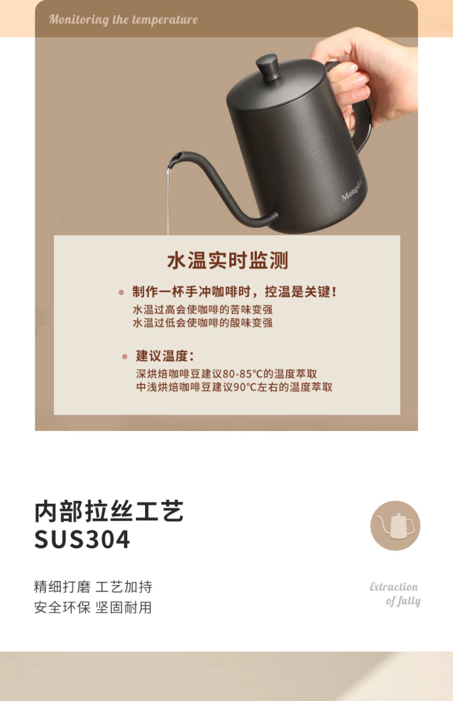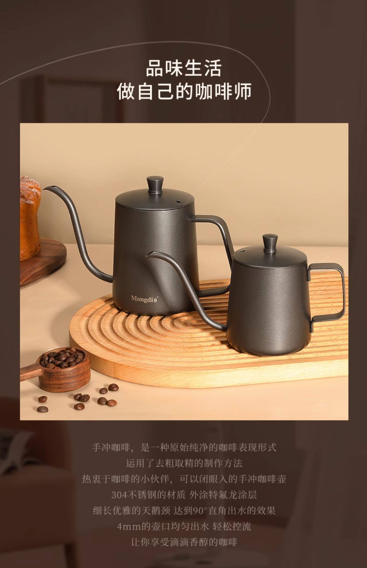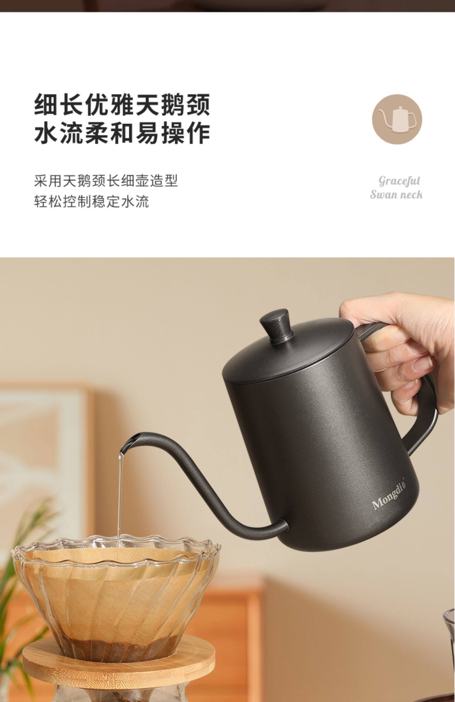 Mongdio Coffee Pour-Over Kettle Stainless Steel Gooseneck Coffee Kettle Home Use Long Spout Kettle Pour-Over Coffee Kettle Utensils