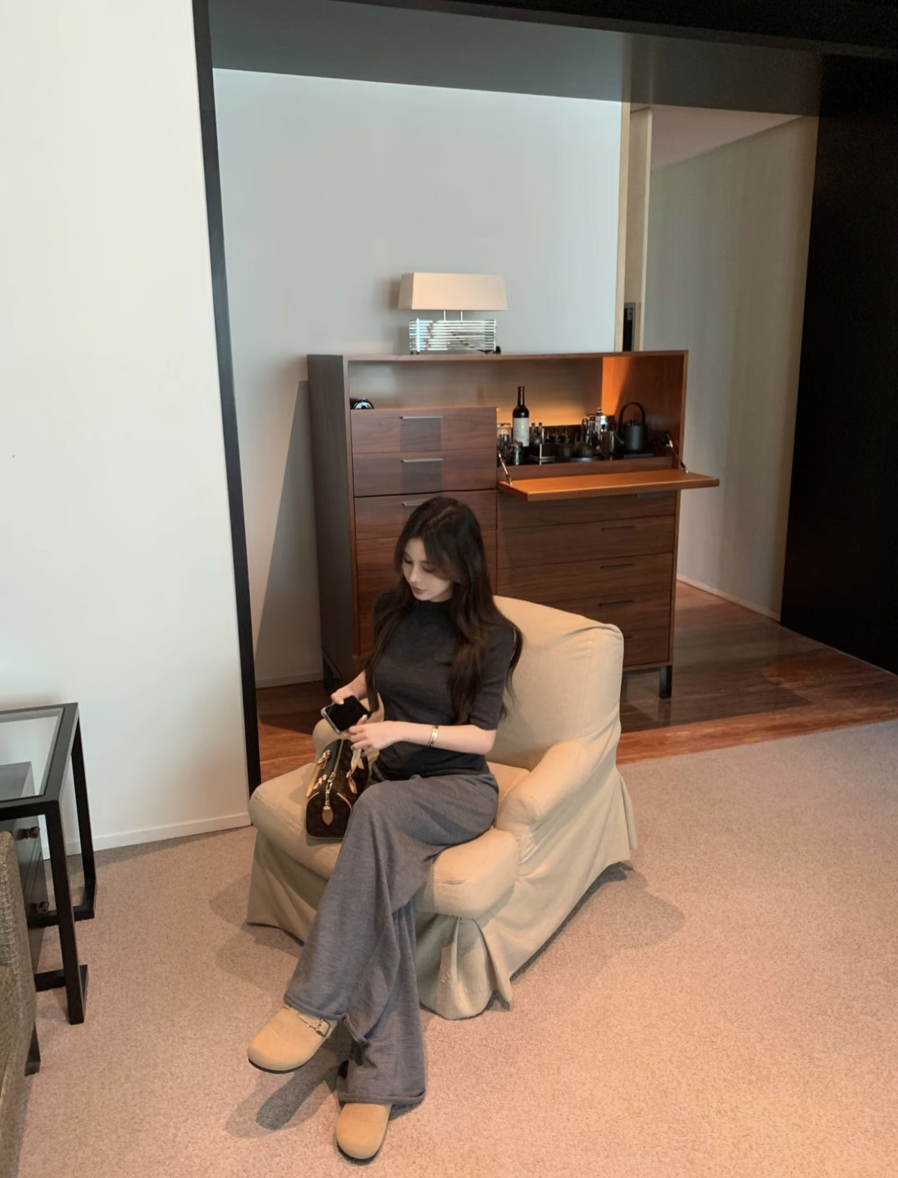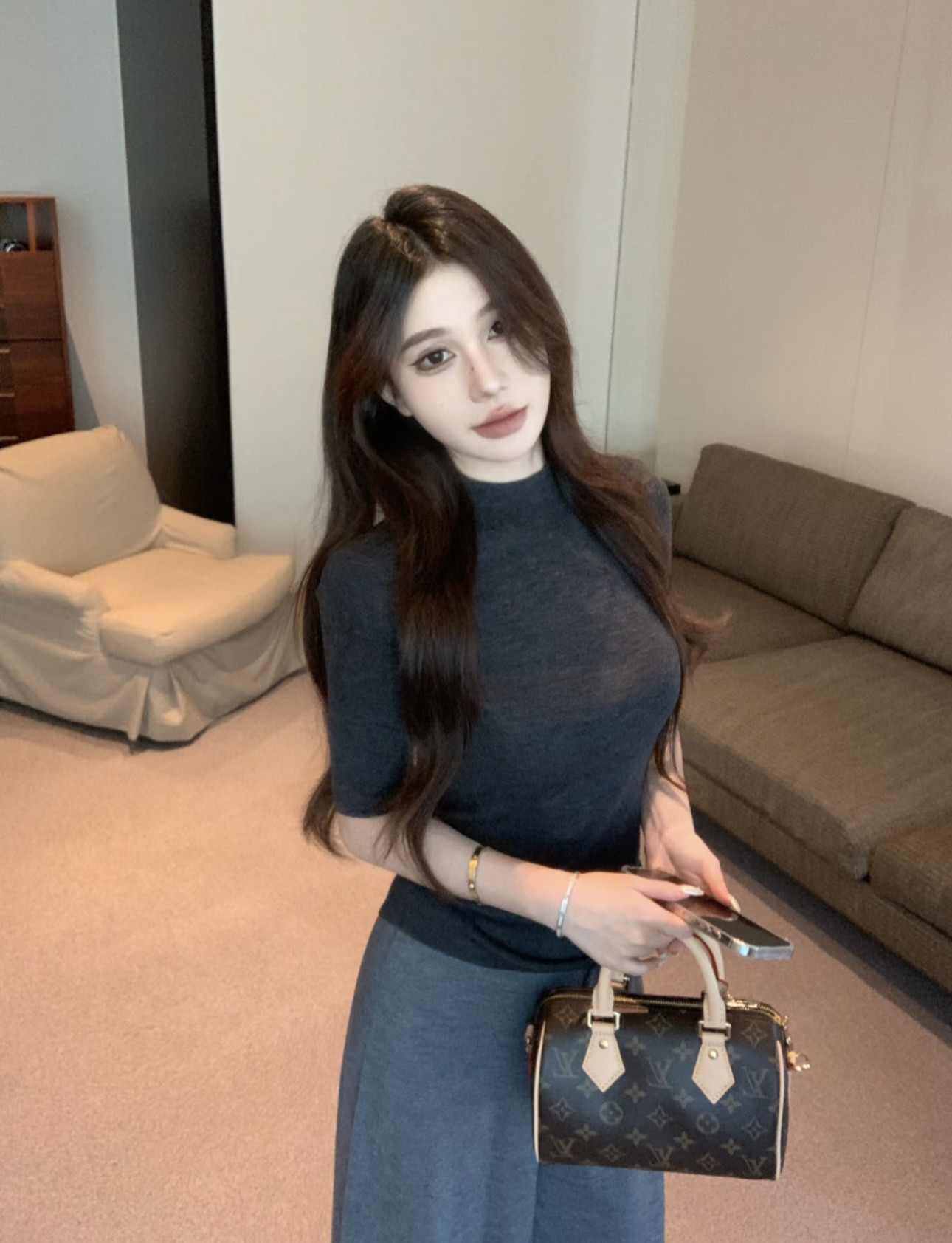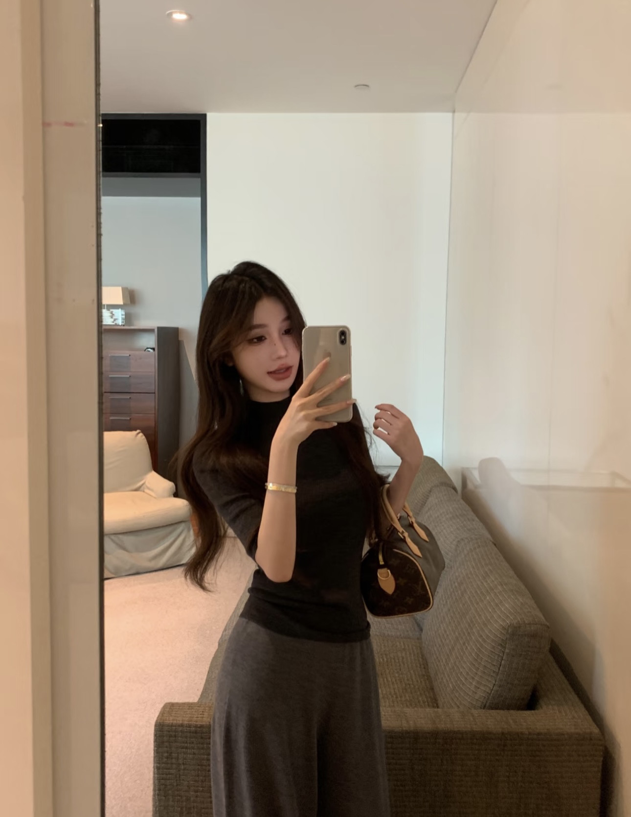Color Classification Dark Gray Long-Sleeved Top,Dark Gray Trousers,Brown Long-Sleeved Top,Brown Trousers