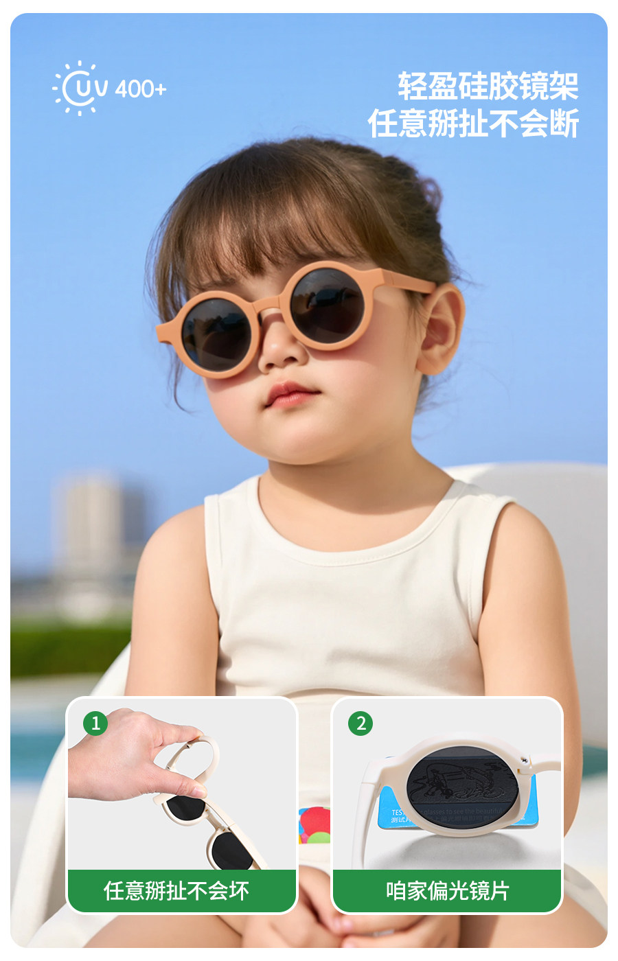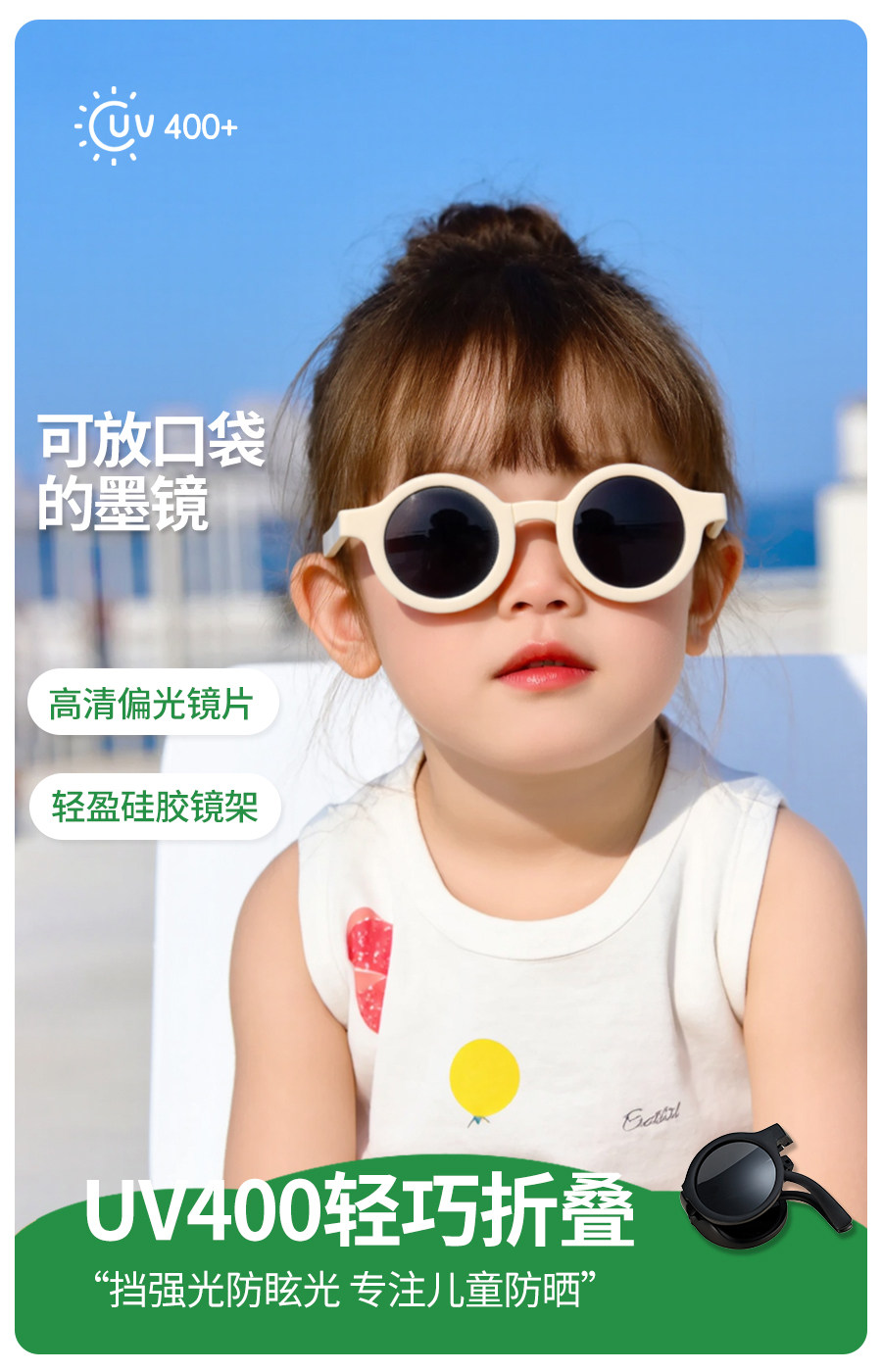 Foldable children's sunglasses polarized girls' sunglasses silicone baby glasses anti-UV boys' sunglasses trendy
