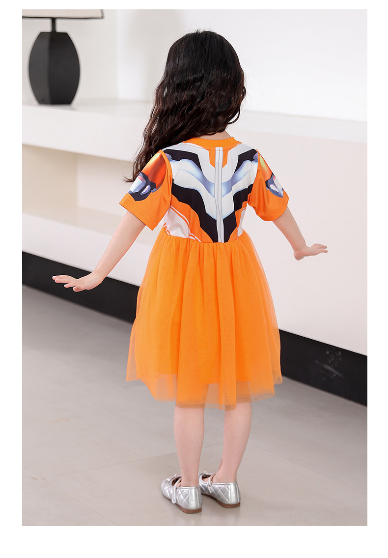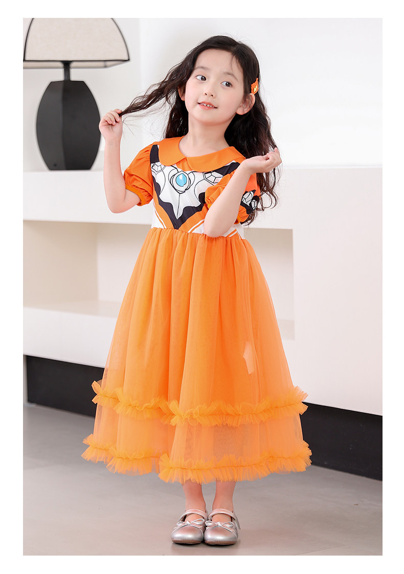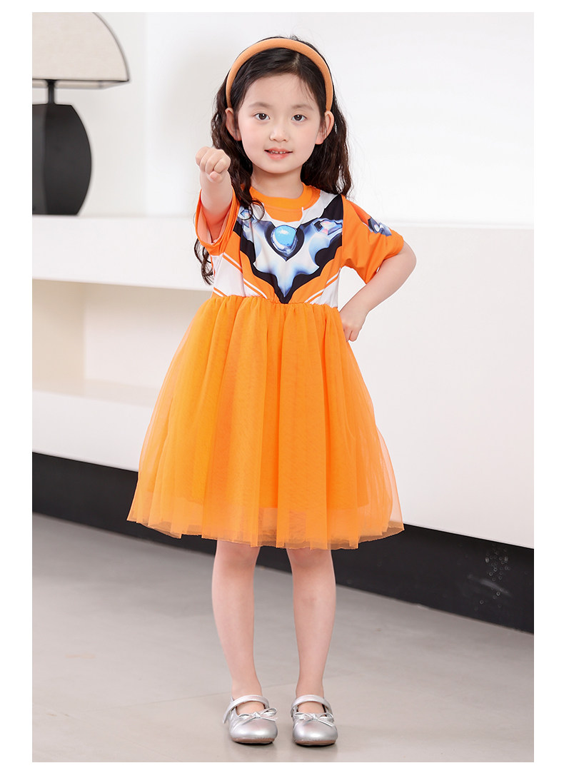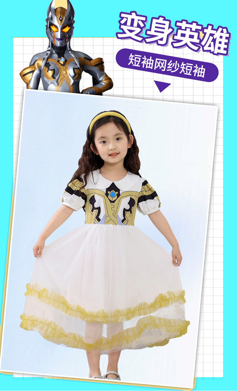 Ultraman Grigio Clothes Girls' Short-Sleeved Dress Summer Dress Kidsren's Mesh Puff Sleeve Princess Dress Kidsren's Clothing
