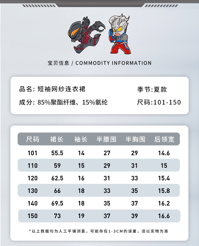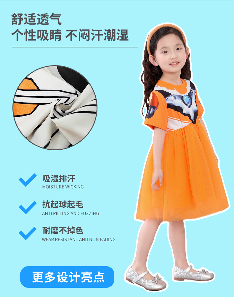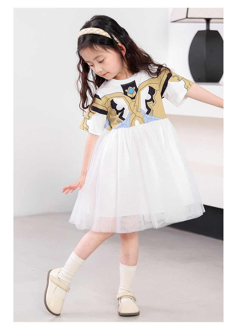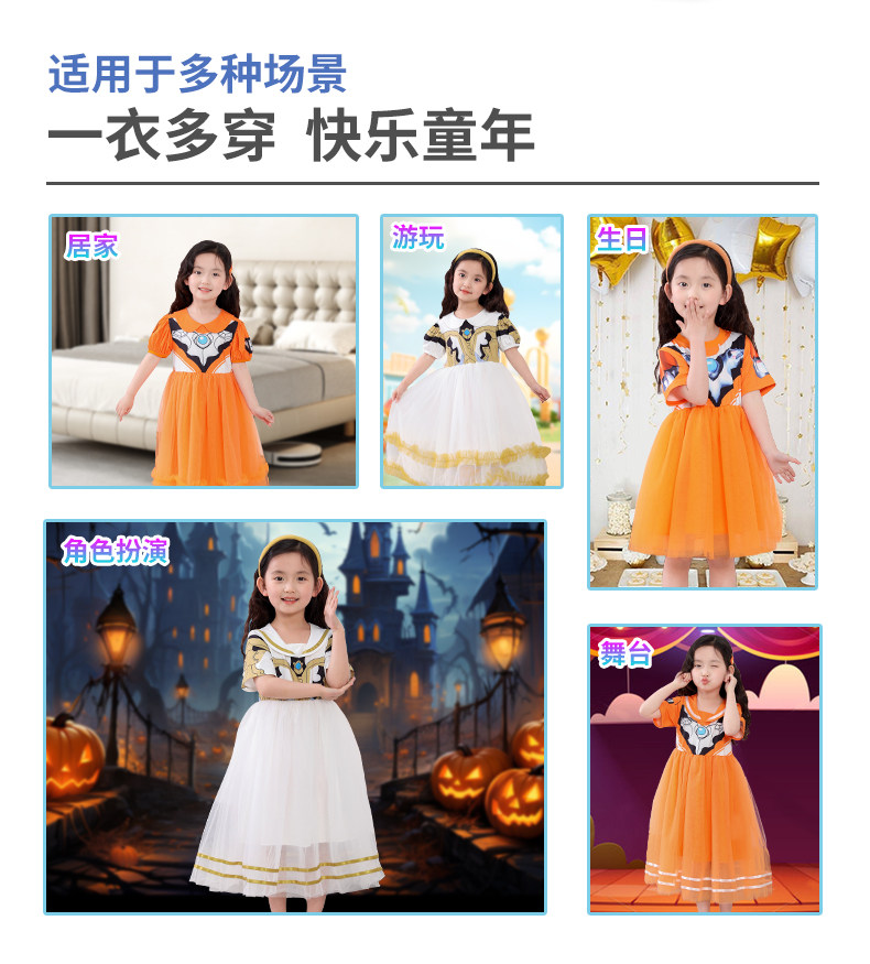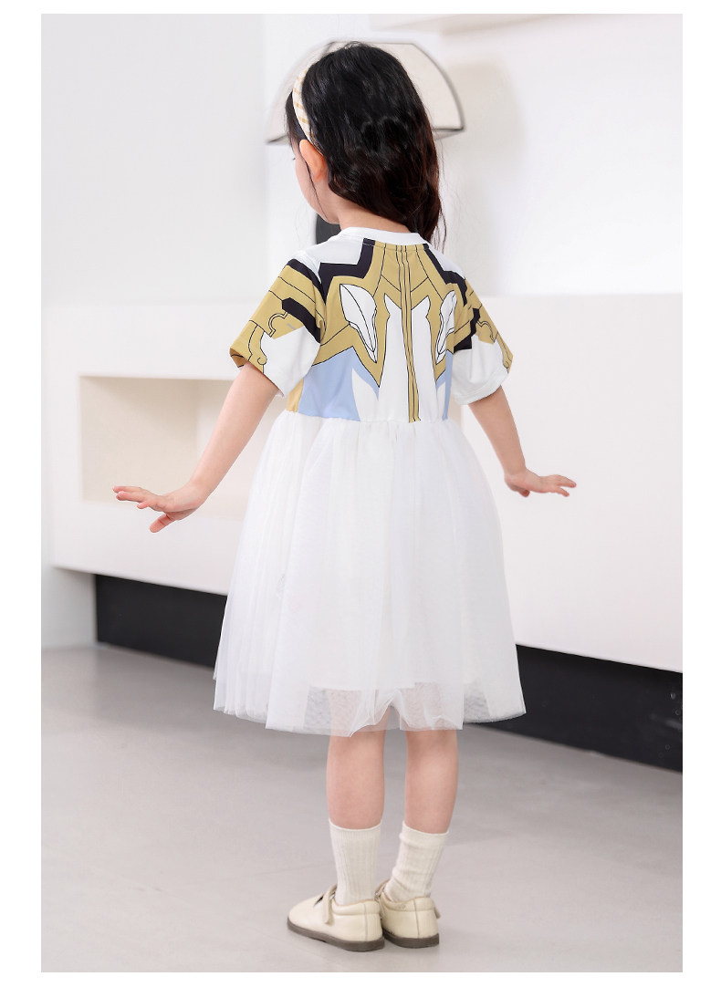 Ultraman Grigio Clothes Girls' Short-Sleeved Dress Summer Dress Kidsren's Mesh Puff Sleeve Princess Dress Kidsren's Clothing
