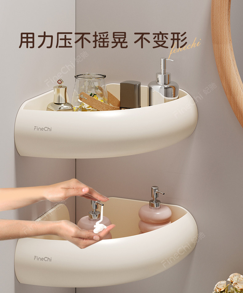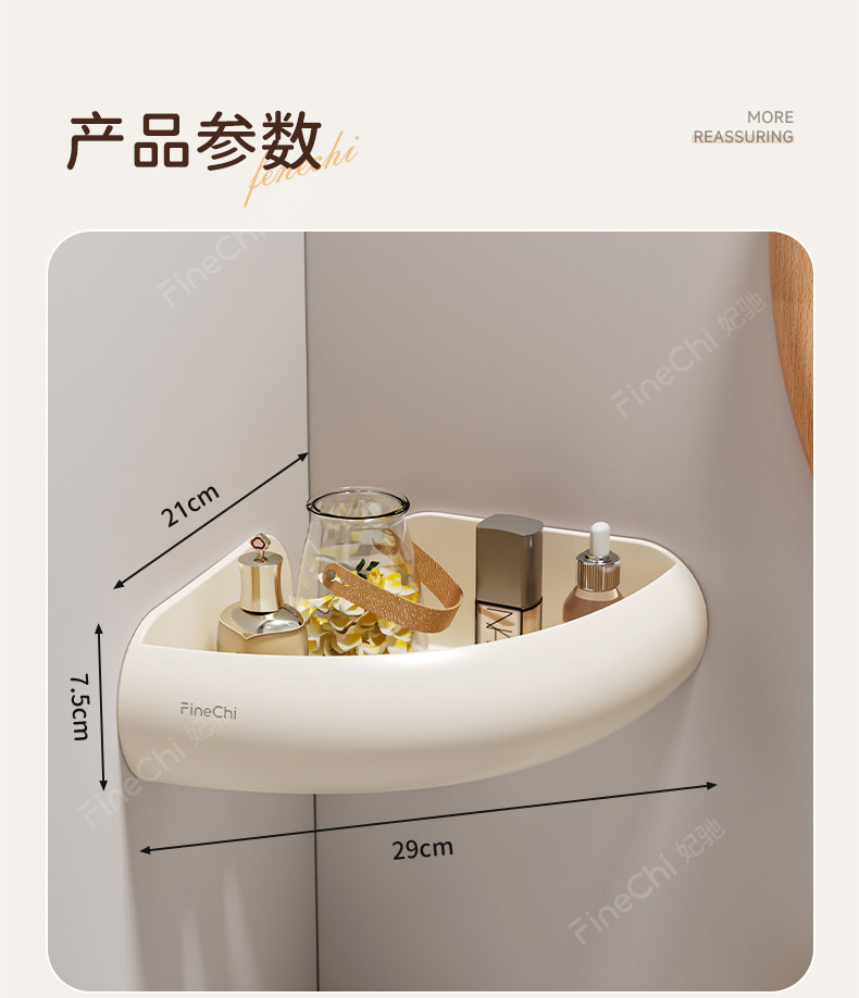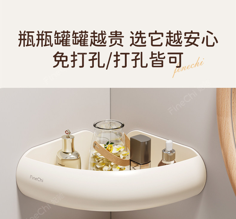 Finechi Natural Wood Style Bathroom Triangular Shelf, No-Drill Installation, Bathroom Sink, Shower, Space Aluminum, Milk White