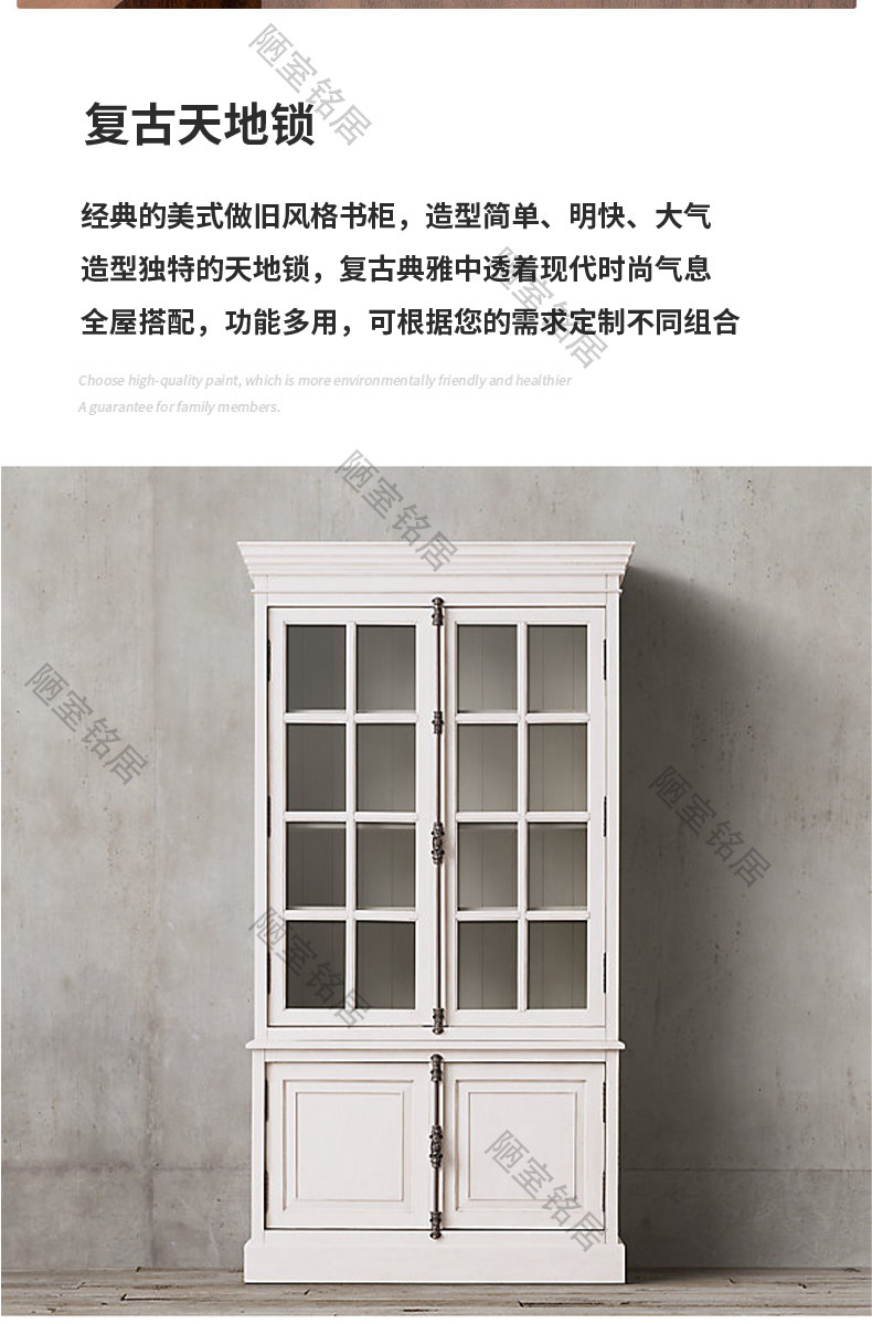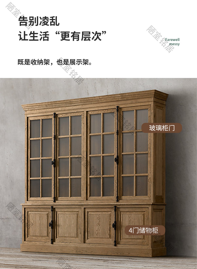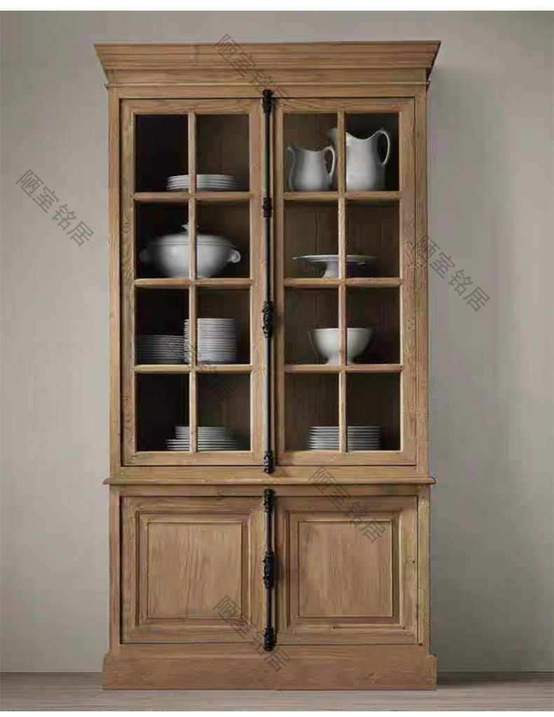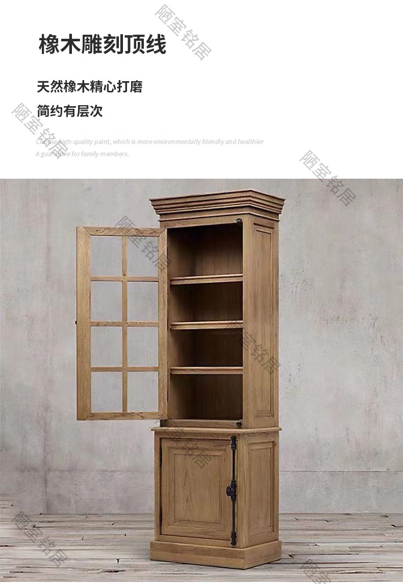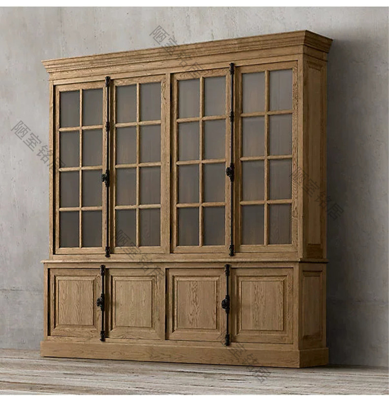 American country retro old glass door storage cabinet French oak world lock full wall bookcase bookcase display cabinet