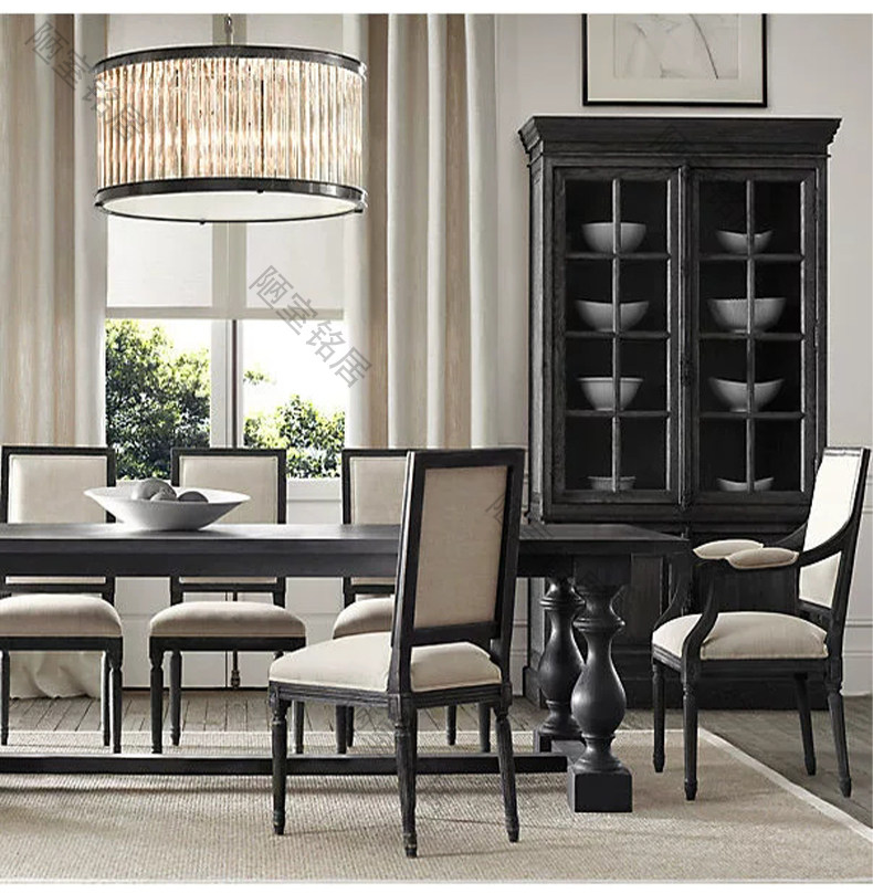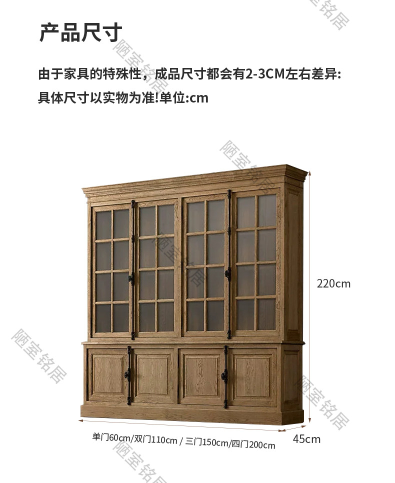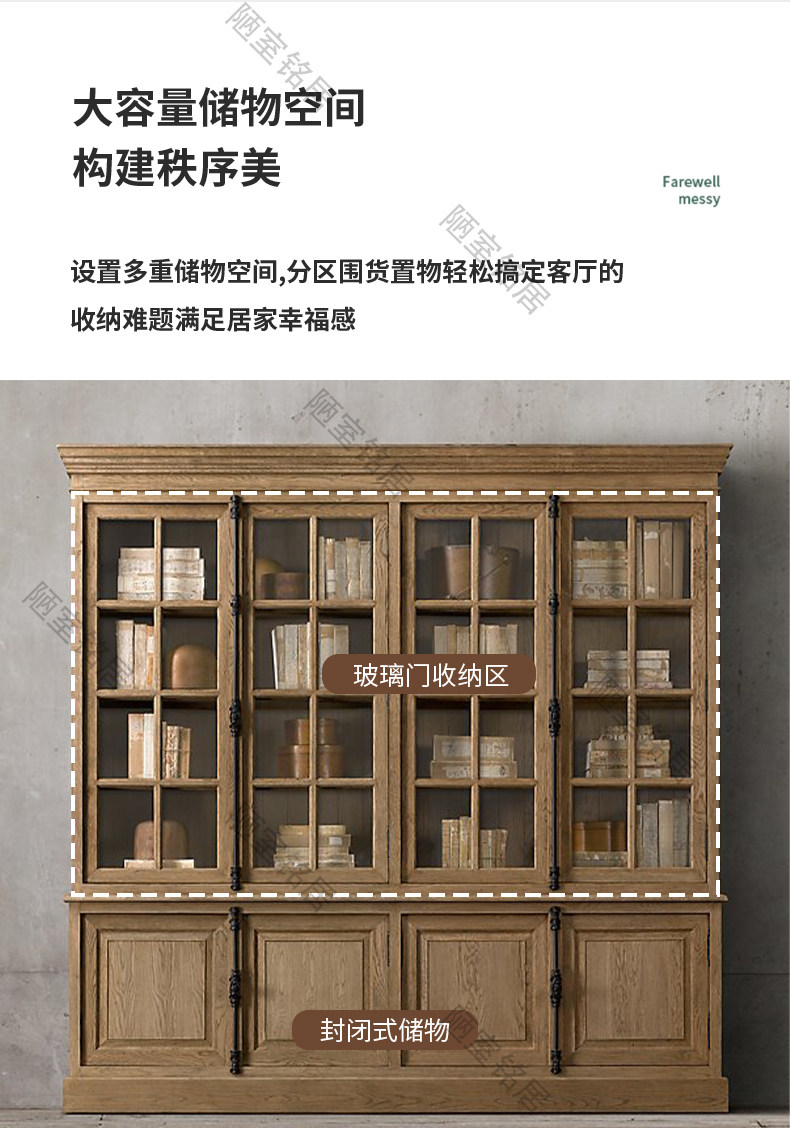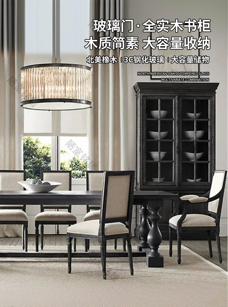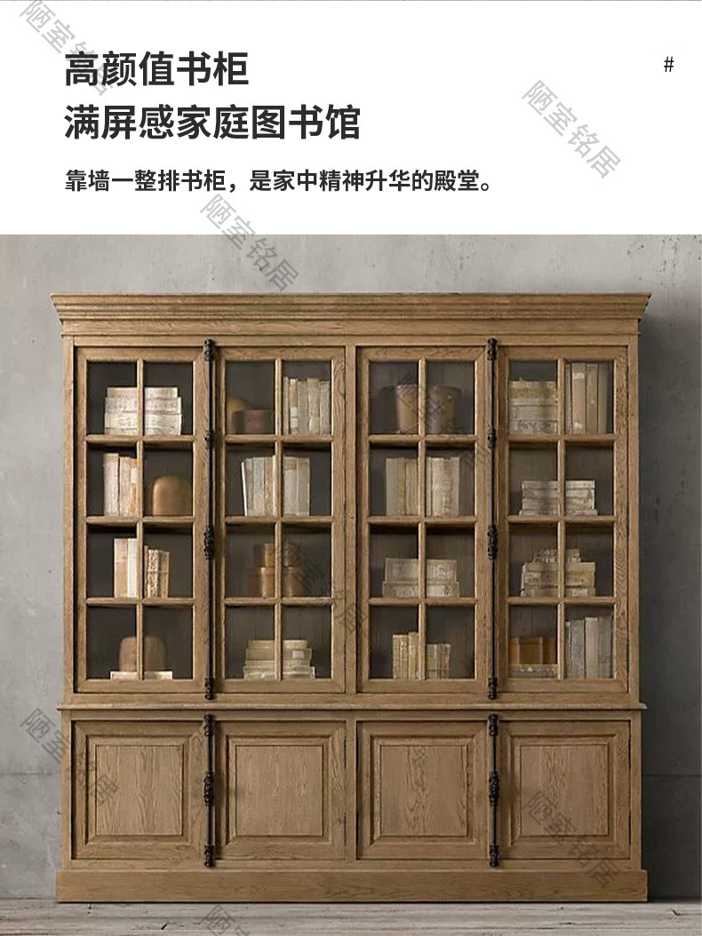 American country retro old glass door storage cabinet French oak world lock full wall bookcase bookcase display cabinet